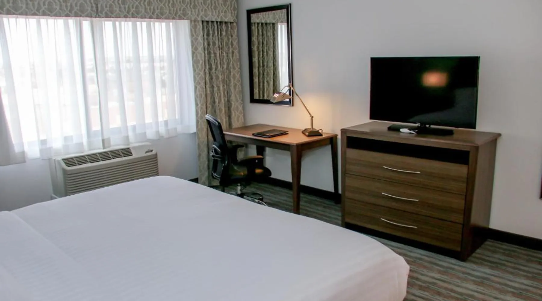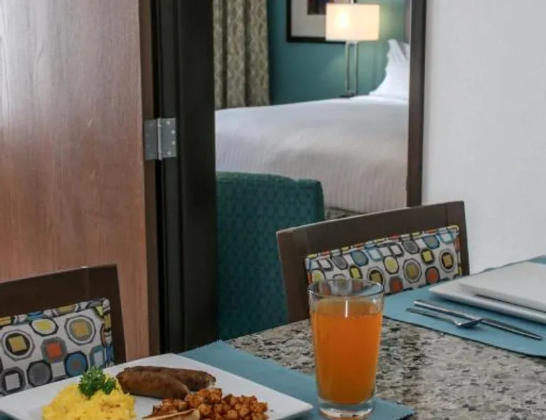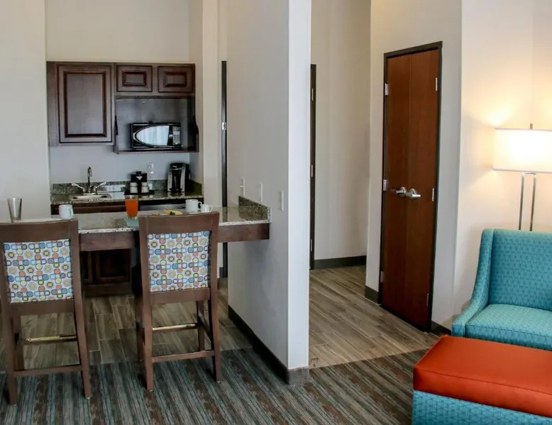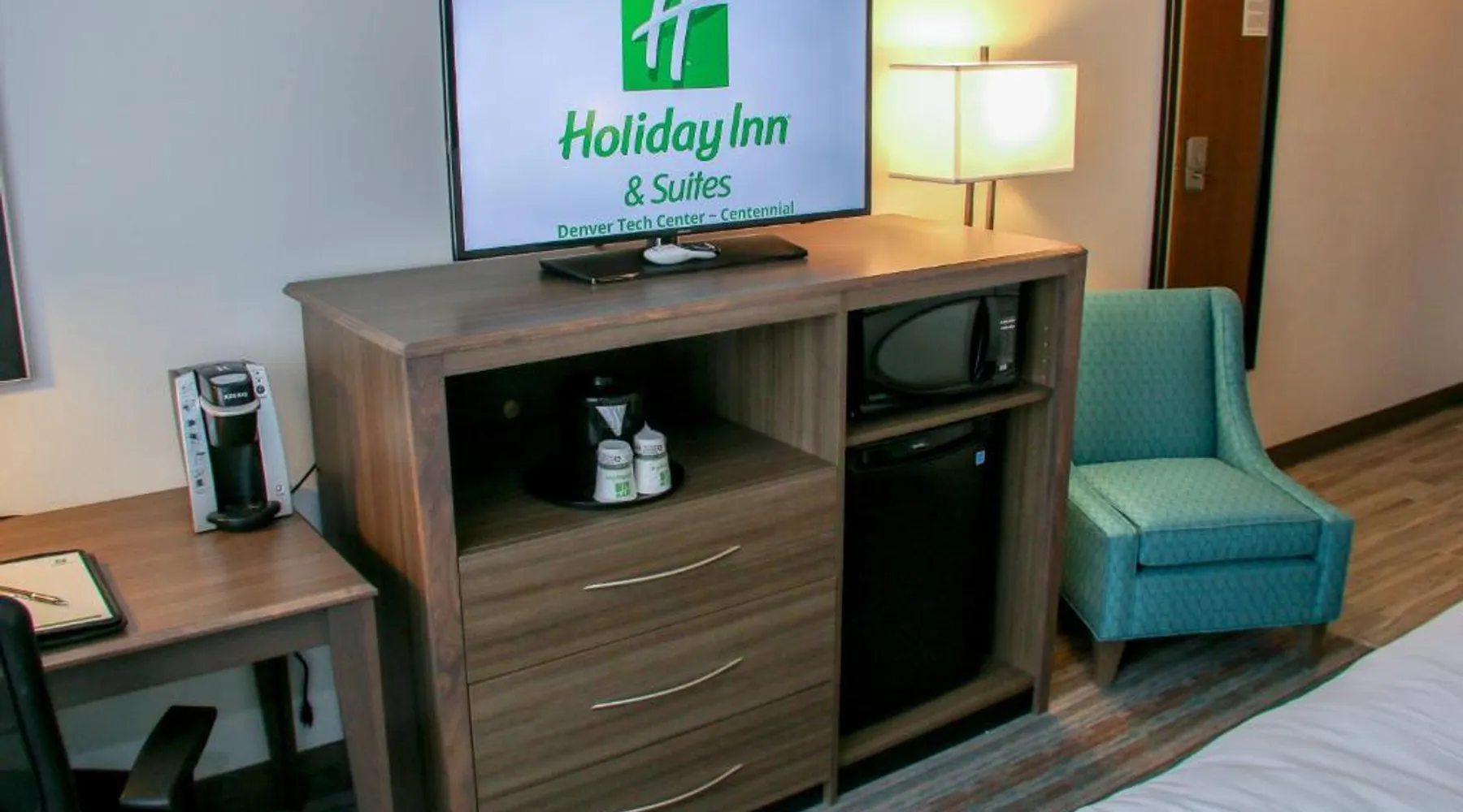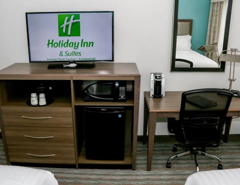 Comfortable Accommodations: Holiday Inn & Suites Denver Tech Center-Centennial by IHG in Centennial offers rooms with air-conditioning, private bathrooms, and free WiFi. Each room includes a TV, work desk, and kitchenette. Exceptional Facilities: Guests can enjoy a fitness center, indoor swimming pool, and a restaurant serving breakfast and dinner. The hotel also features a bar, lounge, hot tub, and outdoor seating area. Convenient Location: Located 19 mi from Denver International Airport, the hotel is near attractions such as the Denver Museum of Nature and Science (13 mi) and Red Rocks Park and Amphitheater (25 mi). Free on-site parking is available. Guest Satisfaction: Highly rated for its attentive staff, room cleanliness, and convenient location. This suite features a tea and coffee maker and a TV. The unit has 1 bed.