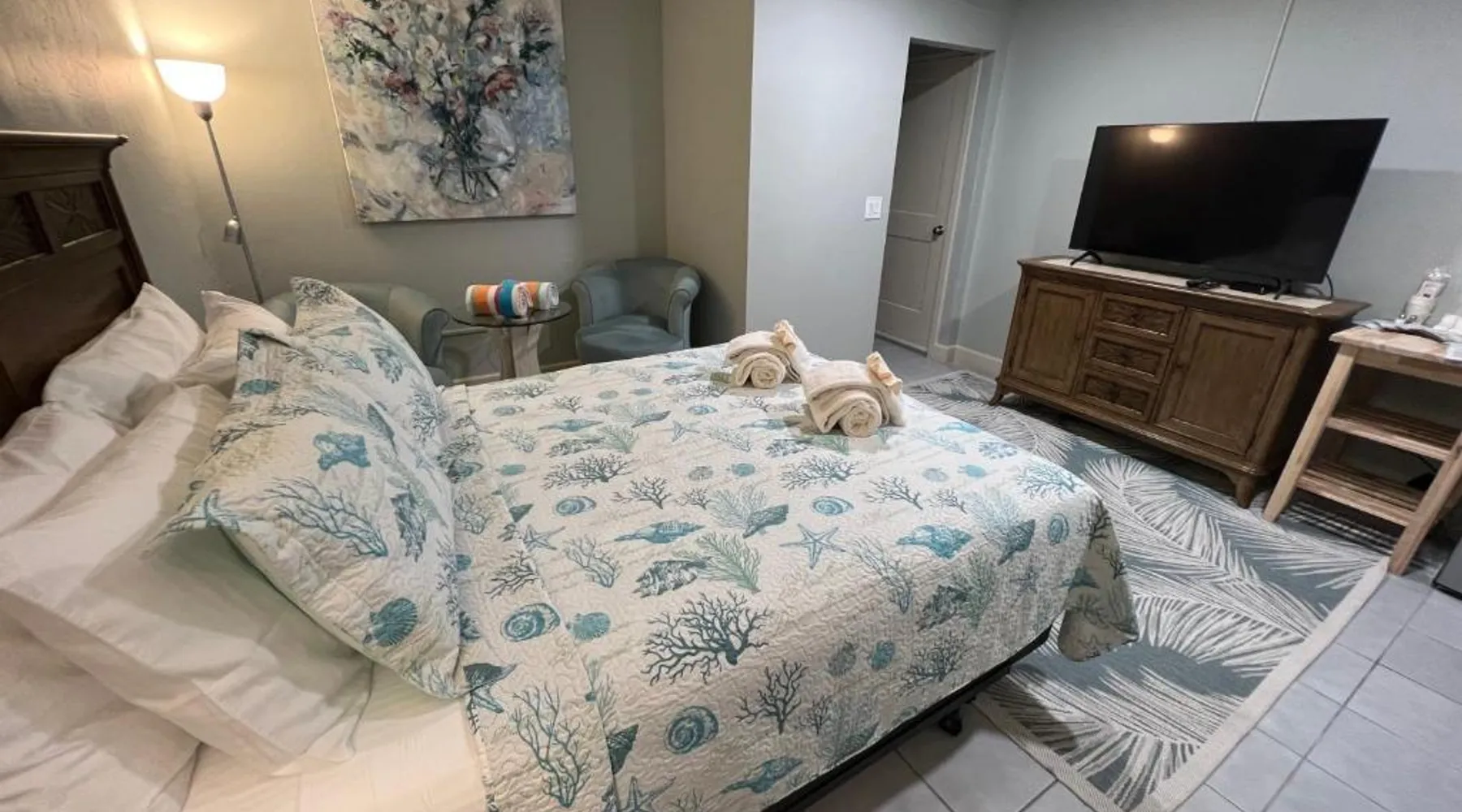 Tarpon Tale Inn is set in Sanibel, 0.6 mi from Sanibel Lighthouse and 0.9 mi from Sanibel Chamber of Commerce. Every room at this inn is air conditioned and offers ground-level access. A flat-screen TV is provided. Some rooms include a seating area to relax in after a busy day. You will find a coffee machine in the room. Rooms are fitted with a private bathroom fitted with a walk-in shower. For your comfort, you will find free toiletries and a hairdryer. There is a shared lounge at the property. Free use of bicycles is available at this inn and the area is popular for cycling. The nearest airport is Southwest Florida International Airport, 17 mi from the property. Offering free toiletries, this double room includes a private bathroom with a walk-in shower and a hairdryer. In the fully equipped kitchen, guests will find a stovetop, a refrigerator, kitchenware and a microwave. The spacious air-conditioned double room offers a flat-screen TV with streaming services, a private entrance, a coffee machine, a seating area as well as garden views. The unit has 1 bed.