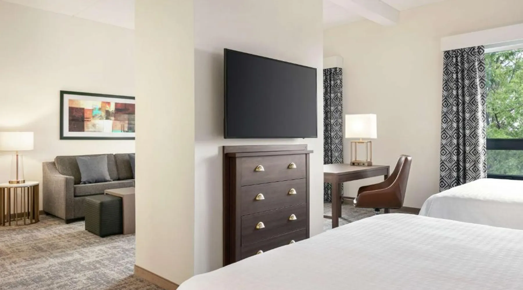 Comfortable Accommodations: Rooms feature air-conditioning, kitchen facilities, and free WiFi. Guests enjoy amenities such as a fitness center, indoor swimming pool, and a bar. Convenient Facilities: The hotel offers a lounge, outdoor fireplace, fitness room, and a 24-hour front desk. Additional services include a minimarket, daily housekeeping, grocery delivery, and electric vehicle charging. Prime Location: Located in Horsham, the hotel is 25 mi from Philadelphia International Airport. Nearby attractions include Temple University (14 mi) and the Philadelphia Museum of Art (17 mi). Guest Satisfaction: Highly rated for room cleanliness, attentive staff, and excellent swimming pool. The unit offers 2 beds.