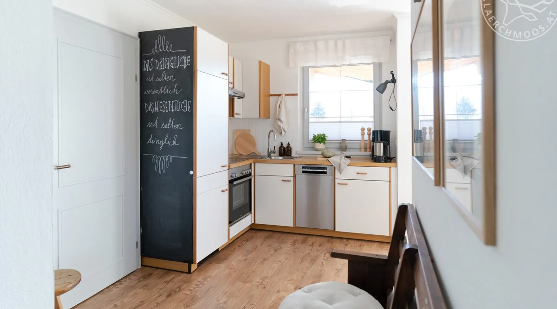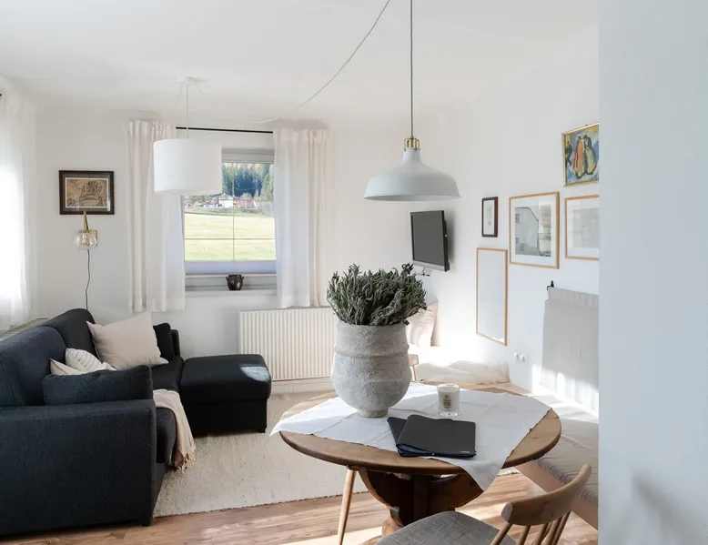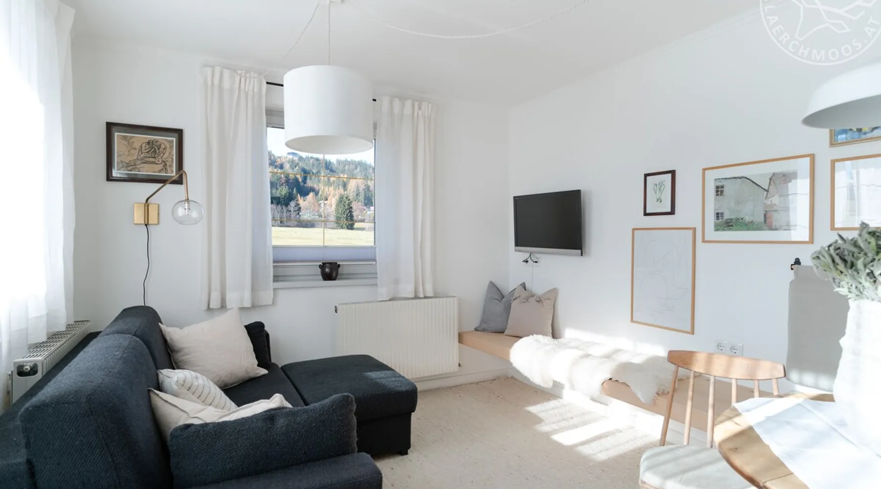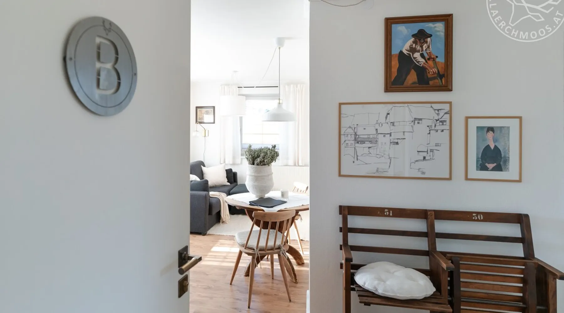 APARTMENT B Tradition and modernity blend on 45m2 for a relaxing couples' getaway. A fully equipped kitchen, a cozy living area, a bedroom with Swiss pine furniture, and a spacious bathroom ensure comfort. Enjoy your mornings on the balcony, breathe in the fresh mountain air, and experience nature up close. The space Facilities and Amenities: 45 m² (2 up to max. 3 people) Double room Living room with dining area and sofa (convertible into alternative sleeping opportunity) Kitchen fully equipped (fridge/freezer, dishwasher, stove with baking oven, dishes and basic kitchen amenities) Bathroom with shower and toilet South and west facing balcony Free WIFI HD flat screen TV Upon request: Baby bed, high chair and toys Amenities included: Bed linen Towels Dish towels, sponge Dish soap, dishwasher tabs Other things to note Out of respect for the subsequent guests pets are only allowed on request and with enhanced final cleaning charges. Smoking is only allowed on the balconies and not inside the apartments. Arrival from 14.00 pm; Depature until 10.00 am Payment methods : cash or bank transfer All offers/ cancellations are dealt with according to the GENERAL TERMS AND CONDITIONS FOR THE AUSTRIAN HOTEL INDUSTRY We kindly inform you that after a binding booking was made we are legitable to charge the rates agreed upon in the booking contract in cases of later arrivals or earlier departure or late cancellations (less than 1 month before arrival date). For your own, and our safety we do recommend travel insurance: Hotel Cancellation Insurance for vacations in Austria