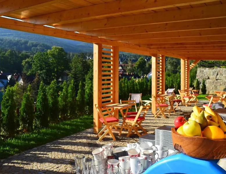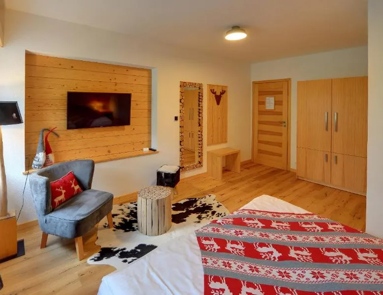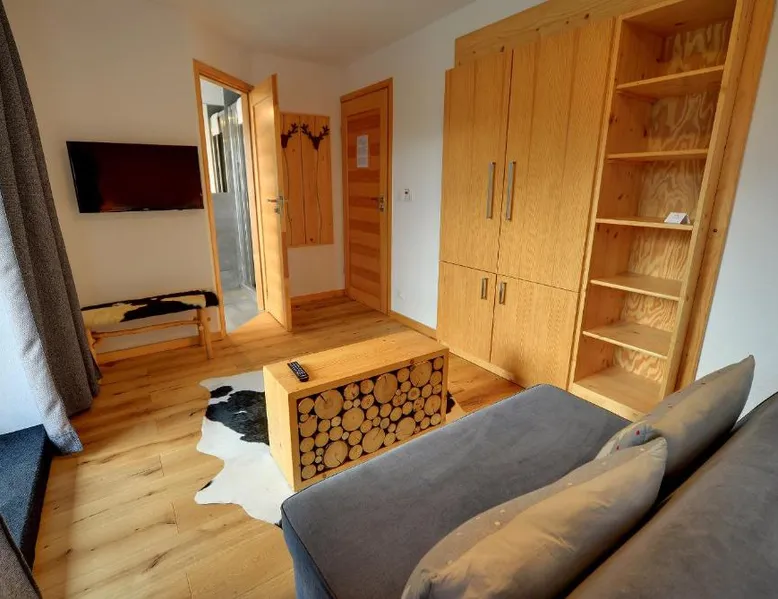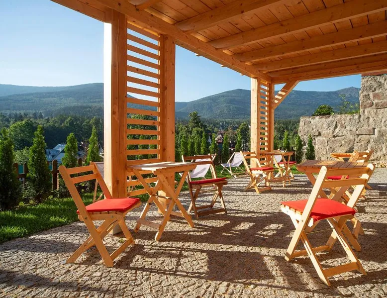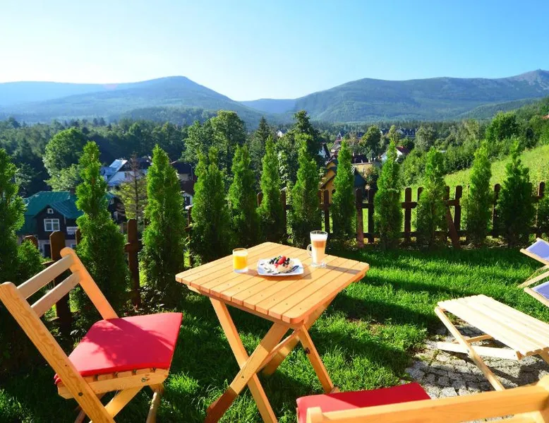 Comfortable Accommodations: Dom Górski in Karpacz offers family rooms with private bathrooms, walk-in showers, and parquet floors. Each room includes a TV, wardrobe, and work desk. Outdoor Spaces: Guests can relax on the sun terrace or in the garden, enjoying mountain views and an outdoor seating area. The property features an outdoor play area and free WiFi throughout. Breakfast and Amenities: A continental buffet breakfast is served daily, including vegetarian, vegan, and gluten-free options. Additional amenities include a lounge, ski storage, and free on-site private parking. Activities and Surroundings: The bed and breakfast is located 69 mi from Copernicus Wrocław Airport. Nearby attractions include Wang Church (2.5 mi) and Western City (2.5 mi). Activities available include skiing and winter sports. The double room offers a wardrobe, parquet floors, as well as a private bathroom featuring a walk-in shower and a hairdryer. This double room features heating and a flat-screen TV. The unit offers 1 bed.