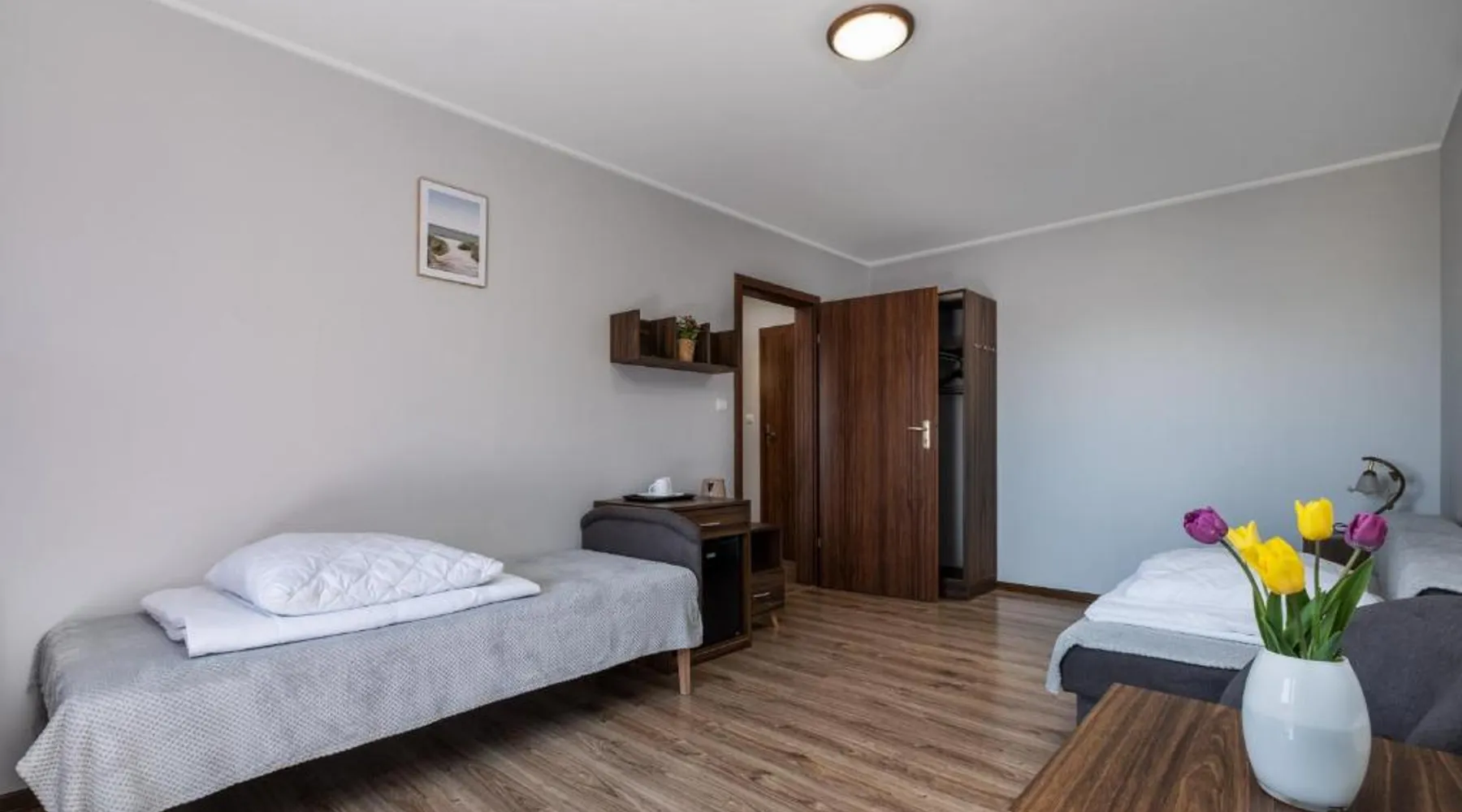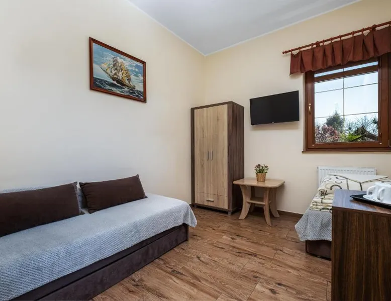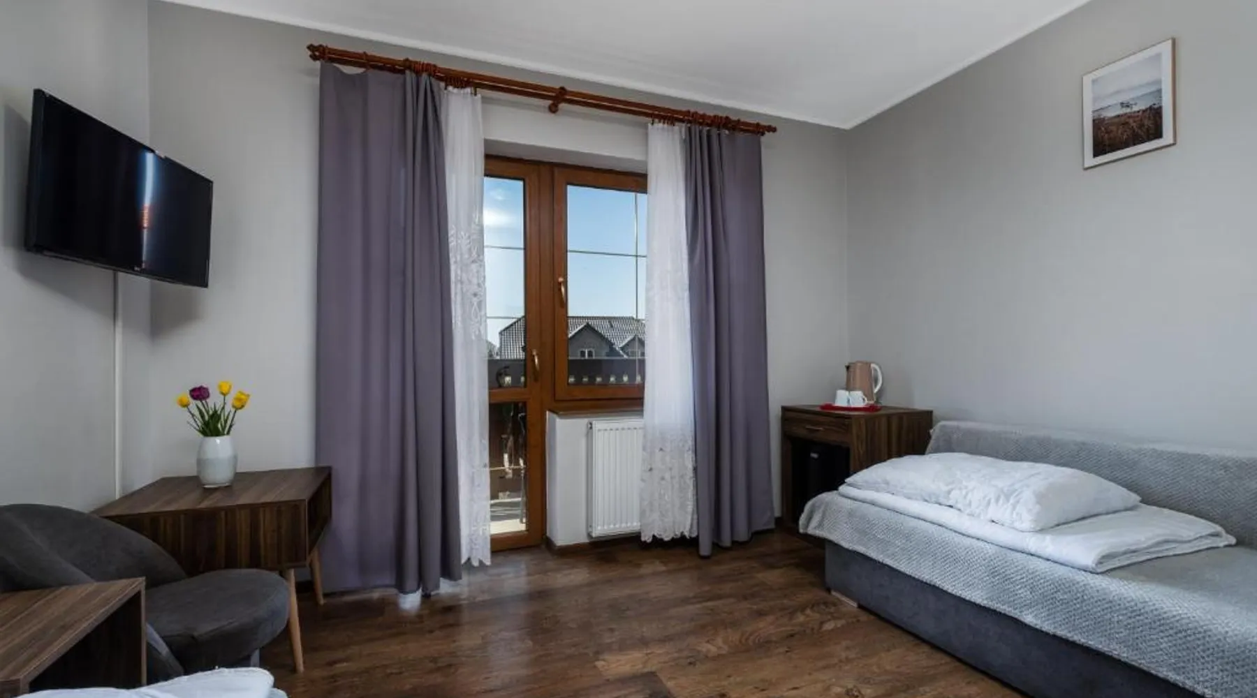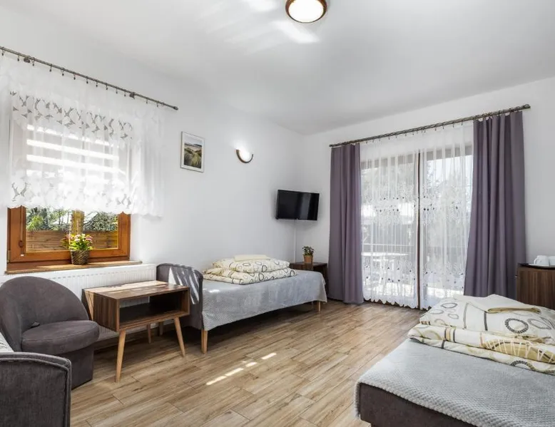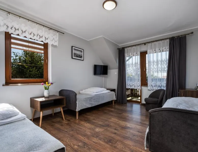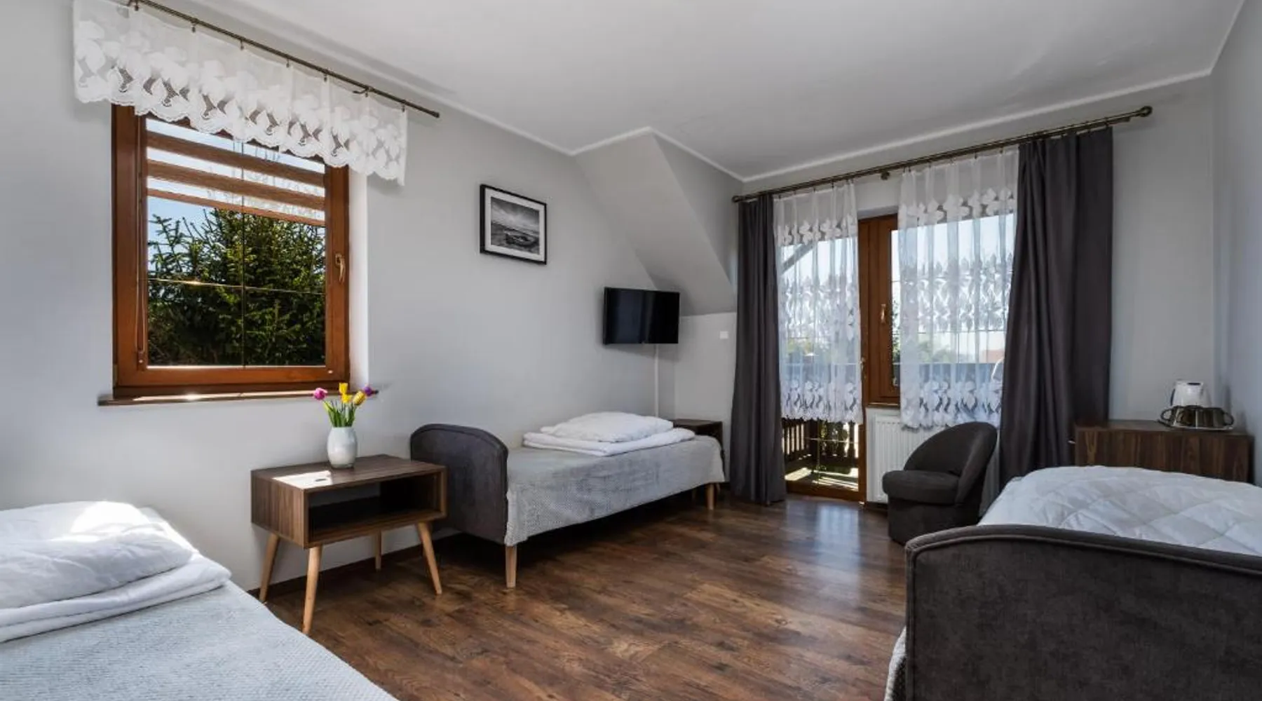 Comfortable Accommodations: Dom Wypoczynkowy California in Gdańska offers a bed and breakfast experience with private bathrooms, refrigerators, showers, TVs, and electric kettles. Guests can relax on the terrace or balcony, enjoying the garden and outdoor spaces. Convenient Facilities: The property provides free on-site private parking, ensuring easy access for all visitors. Reception staff speak English and Polish, assisting guests with their needs. Local Attractions: Jantar Beach is located 1.1 mi away, offering seaside activities. The National Maritime Museum, Polish Baltic Philharmonic, and other attractions are within 26 mi. Gdańsk Lech Wałęsa Airport is 34 mi from the property. This triple room features a private bathroom, an electric kettle, heating as well as a balcony. The unit offers 2 beds.