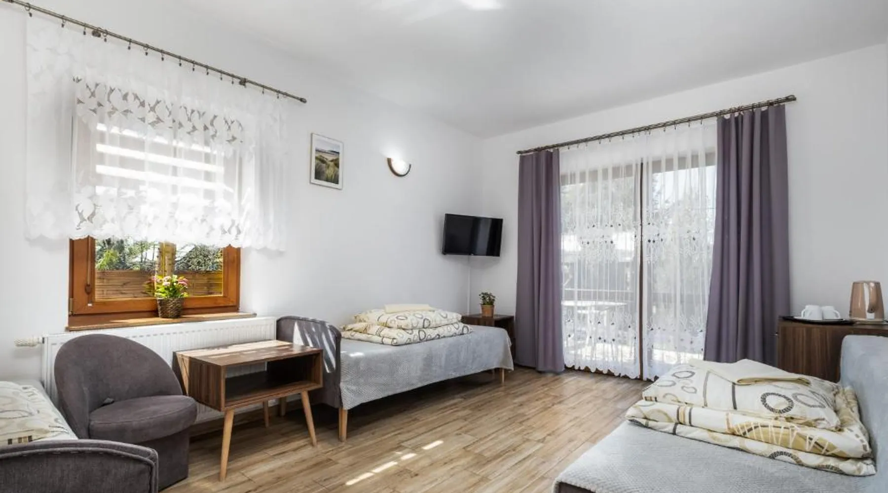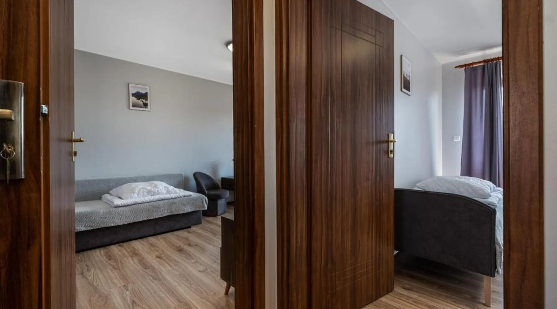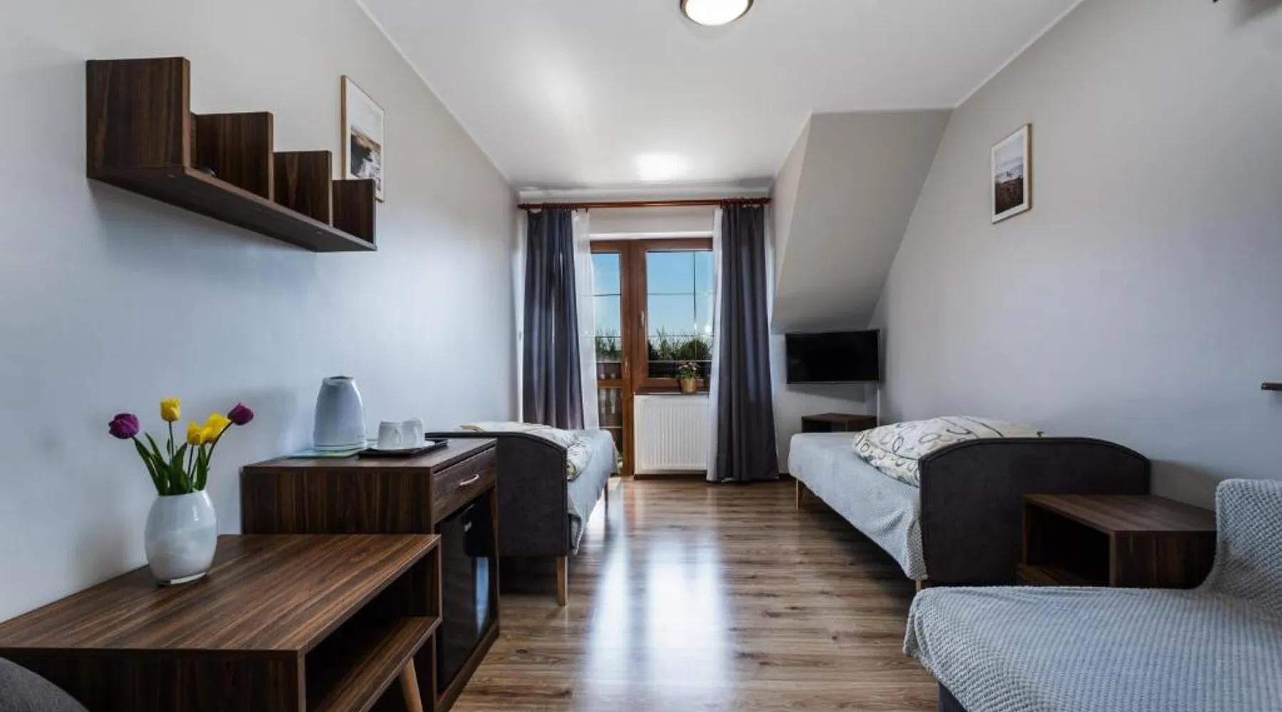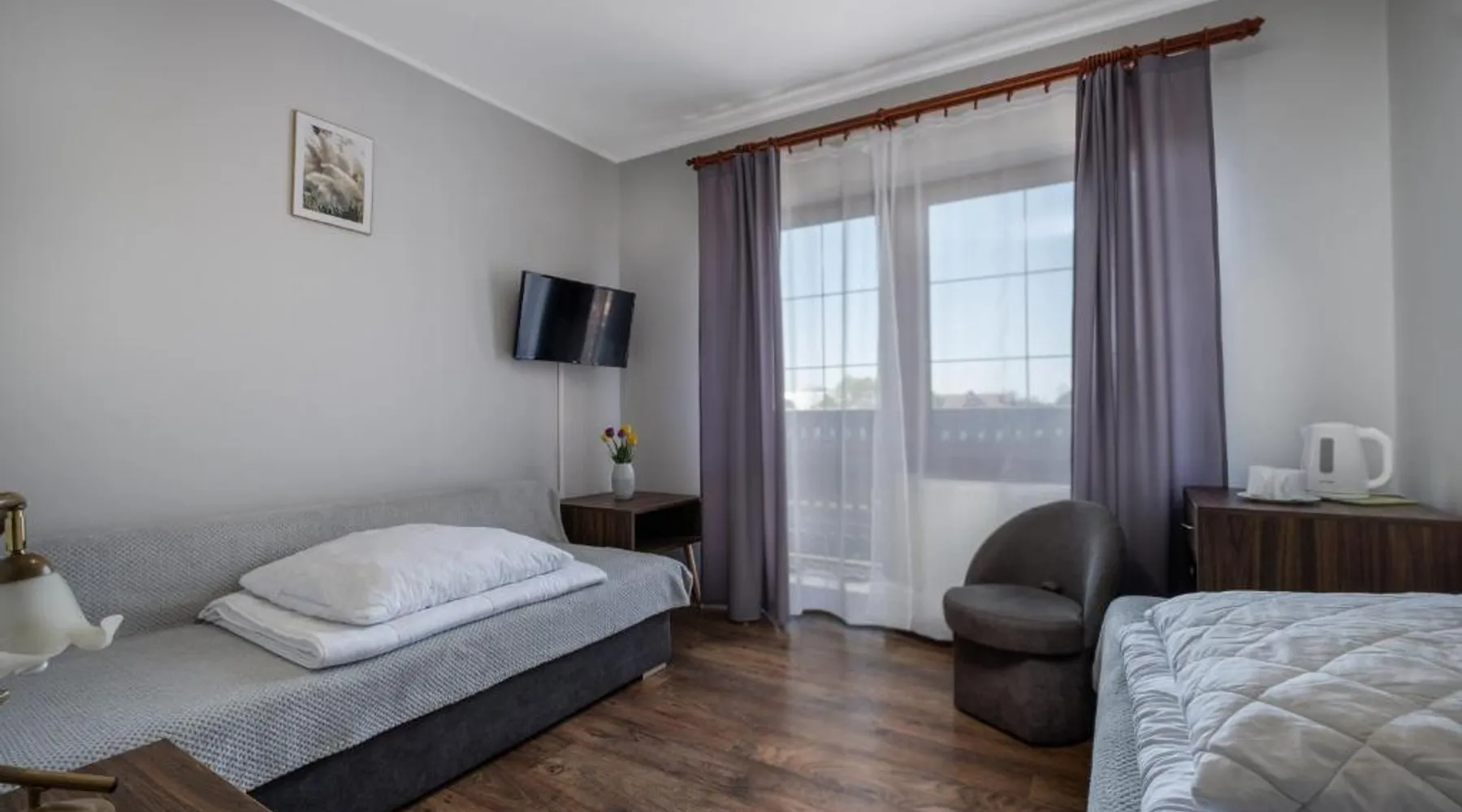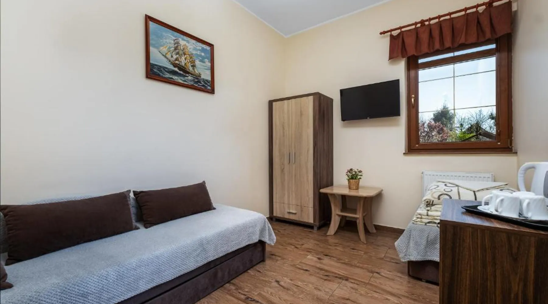 Comfortable Accommodations: Dom Wypoczynkowy California in Gdańska offers a bed and breakfast experience with private bathrooms, refrigerators, showers, TVs, and electric kettles. Guests can relax on the terrace or balcony, enjoying the garden and outdoor spaces. Convenient Facilities: The property provides free on-site private parking, ensuring easy access for all visitors. Reception staff speak English and Polish, assisting guests with their needs. Local Attractions: Jantar Beach is located 1.1 mi away, offering seaside activities. The National Maritime Museum, Polish Baltic Philharmonic, and other attractions are within 26 mi. Gdańsk Lech Wałęsa Airport is 34 mi from the property. This triple room features a private bathroom, an electric kettle, heating as well as a balcony. The unit offers 2 beds.
