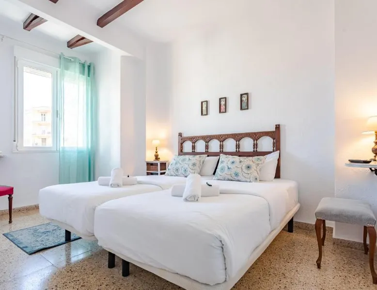 Beachfront Location: Hostal El Perelló in El Perelló offers direct beachfront access and a sun terrace. Guests enjoy free WiFi throughout the property. Comfortable Accommodations: Rooms feature air-conditioning, private bathrooms, and modern amenities. Family rooms and ground-floor units provide additional comfort. Leisure Facilities: The guest house includes a fitness room, outdoor play area, and yoga classes. Free on-site parking and bike hire enhance the stay. Nearby Attractions: Recati Beach is a 5-minute walk away, while L'Oceanografic lies 14 mi from the property. Valencia Airport is 20 mi distant. This air-conditioned twin/double room is consisted of of a flat-screen TV with streaming services, a private bathroom as well as a terrace with city views. The unit has 3 beds.
