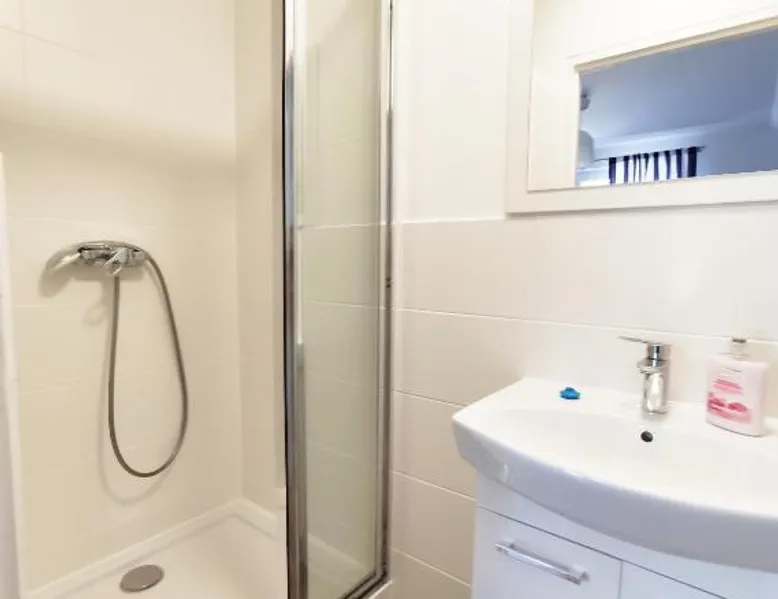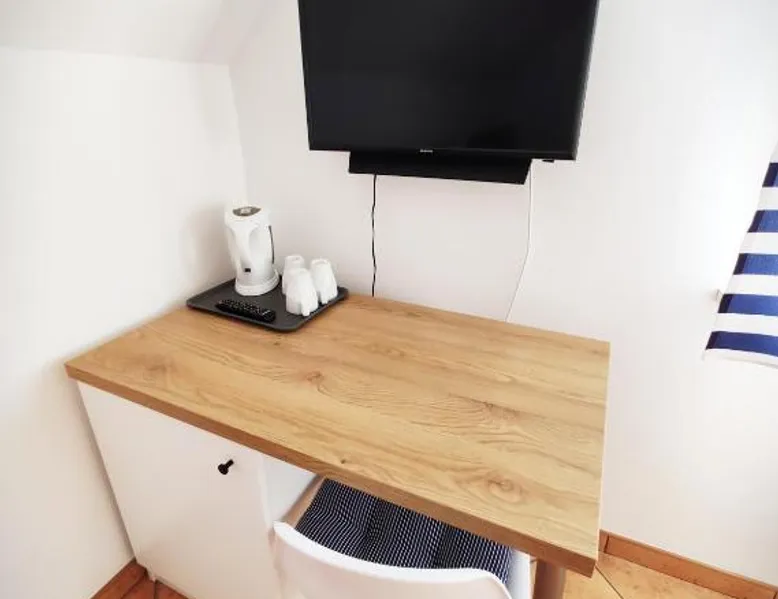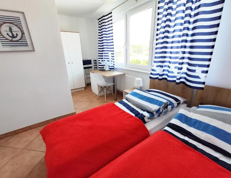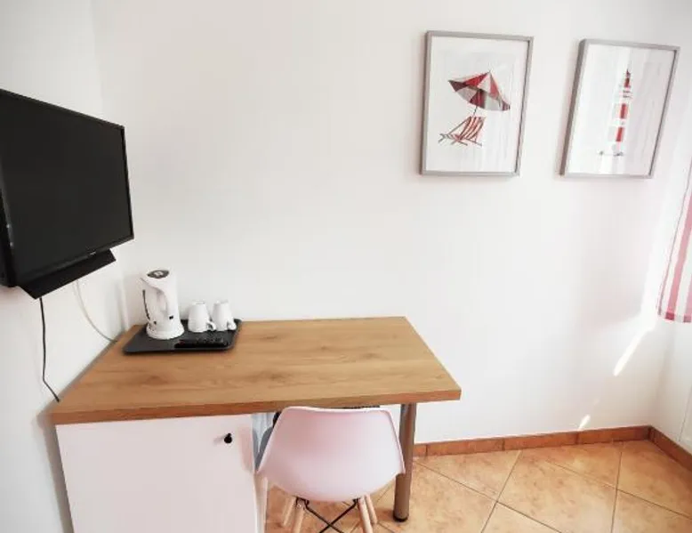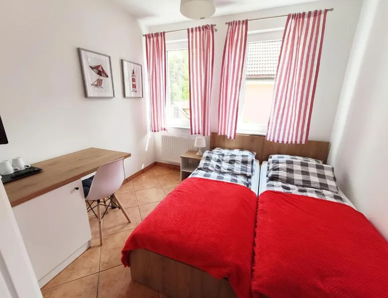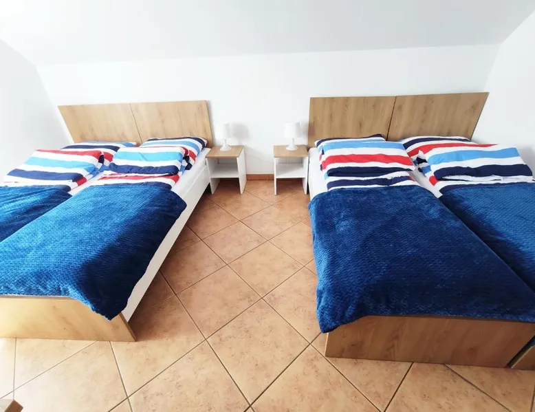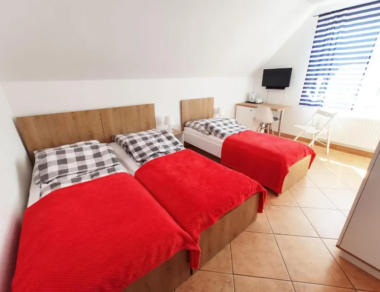 Comfortable Accommodations: Willa Nord in Pustkowo offers family rooms with private bathrooms, balconies, and tiled floors. Each room includes a work desk, TV, and wardrobe, ensuring a pleasant stay. Essential Facilities: Guests enjoy a garden, free WiFi, shared kitchen, outdoor play area, and outdoor seating. Additional amenities include a barbecue, tea and coffee maker, refrigerator, and outdoor dining area. Convenient Location: Rewal Beach is a 7-minute walk away, while Miedzyzdroje Walk of Fame lies 26 mi from the property. Other attractions include Amber Baltic Golf Club (19 mi) and Gosan viewpoint (24 mi). Guest Highlights: Guests appreciate the well-equipped kitchen, beach access, and room cleanliness, making Willa Nord a highly rated choice. This quadruple room is consisted of of a flat-screen TV with satellite channels and a private bathroom. The unit has 4 beds.