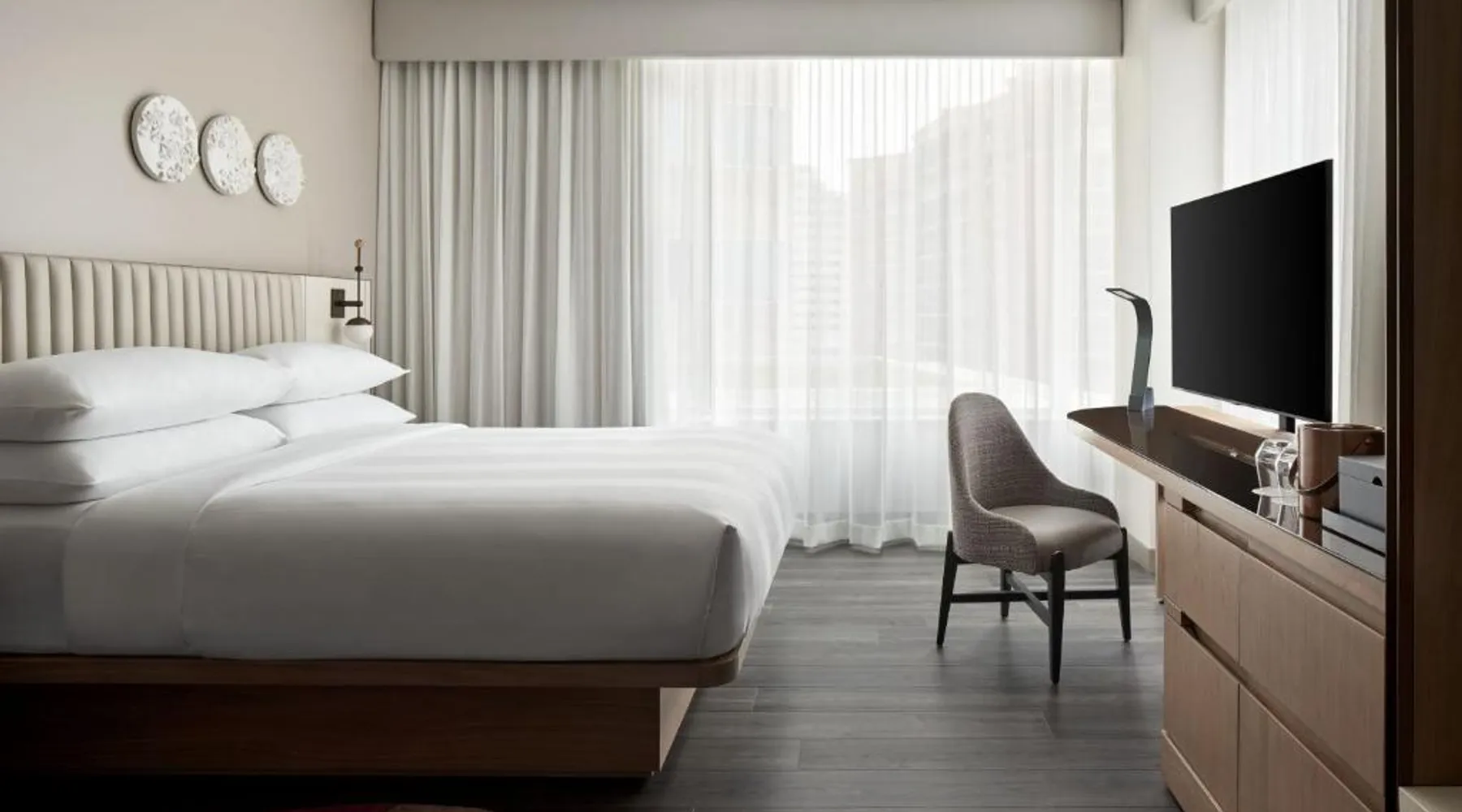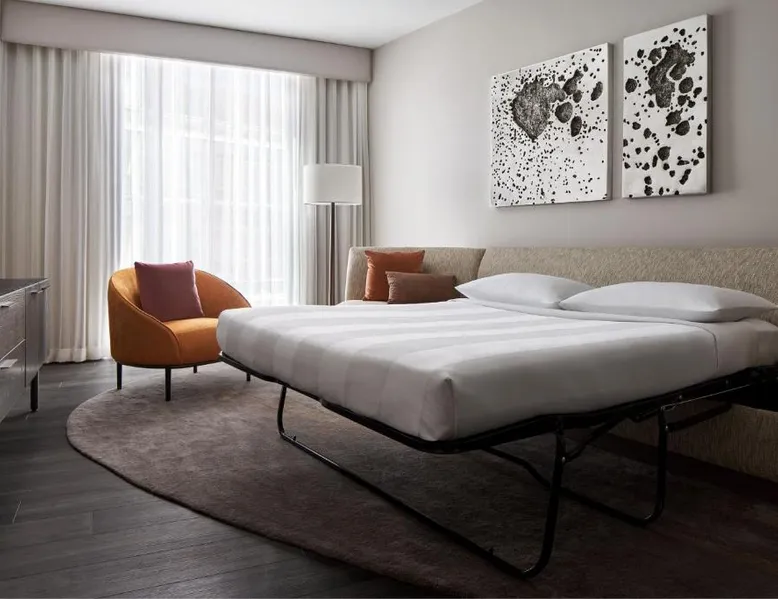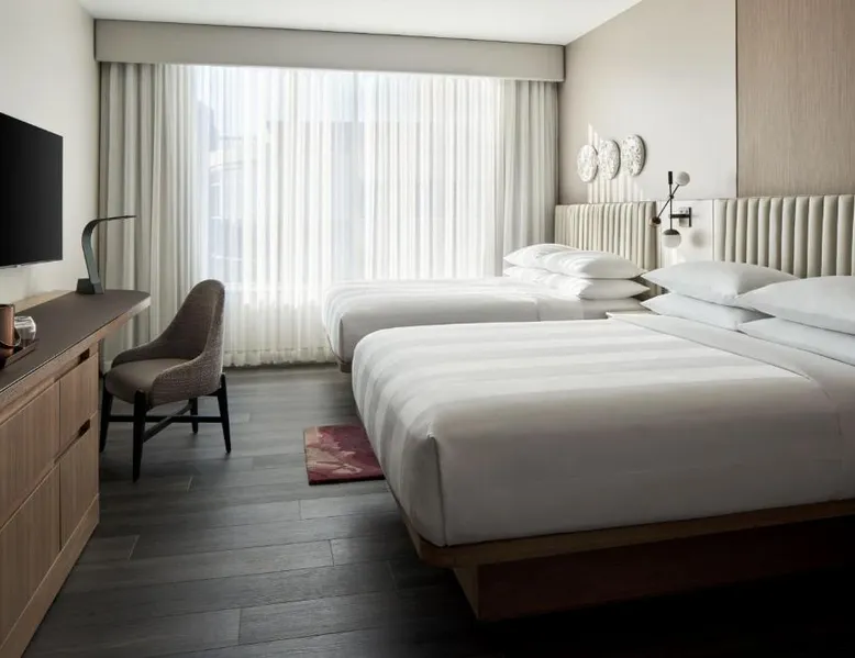 Comfortable Accommodations: Rooms feature air-conditioning, private bathrooms, city views, and modern amenities including work desks and sofas. Guests appreciate the room cleanliness and comfort. Dining and Leisure: The modern, family-friendly restaurant serves American cuisine with brunch, lunch, dinner, and cocktails. A fitness center, terrace, and bar provide leisure options. Convenient Location: > Located in Bethesda, the hotel is 12 mi from Ronald Reagan Washington National Airport. Nearby attractions include the Phillips Collection (6.2 mi) and White House (7.5 mi). Exceptional Service: Highly rated for its attentive staff and excellent service support, the hotel offers a 24-hour front desk, paid private parking, and full-day security. The spacious double room offers air conditioning, a sofa, as well as a private bathroom featuring a shower and a hairdryer. The unit offers 2 beds.