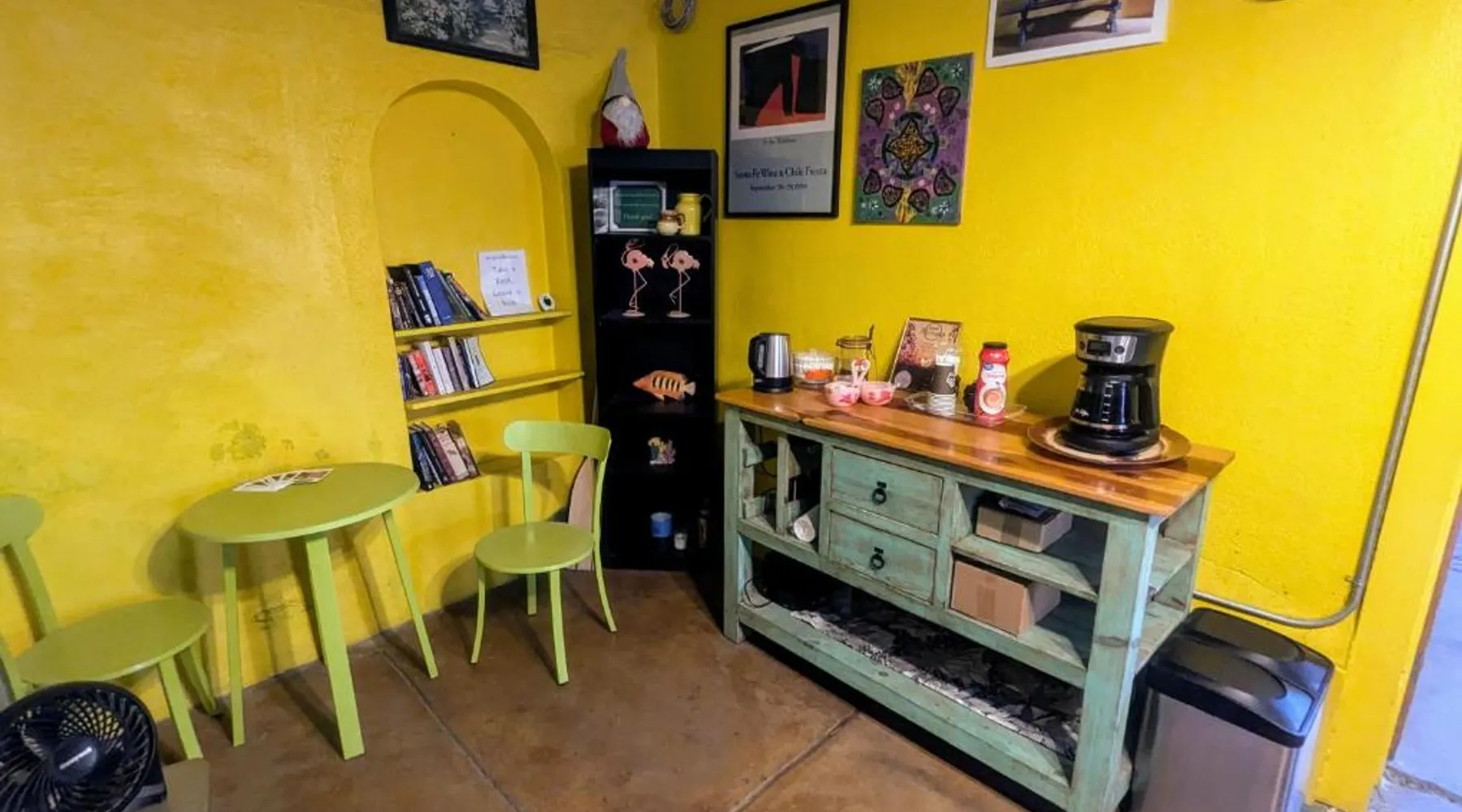Use of Hot Mineral Baths are offered to all hotel guests during our business hours at Pelican Spa. Guest rooms are brightly decorated and uniquely furnished. Free Wi-Fi is available in all guest rooms at Pelican Spa. A flat-screen satellite TV is available and a kitchenette is featured in most rooms. All rooms offer a private entrance. Our establishment has 4 separate courtyards. The main pelican spa courtyard houses the 4 indoor private hot mineral baths. Elephant Butte Resevoir is about a 15 Minute drive from our establishment. Caballo Lake State Park is 20 minutes’ drive from the property. Shops and restaurants in downtown Truth Or Consequences are just blocks away. Sierra Del Rio Golf Course is 4.5 miles drive from the spa. This apartment consists of 1 living room, 1 separate bedroom and 1 bathroom with a bath and free toiletries. The well-equipped kitchen features a refrigerator, kitchenware and a microwave. The apartment provides air conditioning, a tea and coffee maker, a seating area, a sofa and a flat-screen TV with cable channels. The unit offers 1 bed.