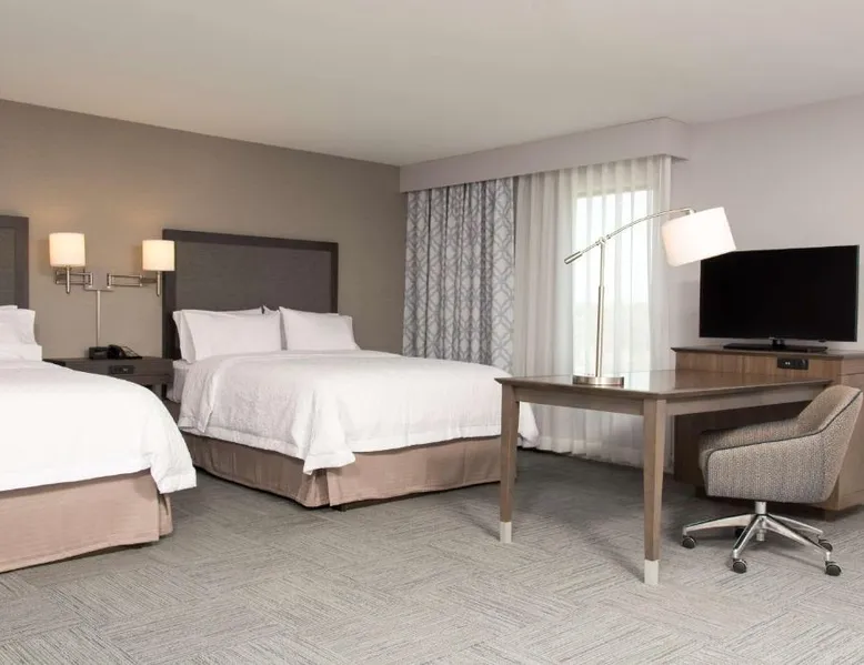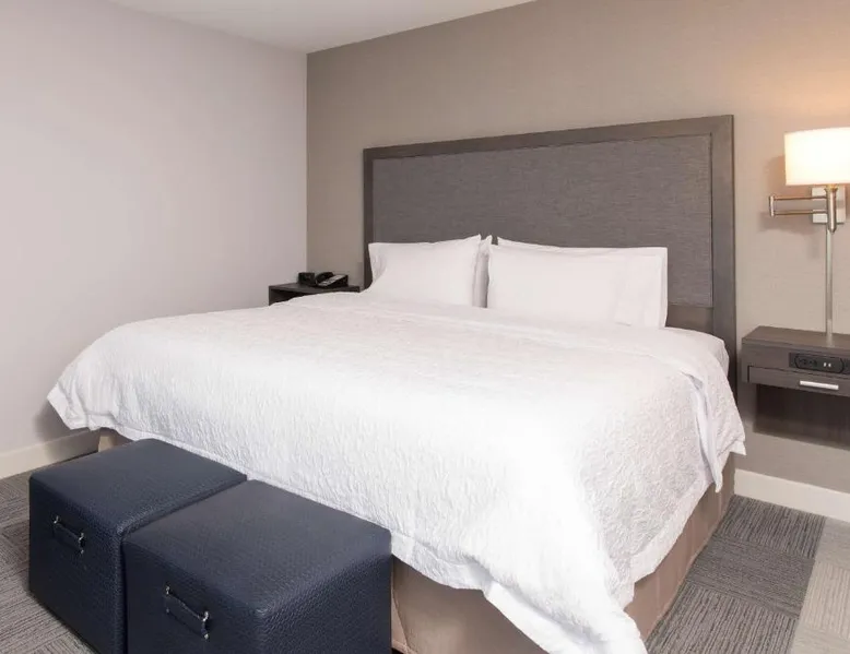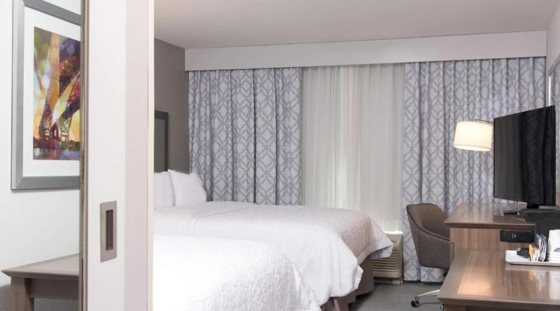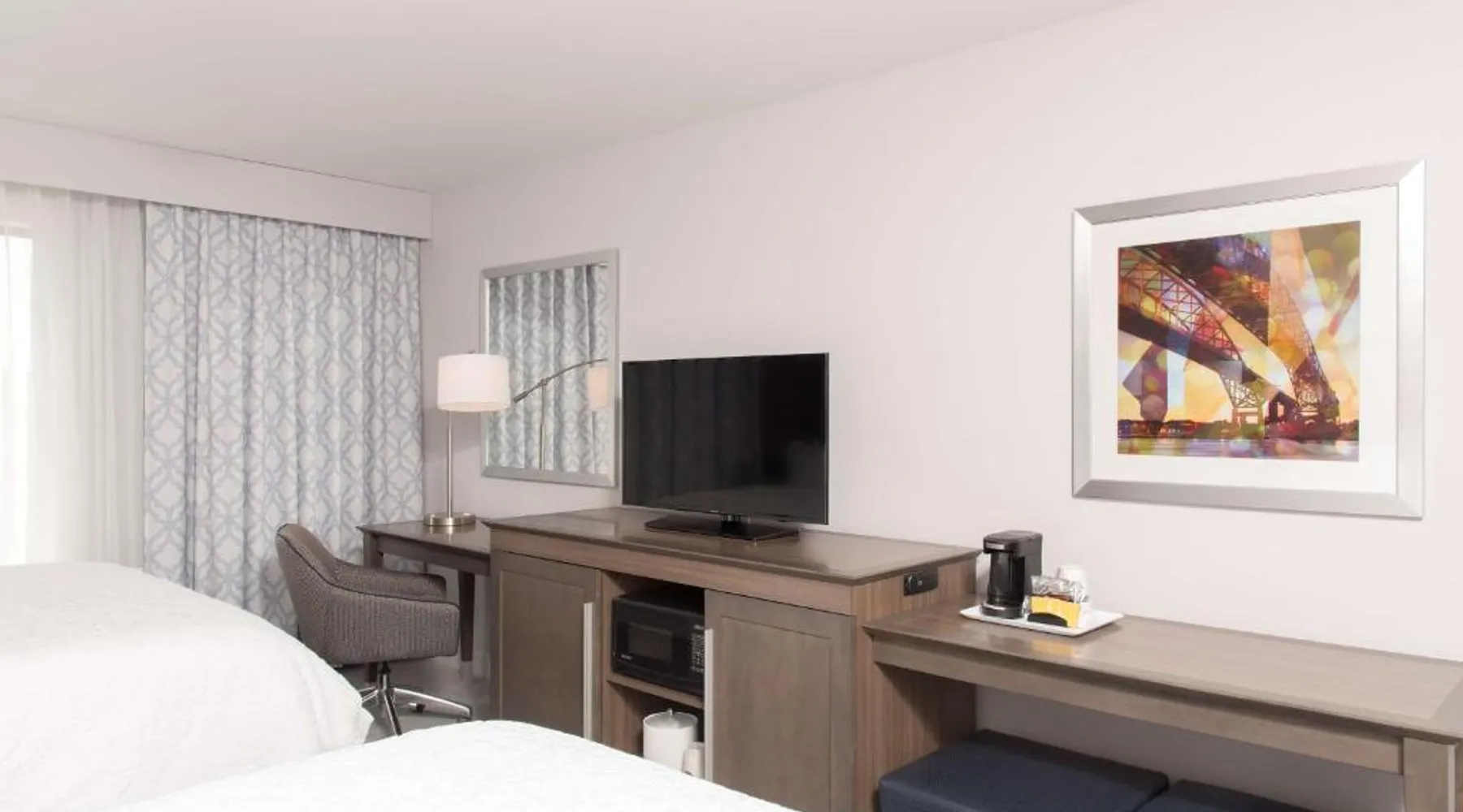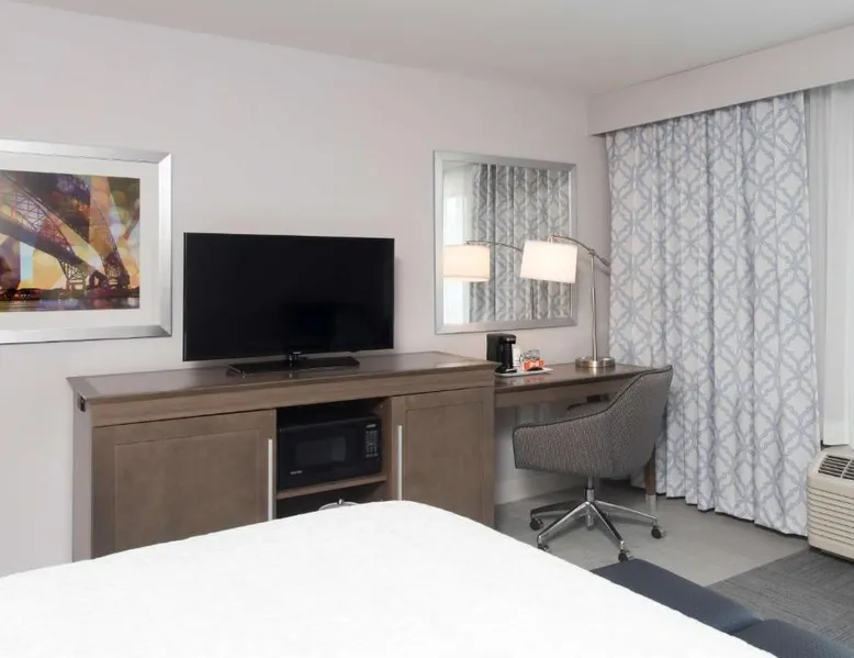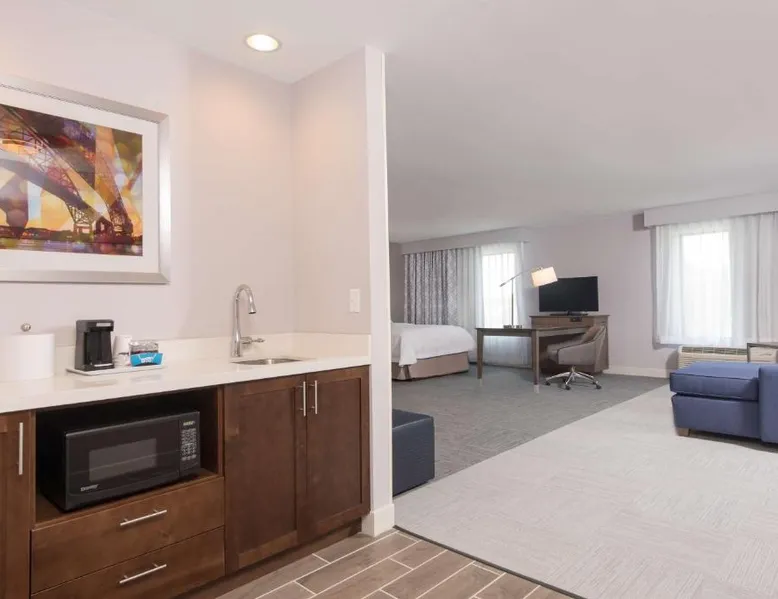 Comfortable Accommodations: Hampton Inn and Suites Michigan City in Michigan City offers comfortable rooms with free WiFi, air-conditioning, and modern amenities. Each room includes a tea and coffee maker, hairdryer, refrigerator, microwave, and TV. Leisure Facilities: Guests can enjoy a fitness center, indoor swimming pool, and outdoor seating area. Additional facilities include a business area, elevator, 24-hour front desk, and express check-in and check-out services. Convenient Location: Located 35 mi from South Bend Regional Airport, the hotel is near attractions such as Valparaiso University Brauer Museum Of Art (19 mi) and Deep River Waterpark (30 mi). Free on-site parking is available. Guest Services: Guests appreciate the breakfast provided by the property, attentive staff, and room cleanliness. Featuring a sofa bed, this room includes a 42-inch flat-screen HDTV with premium cable channels, along with a microwave and small refrigerator. A coffee maker is also included.