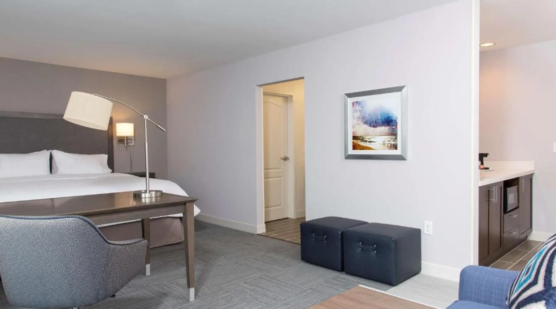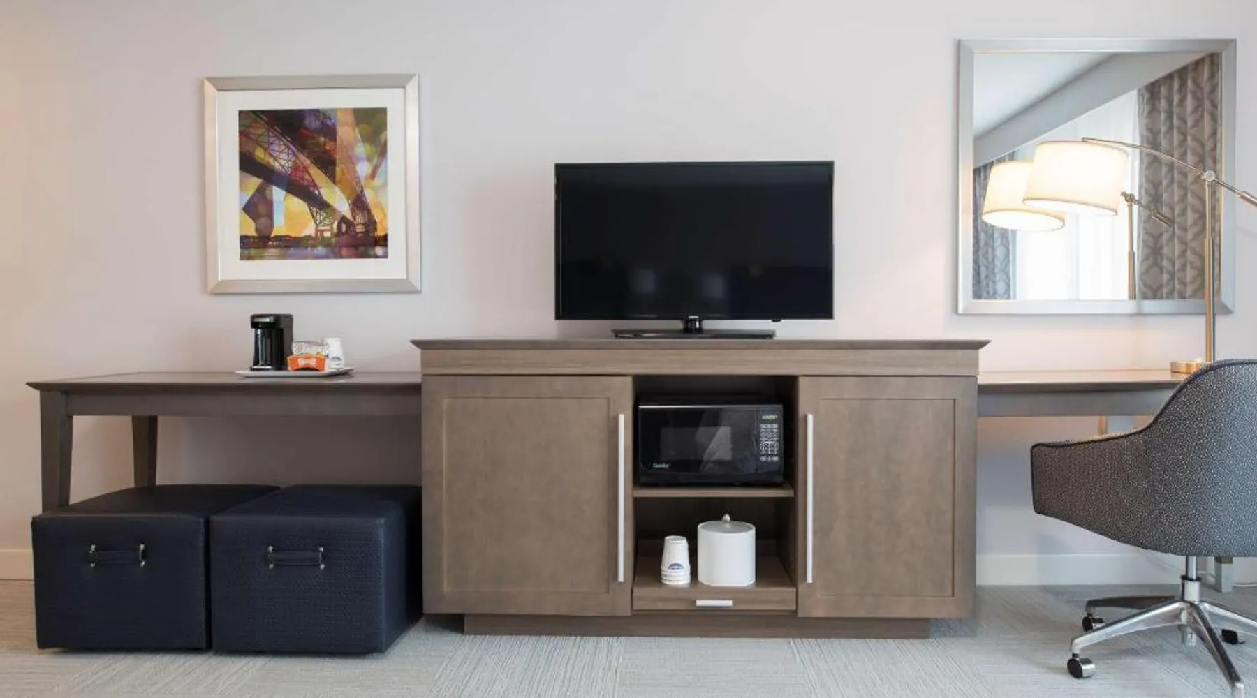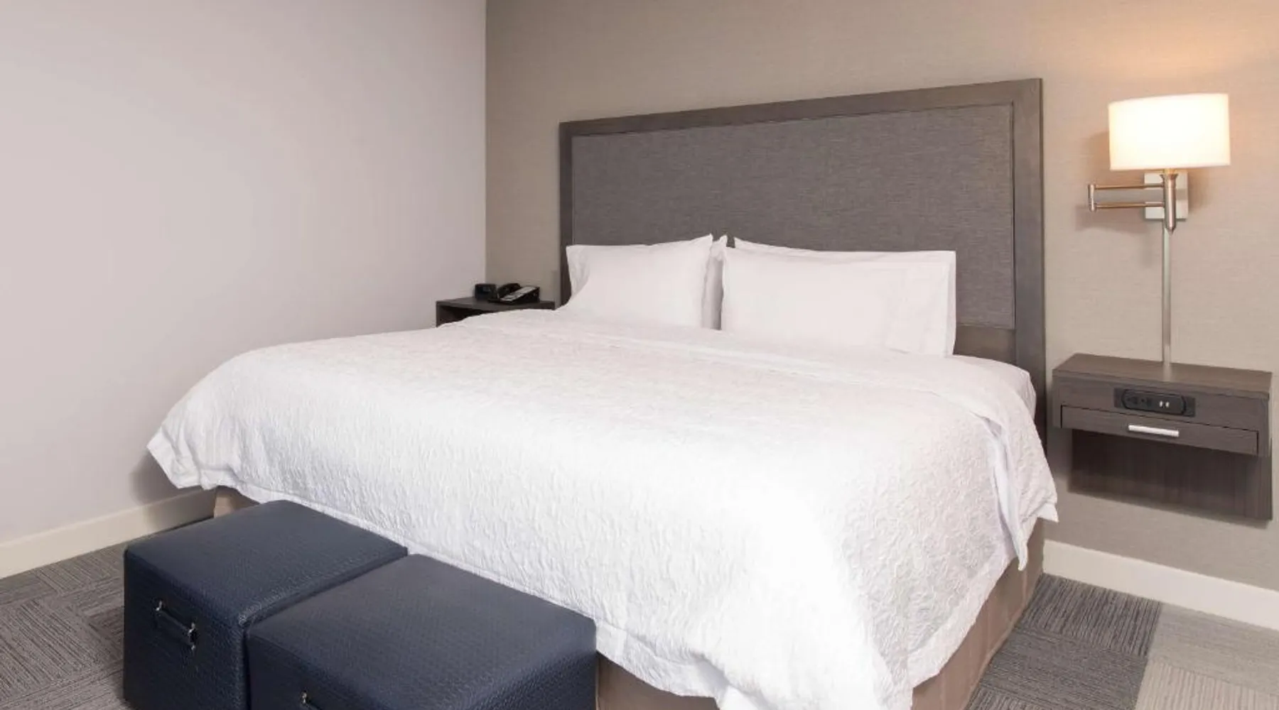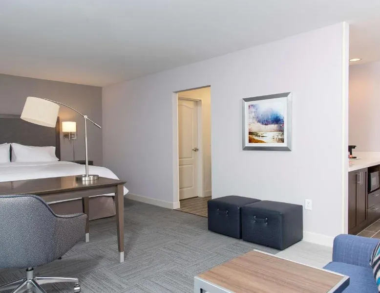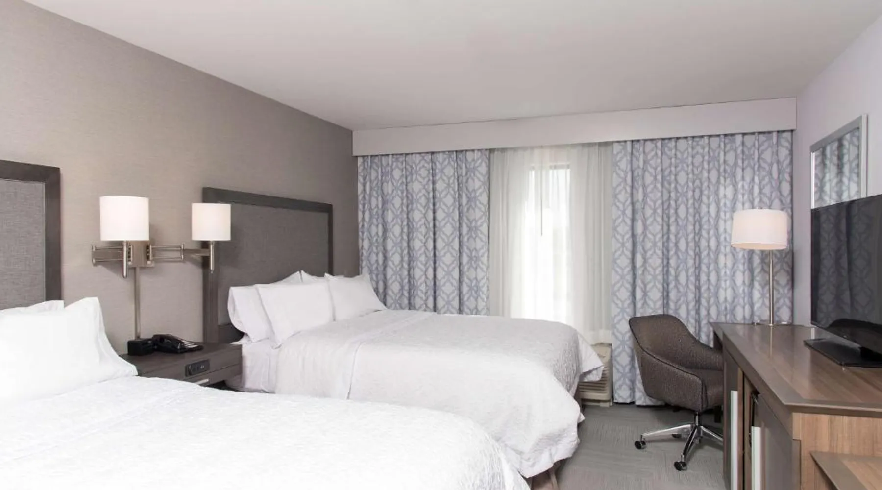 Comfortable Accommodations: Hampton Inn and Suites Michigan City in Michigan City offers comfortable rooms with free WiFi, air-conditioning, and modern amenities. Each room includes a tea and coffee maker, hairdryer, refrigerator, microwave, and TV. Leisure Facilities: Guests can enjoy a fitness center, indoor swimming pool, and outdoor seating area. Additional facilities include a business area, elevator, 24-hour front desk, and express check-in and check-out services. Convenient Location: Located 35 mi from South Bend Regional Airport, the hotel is near attractions such as Valparaiso University Brauer Museum Of Art (19 mi) and Deep River Waterpark (30 mi). Free on-site parking is available. Guest Services: Guests appreciate the breakfast provided by the property, attentive staff, and room cleanliness. Featuring a sofa bed, this room includes a 42-inch flat-screen HDTV with premium cable channels, along with a microwave and small refrigerator. A coffee maker is also included.