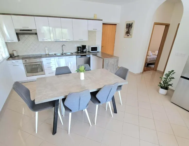 Comfortable Accommodations: Apartments Krešan Soline in Sukošan offers a 3-star apartment with a sun terrace, garden, and free WiFi. Guests enjoy air-conditioning, a terrace, balcony, and a fully equipped kitchenette. Convenient Facilities: The property features an outdoor fireplace, outdoor play area, family rooms, full-day security, bike hire, and barbecue facilities. Free on-site private parking is available. Prime Location: Located 3.7 mi from Zadar Airport, Soline Beach is a 3-minute walk away. Nearby attractions include Kornati Marina (11 mi) and Duke's Palace (8.1 mi). Boating and cycling activities are popular in the surroundings. Guest Highlights: Guests highly rate the host, beach access, and garden. This spacious apartment features 1 living room, 2 separate bedrooms and 1 bathroom with a walk-in shower and free toiletries. Guests will find a stovetop, a refrigerator, a dishwasher and kitchenware in the well-equipped kitchen. The apartment also comes with a barbecue. The air-conditioned apartment features a flat-screen TV with satellite channels, a washing machine, a private entrance, soundproof walls as well as sea views. The unit has 4 beds.
