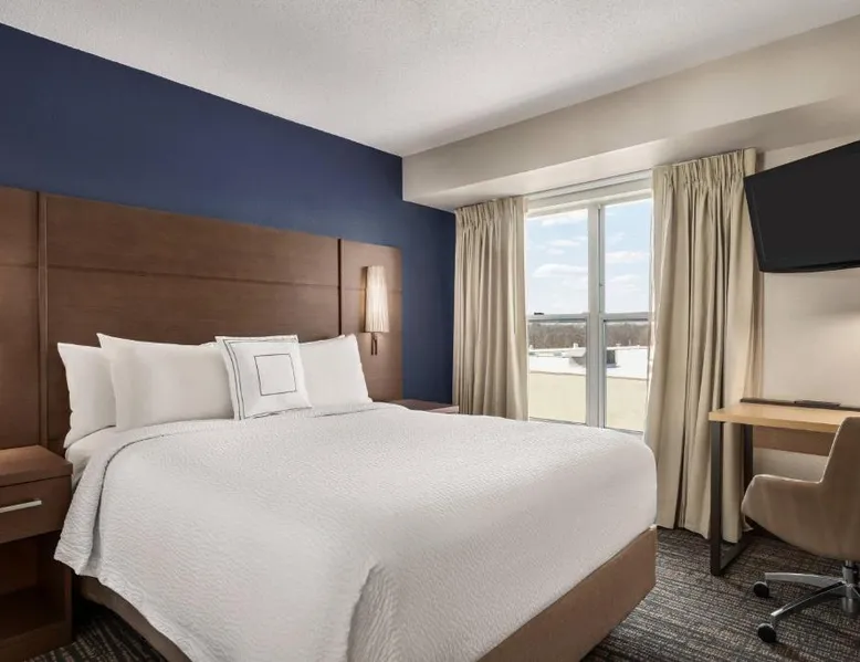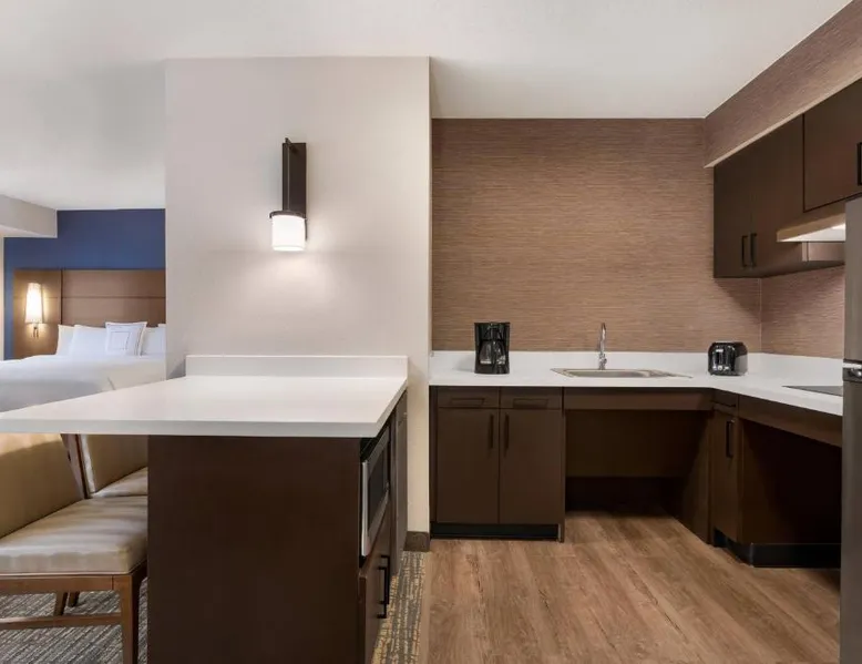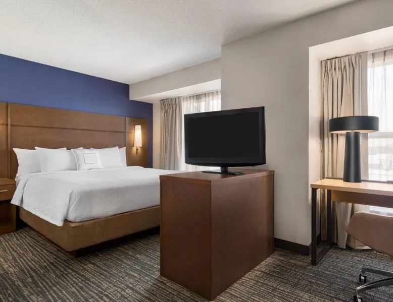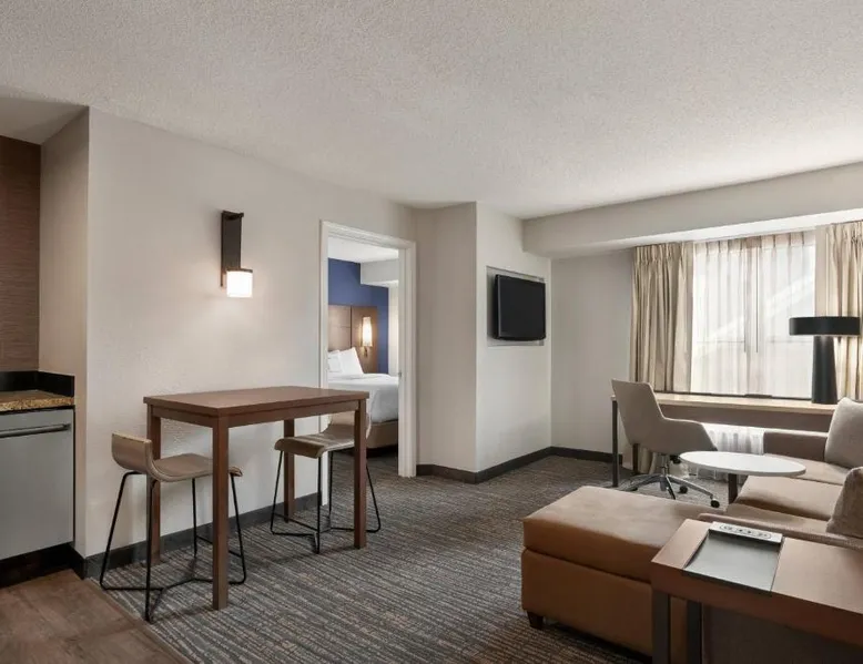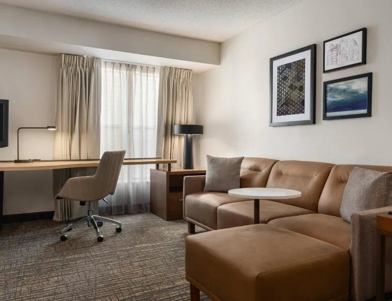 Comfortable Accommodations: Residence Inn Deptford in Deptford offers family rooms with private bathrooms, air-conditioning, and free WiFi. Each room includes a kitchen, work desk, and seating area. Facilities and Services: Guests can enjoy a fitness center, free bicycles, and a business area. Additional amenities include a elevator, 24-hour front desk, housekeeping, and full-day security. Dining and Breakfast: A complimentary American buffet breakfast is served daily. Streaming services and a fireplace enhance the stay. Location and Attractions: Located 13 mi from Philadelphia International Airport, the hotel is near Citizens Bank Park (8.7 mi) and the Philadelphia Museum of Art (12 mi). Guests appreciate the friendly staff and convenient location. This room has a seating area.