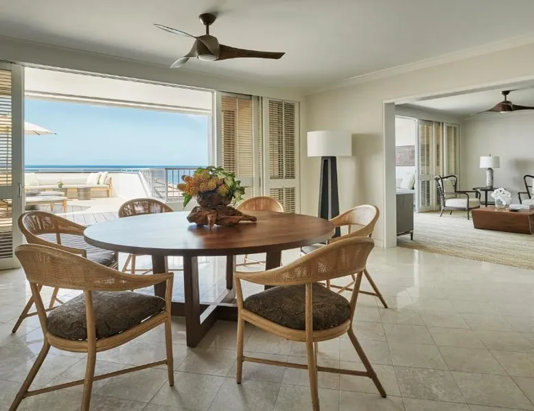 Located on Oahu’s sunny west coast, this Hawaiian luxury beach resort includes restaurants, bars, swimming pools and lagoons with water sports. Guests can enjoy a game of tennis or golf then relax in the on-site spa. Honolulu International Airport is less than 30 minutes’ drive away. Offering free WiFi, Four Seasons Resort Oahu at Ko Olina features guest rooms with a 65-inch flat-screen HDTV. All rooms include a Four Seasons Bed with your choice of plush, signature or firm mattress topper, twice daily housekeeping, a private balcony, a deep soaking tub and a walk-in glass shower. Guests can enjoy 24-hour in-room dining at Four Seasons Resort Oahu at Ko Olina. A fitness center is also available. Ko Olina Marina and Ko Olina Golf Club are just 5 minutes’ drive from Four Seasons Resort Oahu at Ko Olina. The Arizona and Battleship Missouri Memorial at Pearl Harbor are 27 minutes’ drive away from this resort. Featuring a balcony with oceanfront views and outdoor seating for two, this suite offers a coffee machine, a mini-bar, an in-room safety deposit box, a flat-screen TV with cable channels, an alarm clock radio, bedside outlets, and an en suite marble bathroom with bathrobes, a hairdryer, a scale, and toiletries.