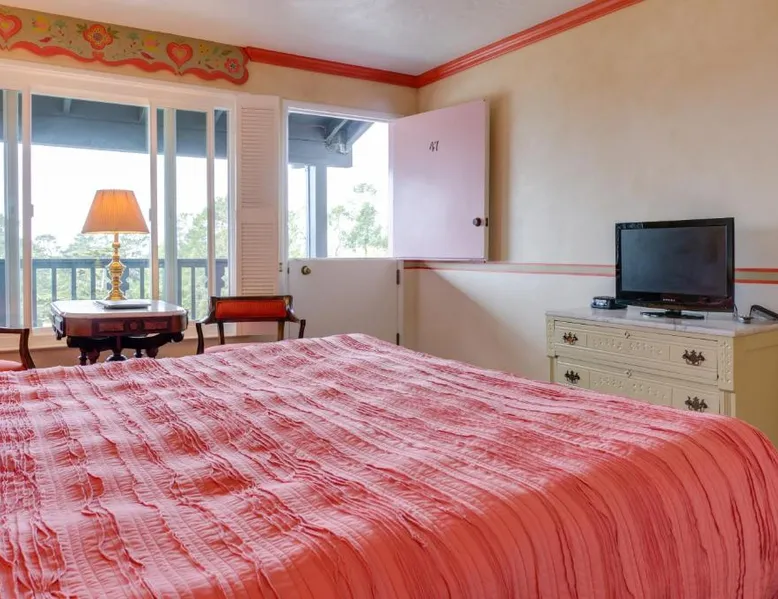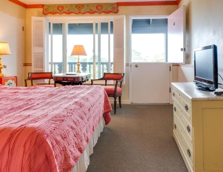Just 5-minutes’ walk from restaurants and shops in Carmel city center, Hofsas House Hotel features a heated outdoor pool and a continental breakfast with fresh pastries. Free WiFi is included in all rooms. A TV with cable channels offers in-room entertainmen. Free toiletries and a hairdryer are provided in each private bathroom. Select rooms feature a fireplace and a deck with an ocean view. Guests of Hofsas House Hotel Carmel can relax in the dry sauna after a day of exploring. Ocean views are available on the shared fourth floor patio. Free parking is available on site. A daily breakfast of seasonal fruit, French roast coffee and fresh pastries from a local bakery is available each morning. Breakfast can be enjoyed in the shared dining area or on the patio with ocean views. This charming hotel is 1.8 mi from Pebble Beach and 1.1 mi from Carmel Mission. San Jose International Airport is 56 mi away. This room includes a refrigerator, microwave and coffee facilities.