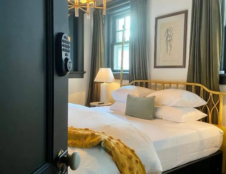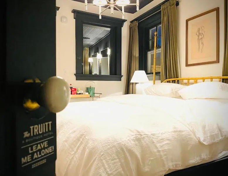 Elegant Accommodations: The Truitt in Kansas City offers a 4-star hotel experience with a garden, terrace, and free WiFi. Guests enjoy air-conditioning, private bathrooms, and modern amenities. Comfortable Facilities: The hotel features a lounge, concierge service, and a games room. Additional services include housekeeping, outdoor seating, picnic areas, family rooms, and free on-site private parking. Prime Location: Located 20 mi from Kansas City International Airport, The Truitt is a 16-minute walk from Hyde Park. Nearby attractions include the National World War I Museum and Union Station. An ice-skating rink is also available in the surroundings. Guest Favorites: Guests appreciate the hotel's history, culture, museums, and convenient location, making it a highly rated choice. This spacious suite consists of 1 living room, 2 separate bedrooms and 1 bathroom with a bath and free toiletries. This suite features air conditioning, a wardrobe, flat-screen TV with cable channels, as well as chocolate for guests. The unit offers 2 beds.