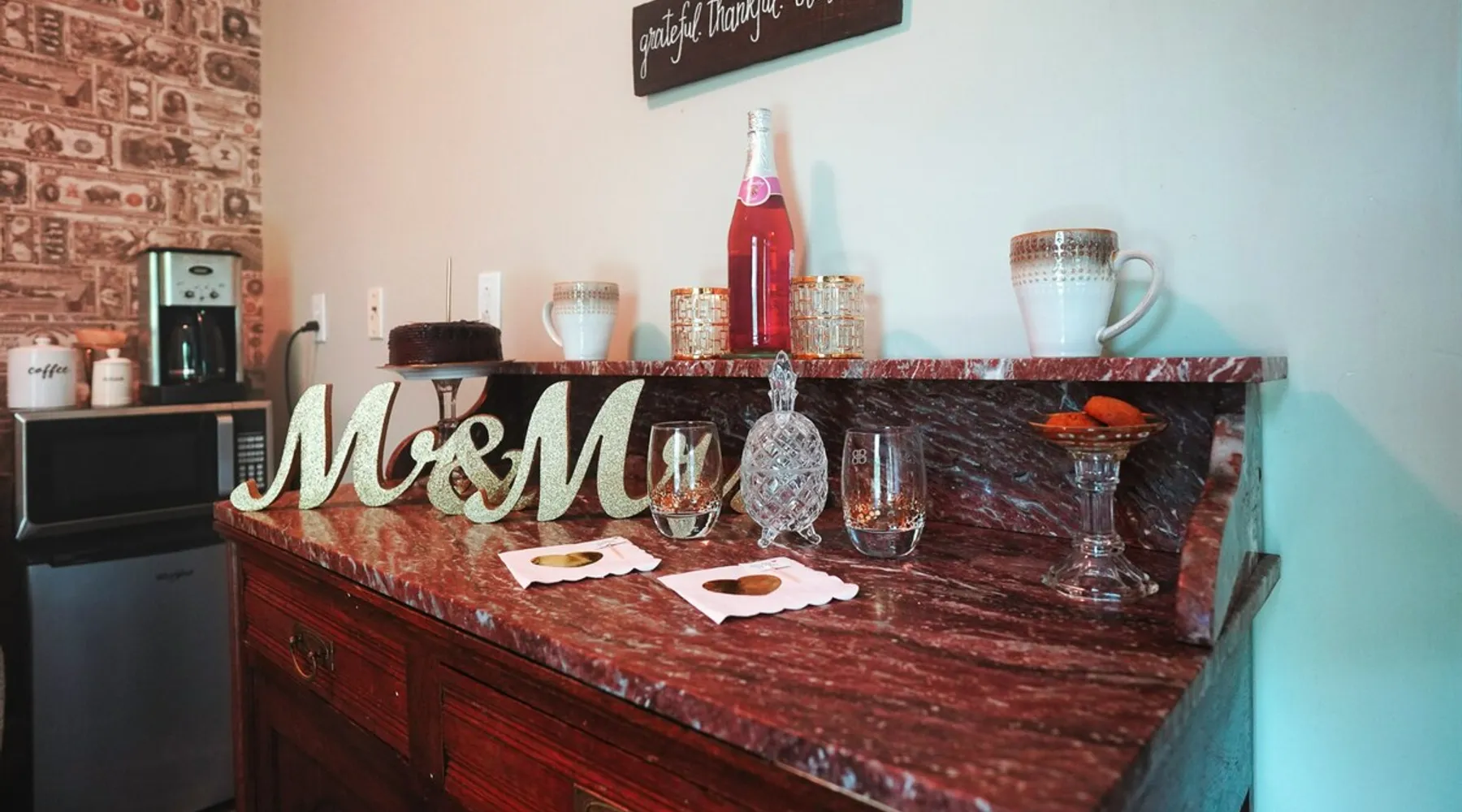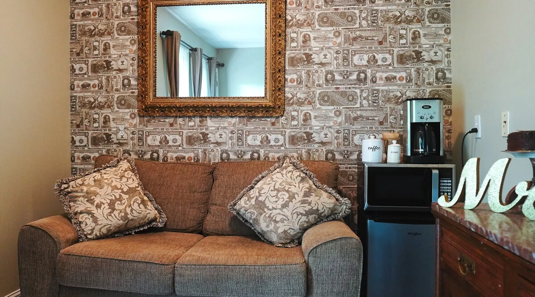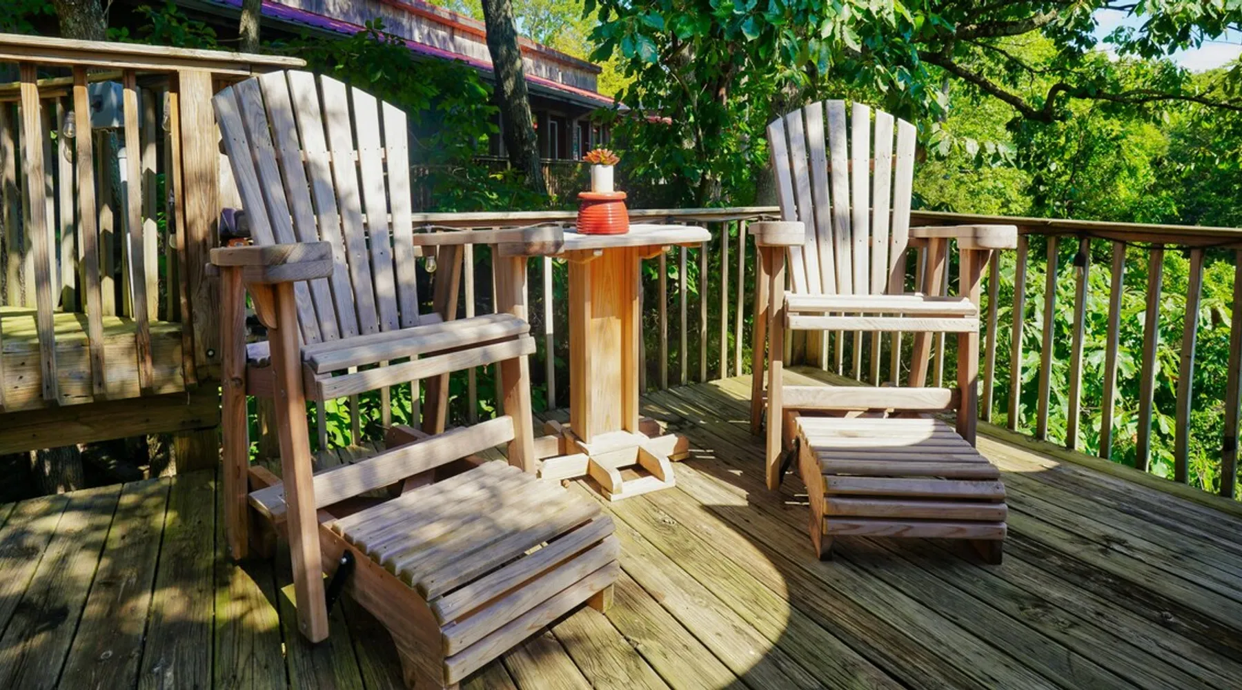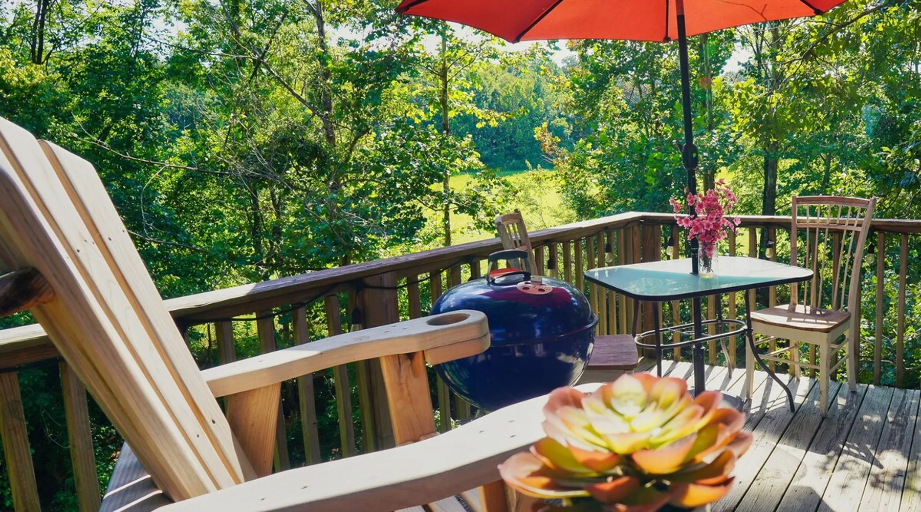 This fabulous room is our newest remodeled room. It has the original springfield Jail bar door on the exterior. We figured you wouldn’t want to spend the night in jail so we call it the treasury. Our guests are treasures. The space Picture of a room with a beautiful deck overlooking the Carr creek. Huge six person hot tub that you can unwind and soak to you’re hearts content. Please note we have seven hot tubs on our property. Five of the properties for rent here have private unshared hot tubs. The treasury hot tub is shared dependingg on occupancy. Look up Kelly’s jubilee to see the list of properties with unshared tubs and inquire on how to receive a discount code. Like to grill, there is a nice Webber to create the perfect meal to complete this experience. Inside you will find a gorgeous space with a king size bed and plush bedding. The room is equipped with A mini fridge, microwave, toaster, brew type coffee maker ( we even provide the fresh ground coffee). Relax, watch movies on a large screen tv stay inside and play games on a rainy day or hike and explore the 55 acre farm. We have around 50 chickens to visit. Some of them are rare breeds and quite lovely. The land is lush with plants trees and flowers. Many animals and birds thrive here at Kelly’s Jubilee. Including a family of river otters ❤️. I’ve seen groundhogs, foxes, Tennessee mink, deer, raccoons, possums, (which are very good animals to have around), wild turkeys, hawks, eagles, Great blue herons, owls, Canadian Honker, and all of the normal song birds including the most cardinals that I have ever seen in one place. Other things to note Please note we require a rental contact to be signed after booking via SignRequest.