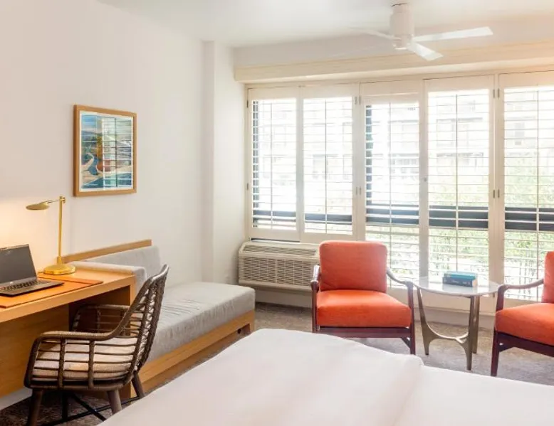 Located near Fisherman’s Wharf, it has easy access to shopping, dining, and whale watching. The Portola Hotel & Spa is 1 mi from the historic Cannery Row. Guest rooms feature a flat-screen TV and a refrigerator. The private bathroom includes eco-friendly amenities and a make-up mirror. Select rooms offer views of the harbor. The spacious triple room provides a tea and coffee maker, a safe deposit box and heating. The unit offers 1 bed.