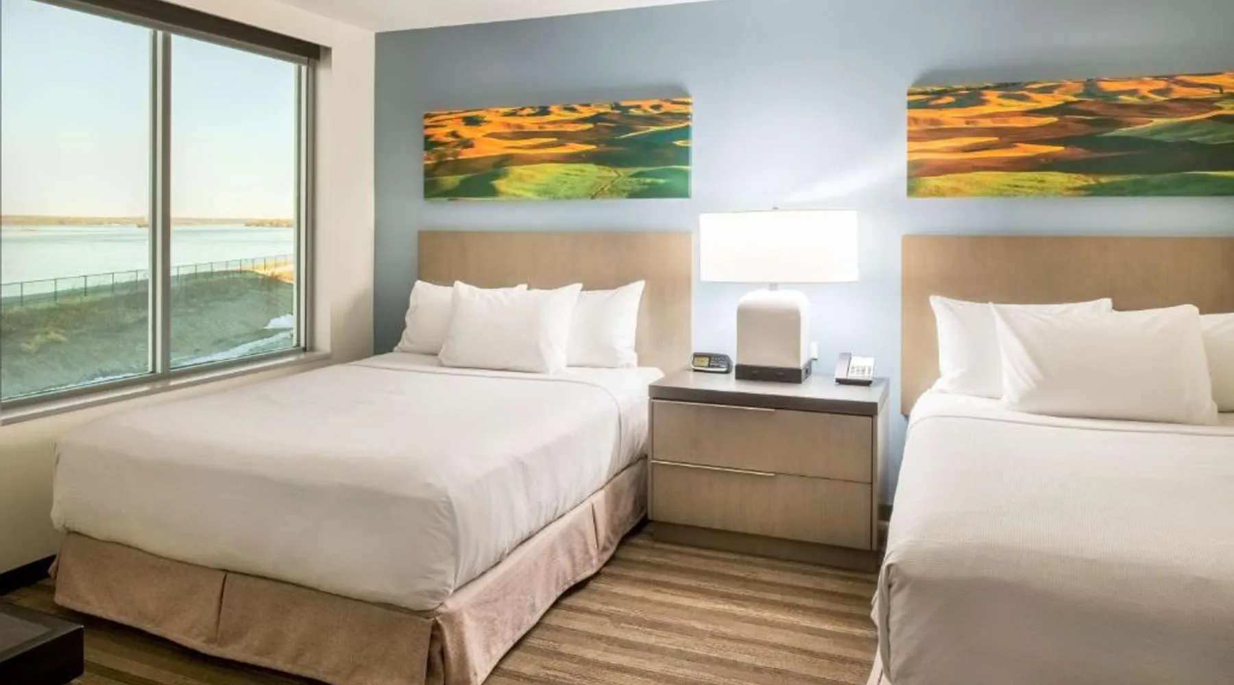 Comfortable Accommodations: Hyatt House East Moline/Quad Cities in East Moline offers family rooms with air-conditioning, private bathrooms, and modern amenities. Each room includes a tea and coffee maker, hairdryer, sofa bed, and work desk. Exceptional Facilities: Guests can enjoy a fitness center, terrace, indoor swimming pool, and free WiFi. Additional amenities include a lounge, outdoor fireplace, fitness room, and 24-hour front desk. Dining Options: The hotel serves American cuisine with a buffet breakfast. On-site dining options include a restaurant and bar, catering to diverse preferences. Prime Location: Located 8.1 mi from Quad City International Airport, the hotel is near attractions such as TaxSlayer Center (4.3 mi) and Fryxell Geology Museum (5.6 mi). Guests appreciate the scenic views and excellent service. The spacious suite has a private bathroom, air conditioning, a tea and coffee maker, as well as a seating area with a flat-screen TV. This suite features a TV with cable channels.