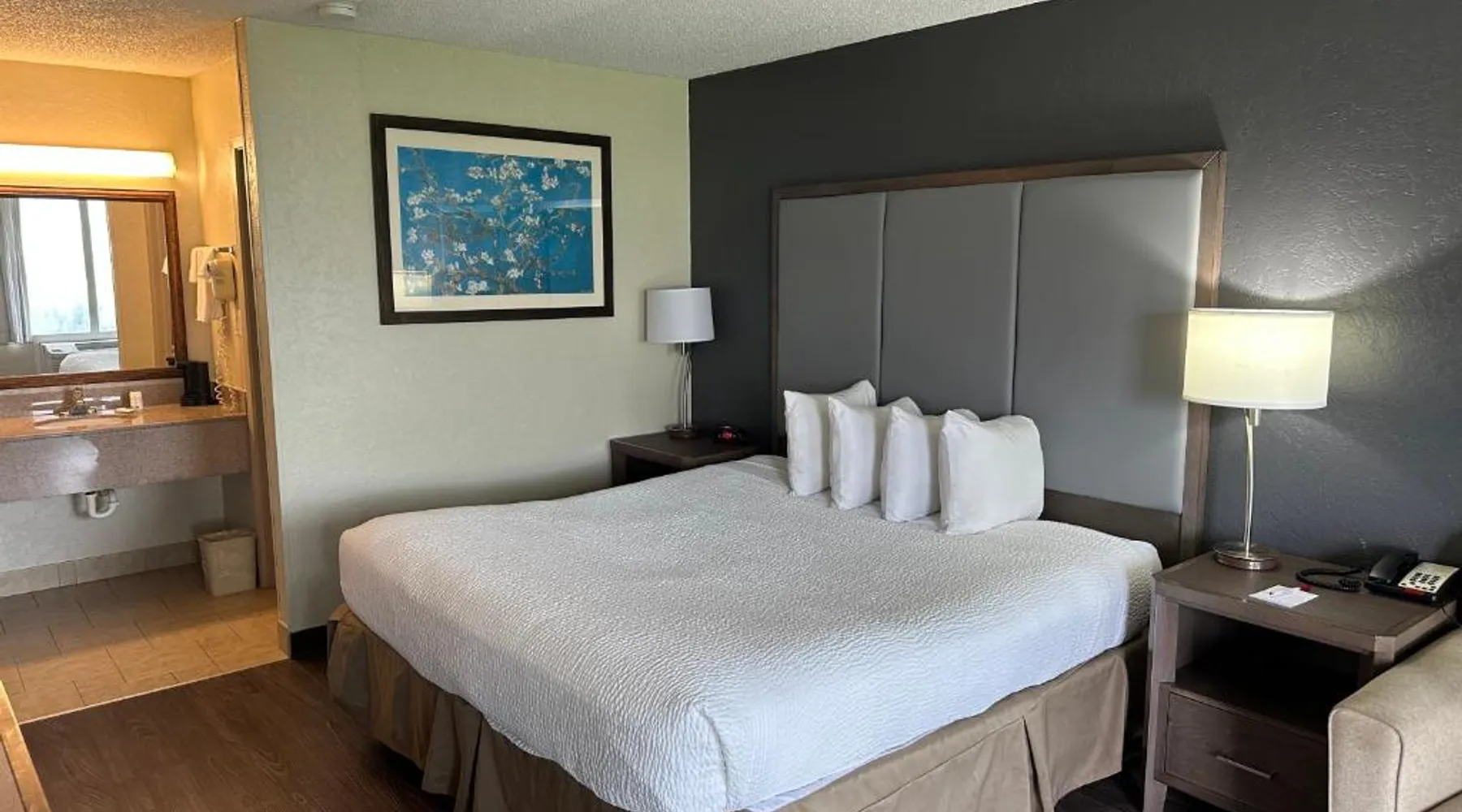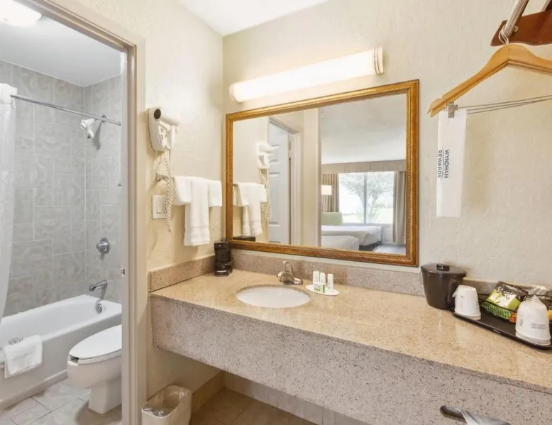 Comfortable Accommodations: Ramada by Wyndham Houma in Houma offers air-conditioned rooms with private bathrooms, free WiFi, and amenities such as a coffee machine, TV, and work desk. Leisure Facilities: Guests can enjoy an outdoor swimming pool, hot tub, and outdoor seating area. Additional features include a picnic area, barbecue facilities, and free on-site parking. Convenient Location: Located 45 mi from Louis Armstrong New Orleans International Airport, the hotel is near attractions like Houma-Terrebonne Civic Center (2.5 mi) and A Cajun Man Swamp Cruise (2.1 mi). The hot tub is the standout feature of this suite. The suite features air conditioning, a private entrance, as well as a private bathroom boasting a bath and a shower. The suite offers a coffee machine, a wardrobe, tumble dryer, a carpeted floor and a flat-screen TV. The unit has 1 bed.