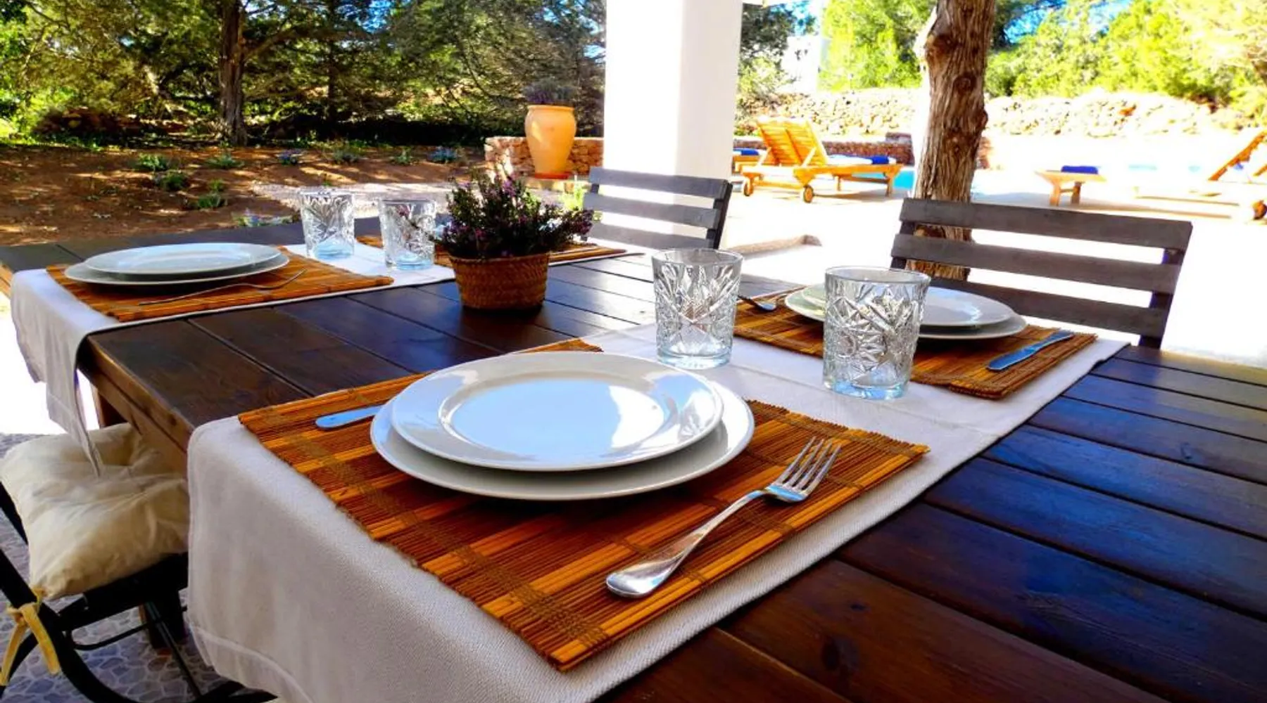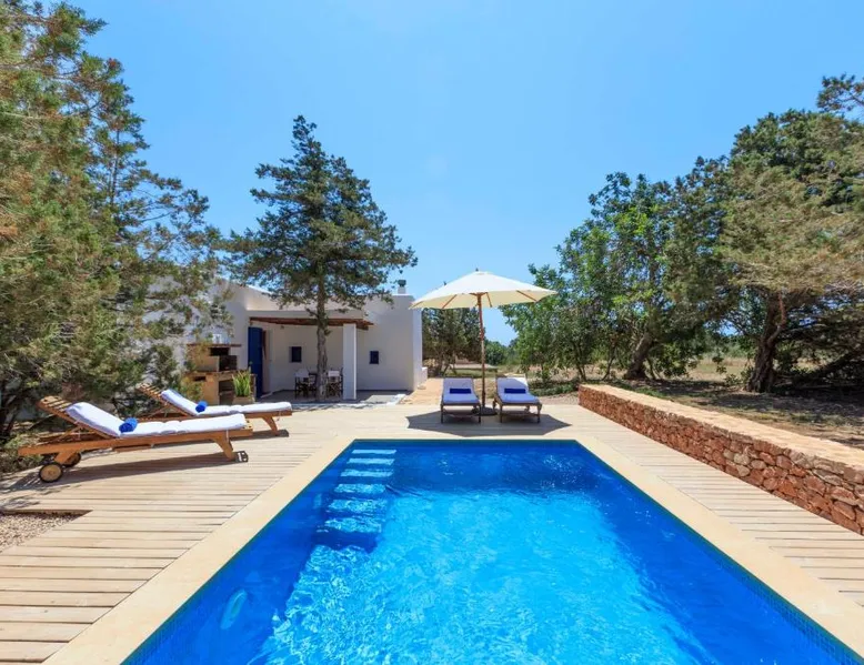 Elegant Holiday Home in Cala Saona: Finca Can Carlets offers a serene holiday home experience in Cala Saona, Spain. Guests enjoy a sun terrace, lush garden, and an outdoor swimming pool. Free WiFi is available throughout the property. Comfortable Accommodations: The holiday home features family rooms, a fully equipped kitchen, and a private bathroom. Additional amenities include air-conditioning, a fireplace, and a washing machine. Free on-site private parking ensures convenience for all guests. Explore the Surroundings: Located 24 mi from Ibiza Airport, Finca Can Carlets is close to attractions such as La Mola Lighthouse (11 mi) and Estany des Peix Lagoon (3 mi). Water sports enthusiasts can enjoy activities in the surrounding area. This holiday home's special features are the private pool and the fireplace. Featuring 2 bedrooms and 2 bathrooms with a hairdryer, this spacious holiday home offers a well-fitted kitchen and a terrace. The holiday home's kitchen, which has kitchenware, is available for cooking and storing food. This holiday home is air-conditioned and features a flat-screen TV with satellite channels, a washing machine and a barbecue. The unit has 3 beds.