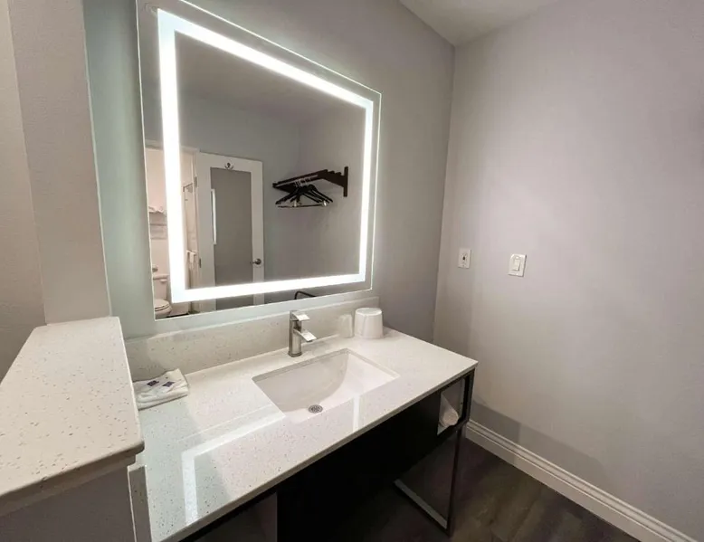 This hotel offers a seasonal outdoor swimming pool and is 10 minutes’ drive from Six Flags Discovery Kingdom Amusement Park. Free Wi-Fi is provided at Motel 6 Vallejo, CA - Napa Valley. Styled in modern décor, each room includes a TV set with limited cable channels, a mini-refrigerator and an private bathroom. Rooms are decorated with warm colors, neutral-colored linens and dark wood furniture. Select rooms feature hardwood laminated floors. Guests can relax in the lounge chairs on the sun terrace at Motel 6 Vallejo, CA - Napa Valley. Blue Rock Springs Golf Course is 10 minutes’ drive away. San Francisco International Airport is 1 hour's drive away. This air-conditioned double room includes a TV with cable channels and a private bathroom. The unit offers 1 bed.