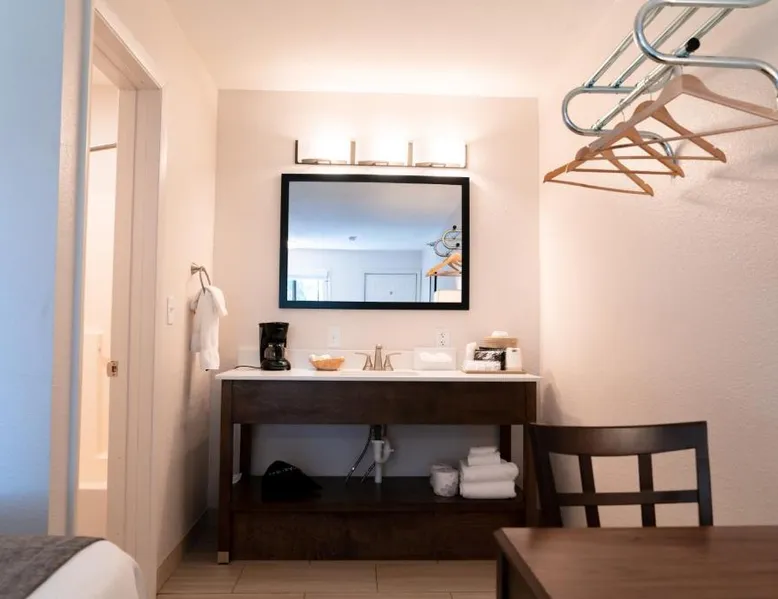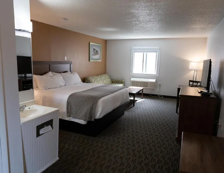 Comfortable Accommodations: Riviera Motor Lodge in Saratoga offers family rooms with private bathrooms, air-conditioning, and free WiFi. Each room includes a coffee machine, refrigerator, and TV. Relaxing Facilities: Guests can enjoy a hot spring bath, outdoor fireplace, and terrace. Free bicycles are available for exploring the area. Convenient Amenities: The hotel provides free on-site private parking, an outdoor play area, and barbecue facilities. Additional amenities include a washing machine, kitchenette, and balcony. Activities and Location: Located 102 mi from Laramie Regional Airport, Riviera Motor Lodge offers fishing, hiking, and cycling. The reception staff speak English and Spanish. The spacious double room offers air conditioning, a coffee machine, as well as a private bathroom featuring a walk-in shower and a hairdryer. This double room features a carpeted floor, heating, a flat-screen TV with satellite channels and a quiet street view. The unit offers 1 bed.