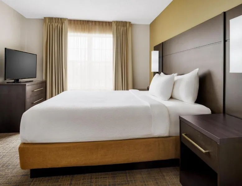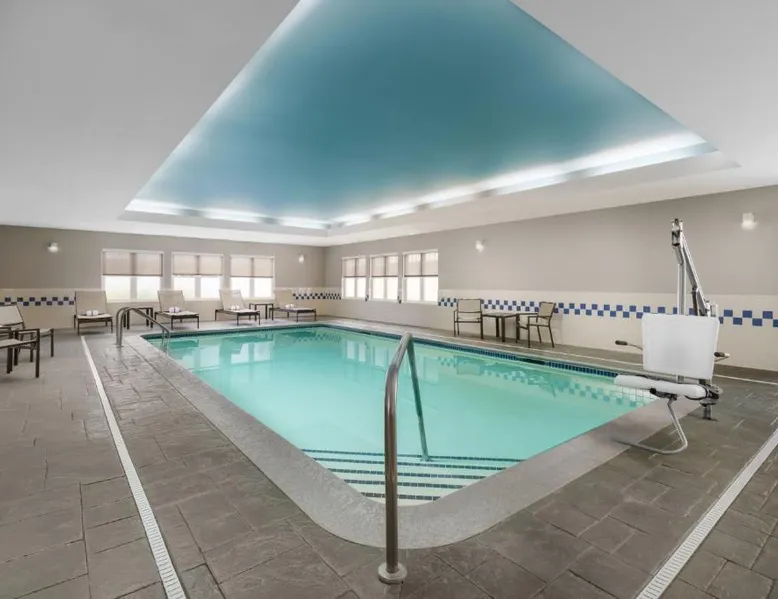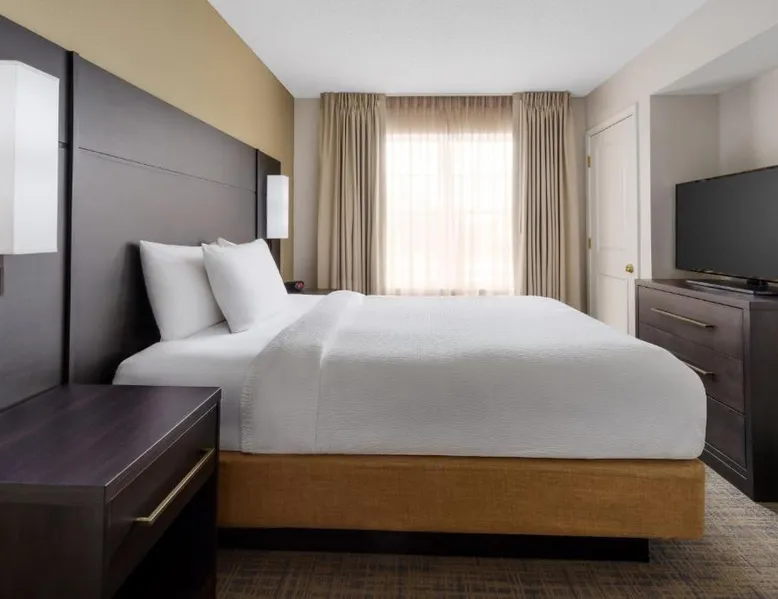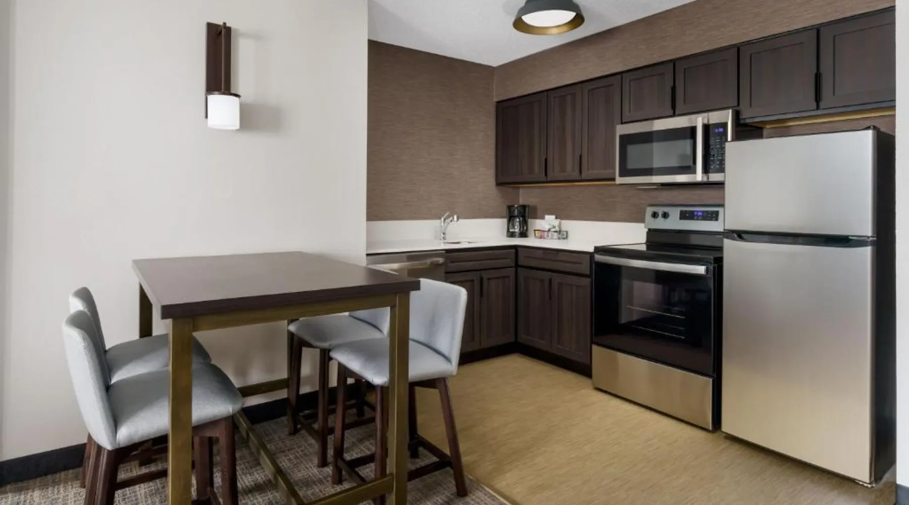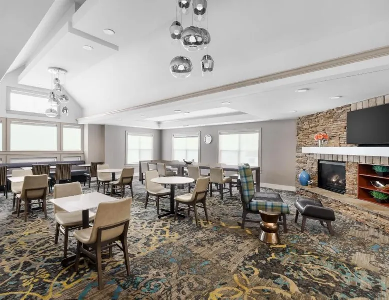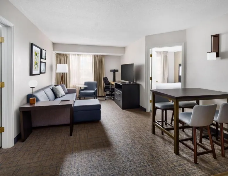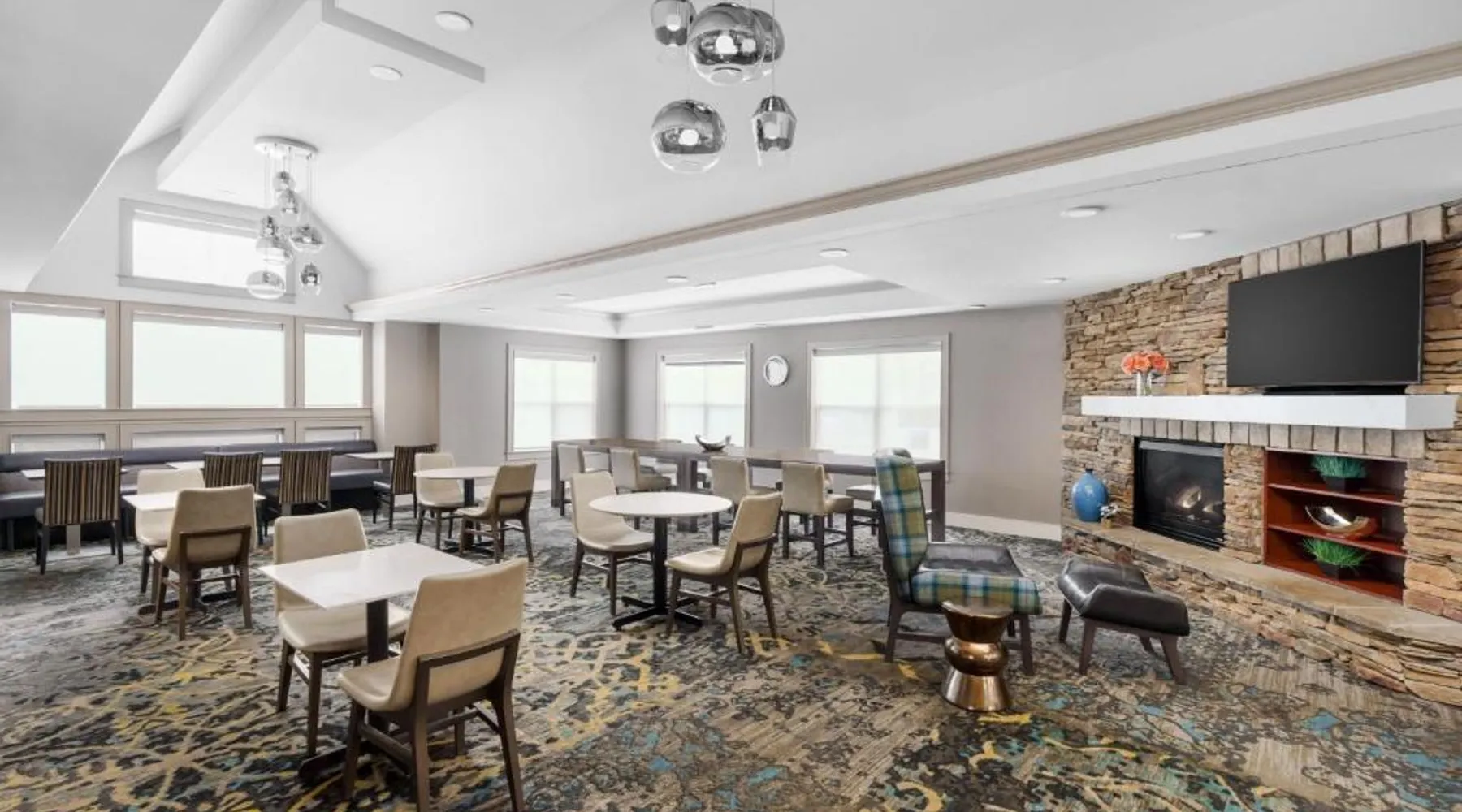 Comfortable Accommodations: Residence Inn Hartford Rocky Hill in Rocky Hill offers family rooms with air-conditioning, private bathrooms, and free WiFi. Each room includes a work desk, seating area, and a kitchenette equipped with a refrigerator, microwave, and dishwasher. Leisure Facilities: Guests can enjoy a fitness center, indoor swimming pool, and outdoor fireplace. Additional amenities include a fitness room, outdoor seating area, and barbecue facilities. Free on-site private parking is available. Dining Options: A complimentary American buffet breakfast is served daily. The hotel also features a business area and outdoor dining space. Location and Attractions: Located 23 mi from Bradley International Airport, the hotel is near Trinity College and Wesleyan University (8.1 mi), Wadsworth Atheneum (9.9 mi), and Mark Twain House (11 mi). Suite offers a fully equipped kitchen, guest bathroom and a fireplace.