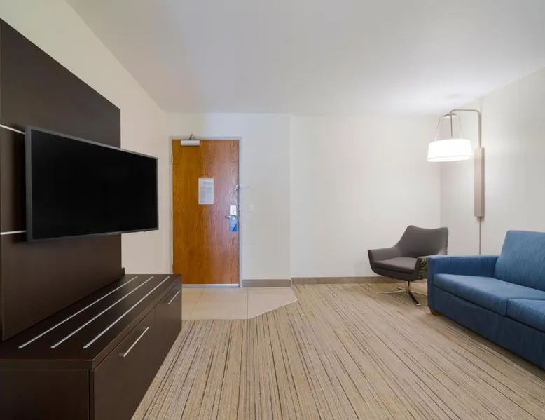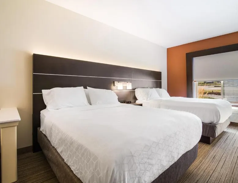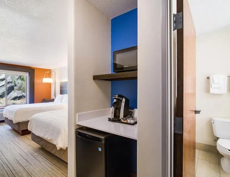 Comfortable Accommodations: Holiday Inn Express & Suites Custer-Mt Rushmore in Custer offers family rooms with private bathrooms, air-conditioning, and free WiFi. Each room includes a work desk, TV, and wardrobe. Leisure Facilities: Guests can enjoy an indoor swimming pool, fitness center, sun terrace, and hot tub. Additional amenities include a lounge, outdoor fireplace, and outdoor seating area. Dining Options: A buffet breakfast is served daily, featuring warm dishes, juice, pancakes, and fruits. The on-site minimarket provides convenience for guests. Location and Attractions: Located 21 mi from Mount Rushmore and 8.7 mi from Black Hills National Forest, the hotel is 48 mi from Rapid City Regional Airport. Nearby attractions include Crazy Horse Memorial (5.6 mi) and Rush Mountain Adventure Park (24 mi). This suite's standout feature is the pool with a view. Offering free toiletries, this suite includes a private bathroom with a bath, a shower and a hairdryer. The suite offers air conditioning, a tea and coffee maker, a wardrobe, a safe deposit box, as well as a flat-screen TV with cable channels. The unit offers 2 beds.