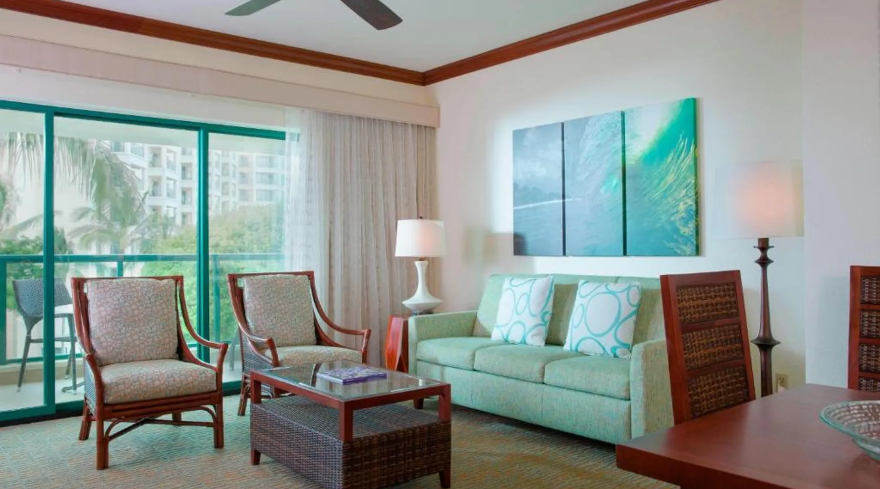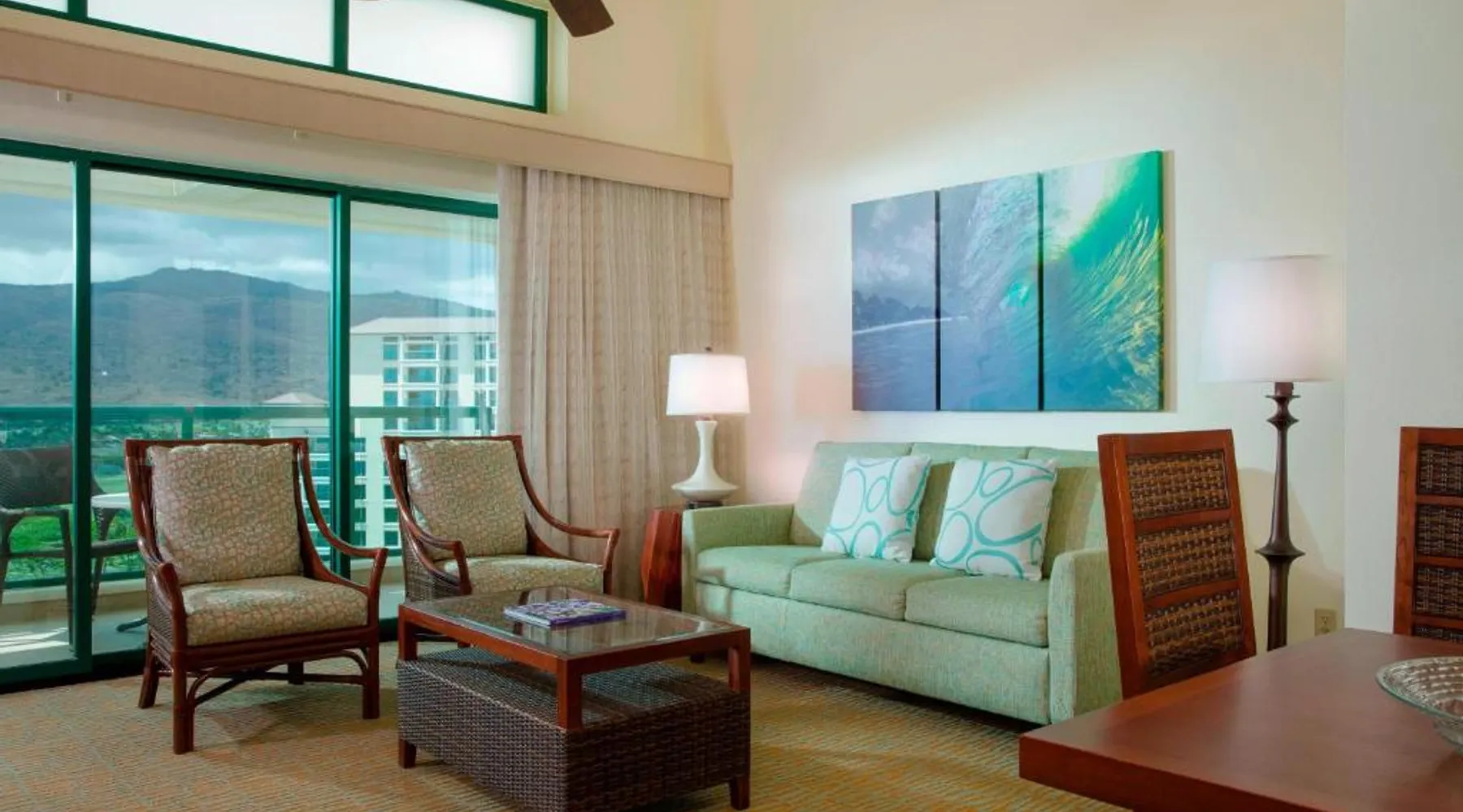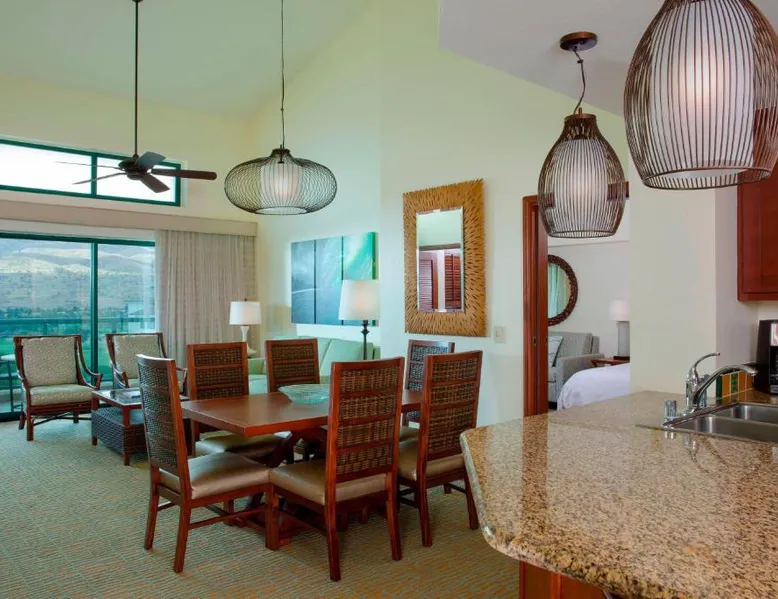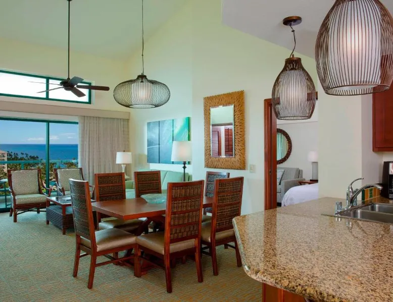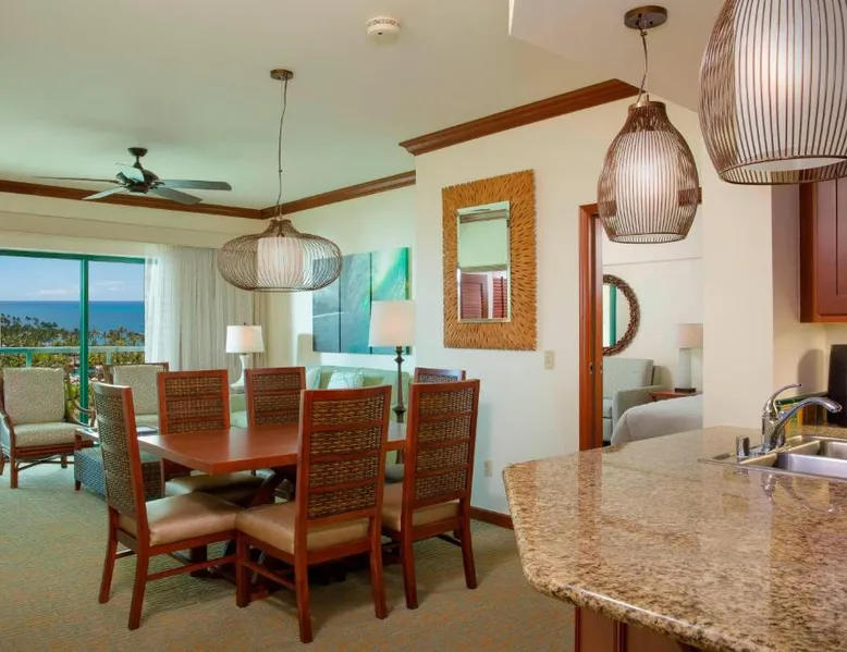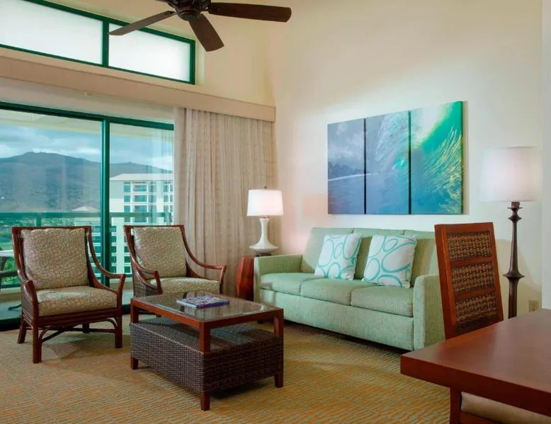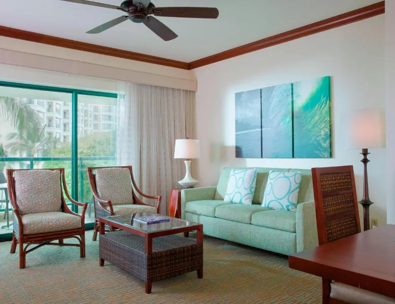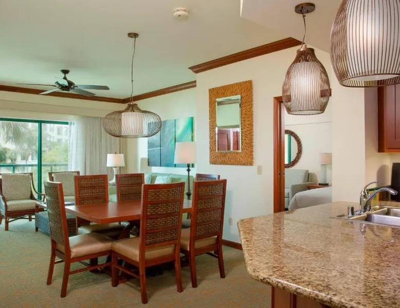 The Marriott's Ko Olina Beach Club is located off the H1 freeway and faces Ko Olina Beach. It features spacious rooms with ocean or mountain views and 3 outdoor pools surrounded by palm trees. The rooms at the Ko Olina Beach Club have a fully equipped kitchen, a separate living area, a dining room, a washing machine and tumble dryer, a TV with cable channels, and a DVD player. Guests can enjoy American dishes at Longboards Bar & Grill. Marriott's Ko Olina Beach Club also features the Fia Fia Polynesian Dinner Show on Tuesday evenings, which offers live Polynesian entertainment and local dishes. The Marriott’s Ko Olina also offers the Spa by the Sea at Ko Olina, where guests can enjoy body massages. The hotel also has 7 relaxing hot tubs, as well as a modern fitness center. Hawaiian Waters Adventure Park is 10 minutes' drive away. Ko Olina Golf Club is less than 1 mi away. Offering a balcony, this suite includes a flat-screen cable TV, a seating area and an private bathroom.