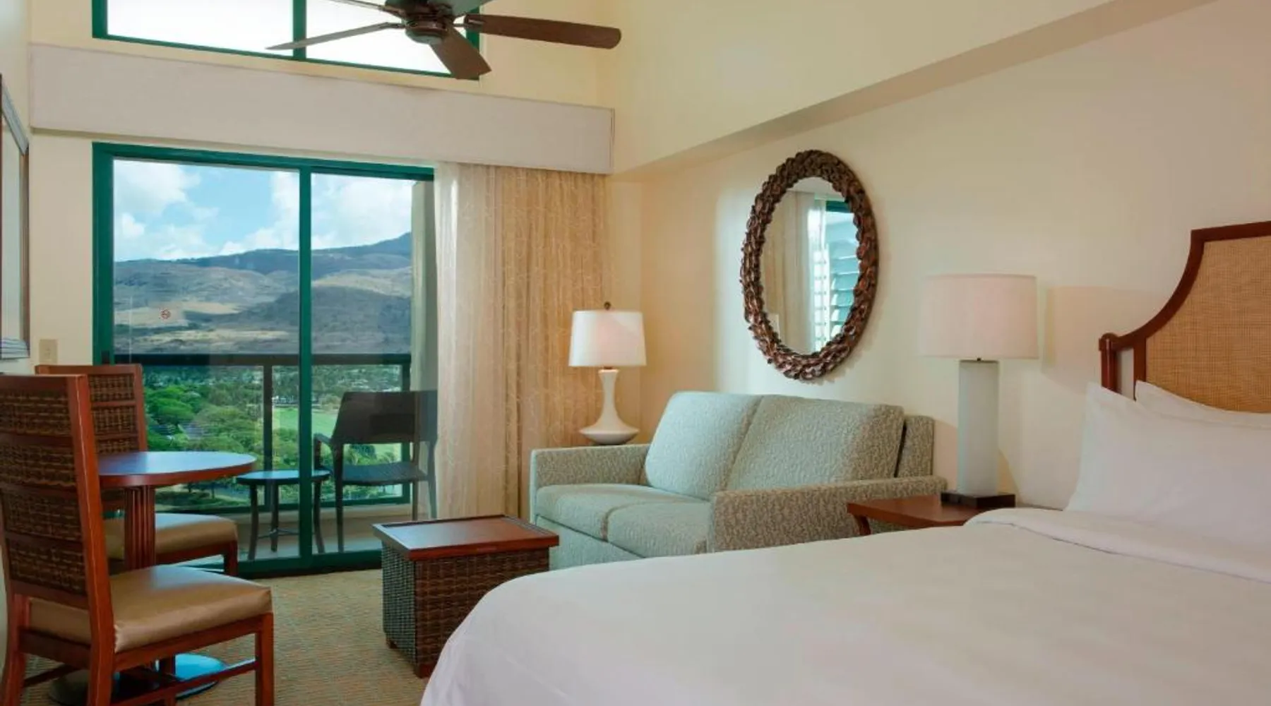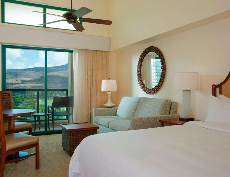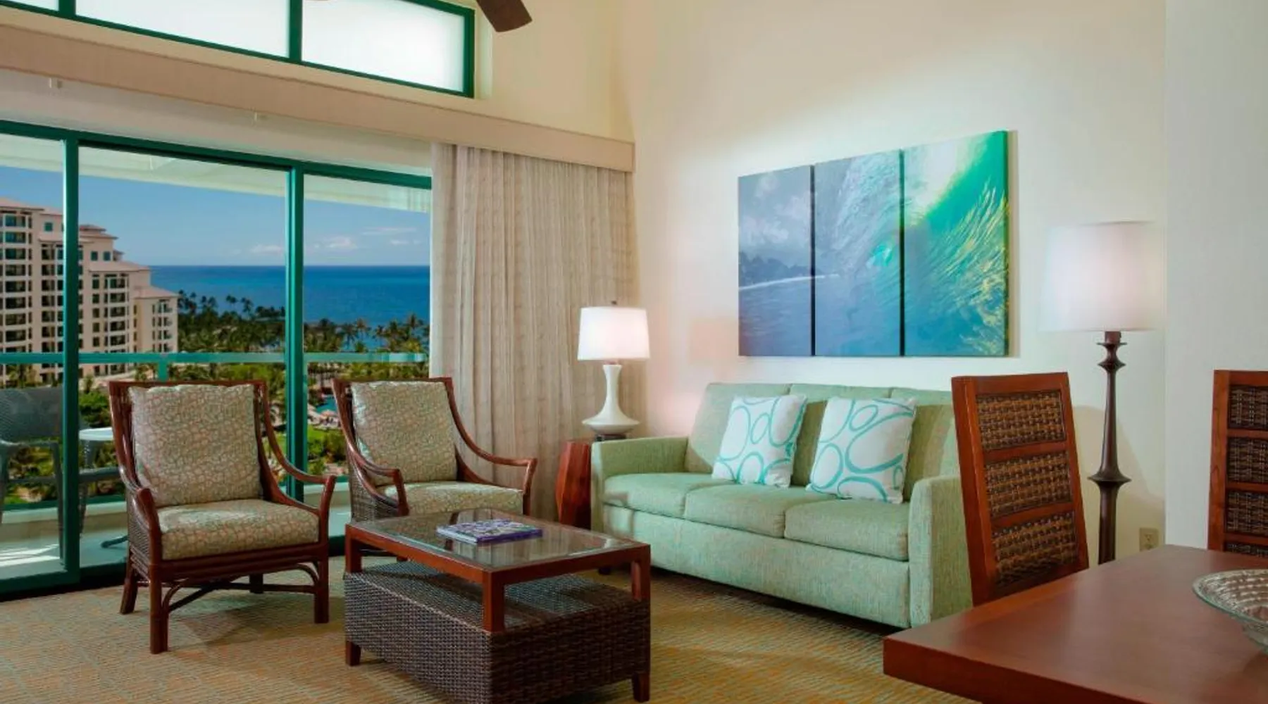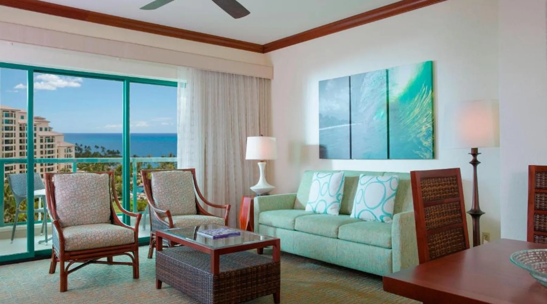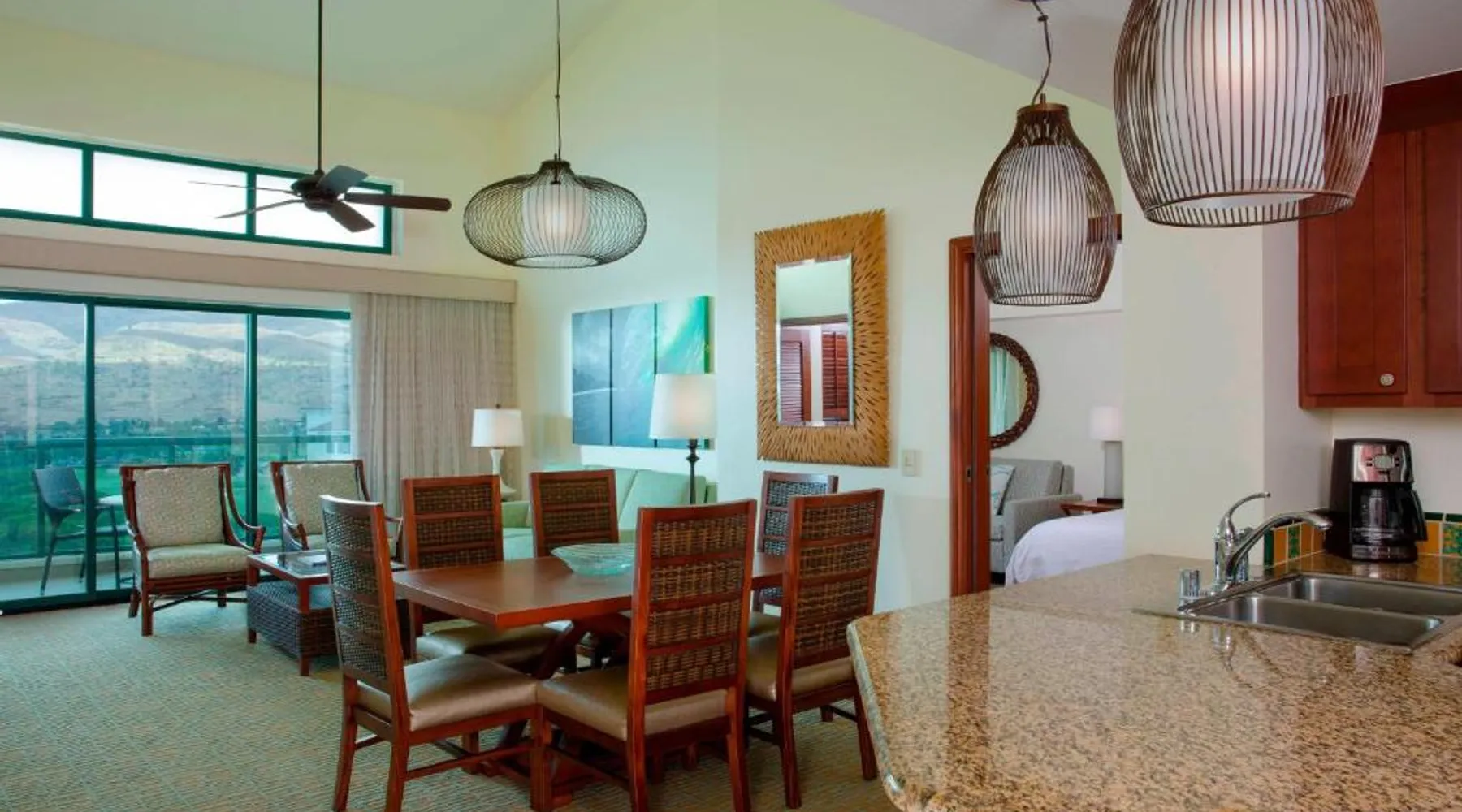 The Marriott's Ko Olina Beach Club is located off the H1 freeway and faces Ko Olina Beach. It features spacious rooms with ocean or mountain views and 3 outdoor pools surrounded by palm trees. The rooms at the Ko Olina Beach Club have a fully equipped kitchen, a separate living area, a dining room, a washing machine and tumble dryer, a TV with cable channels, and a DVD player. Guests can enjoy American dishes at Longboards Bar & Grill. Marriott's Ko Olina Beach Club also features the Fia Fia Polynesian Dinner Show on Tuesday evenings, which offers live Polynesian entertainment and local dishes. The Marriott’s Ko Olina also offers the Spa by the Sea at Ko Olina, where guests can enjoy body massages. The hotel also has 7 relaxing hot tubs, as well as a modern fitness center. Hawaiian Waters Adventure Park is 10 minutes' drive away. Ko Olina Golf Club is less than 1 mi away. Offering a balcony, this suite includes a flat-screen cable TV, a seating area and an private bathroom.