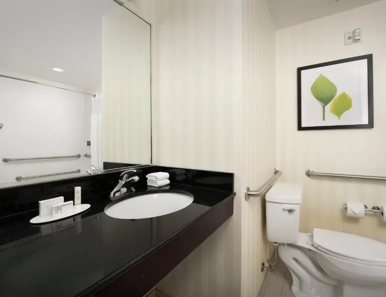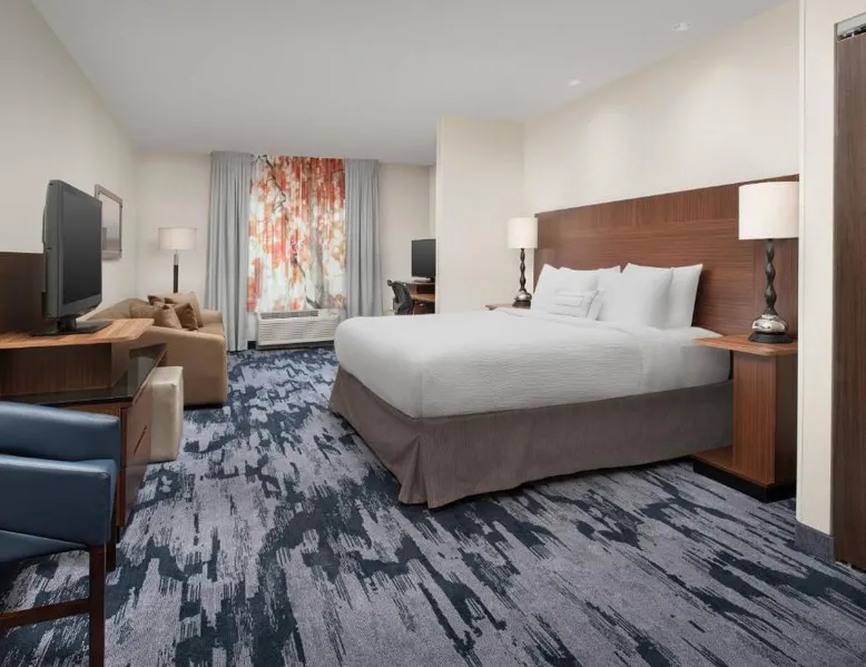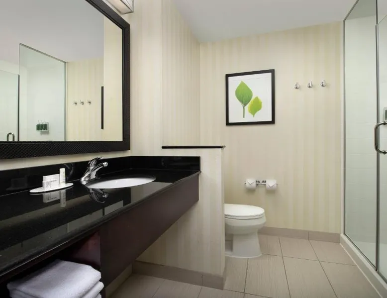 Comfortable Accommodations: Fairfield Inn & Suites Baltimore BWI Airport in Linthicum Heights offers family rooms with air-conditioning, private bathrooms, and free WiFi. Each room includes a work desk, TV, and complimentary toiletries. Exceptional Facilities: Guests can enjoy a fitness center, indoor swimming pool, sun terrace, and free airport shuttle service. Additional amenities include a lounge, business area, and outdoor seating. Delicious Breakfast: A continental buffet breakfast is served daily, featuring warm dishes, fresh pastries, pancakes, and more. Guests appreciate the variety and quality of the morning meal. Prime Location: Located 1.9 mi from Baltimore - Washington International Airport, the hotel is near attractions such as Carroll Park and Inner Harbor. Free on-site private parking is available. Featuring free toiletries, this double room includes a private bathroom with a shower and a hairdryer. The air-conditioned double room features a flat-screen TV with cable channels, a tea and coffee maker, a seating area, a sofa as well as a quiet street view. The unit has 1 bed.