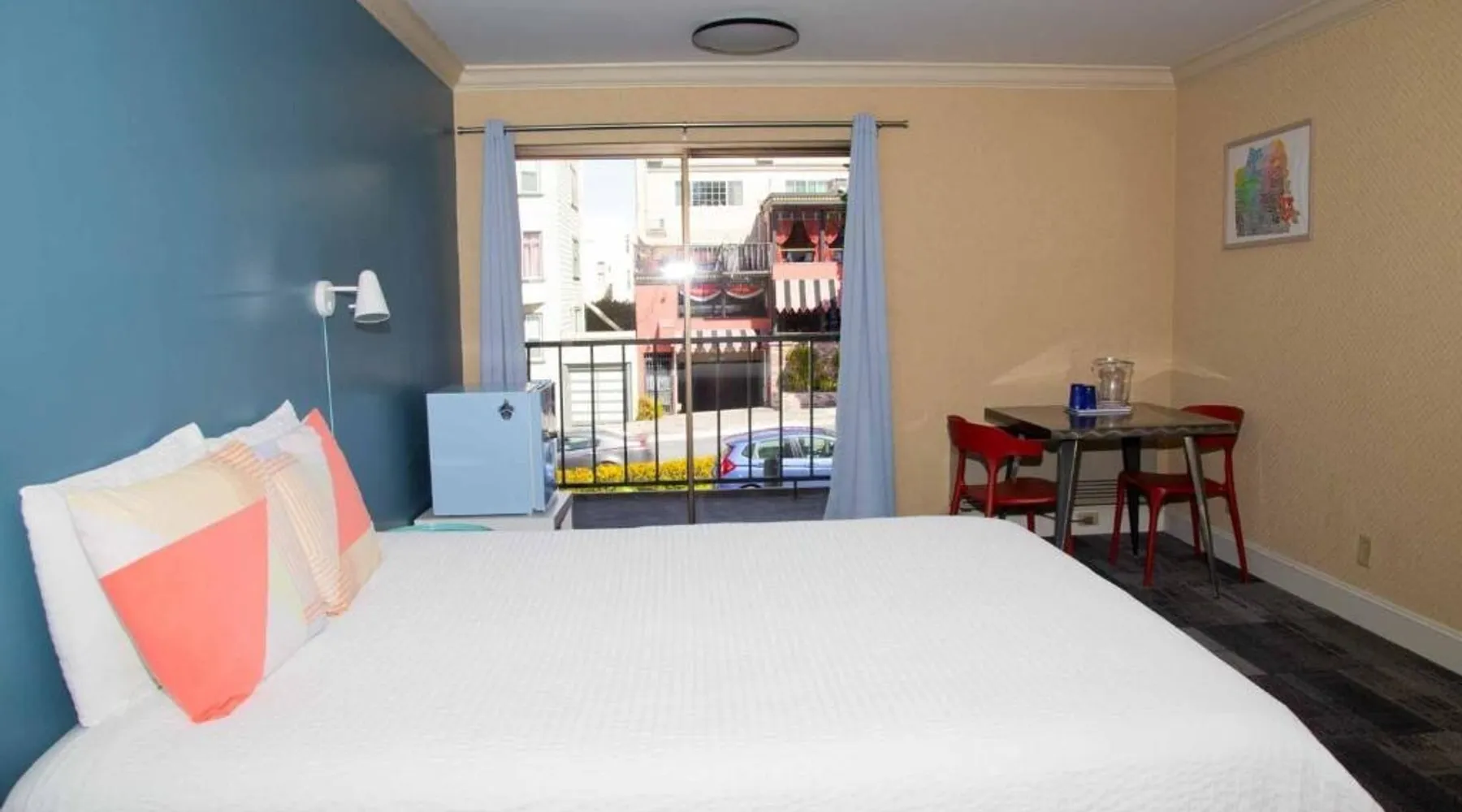 A private ADA compliant room with ensuite washroom and AC. The room has a queen bed. The space Welcome to Samesun San Francisco! Our hostel is a short hop from all the big sights, in the heart of the San Francisco. We are close to shops, restaurants and even breweries! As our guest you will have access to our common spaces which include a cozy lounge to hang out as well as a kitchen if you wish to prepare your own meals. We also include free breakfast, towels, toiletries and WiFi for the duration of your stay. Other things to note Please note that all guests checking in must present a government-issued ID with their name and photo clearly visible. All guests must have a valid credit card in their name, this is used in case of any incidentals and must be in the name of the guest staying at the property. As we are a hostel, all guests are required to be traveling and locals from the San Francisco area must show onward travel such as a flight ticket, train tickets leaving the area. check-in free of charge, less than 24 hours notice there is a 1st-night charge. No-shows: If a guest doesn't show up on the check-in date the booking will automatically be marked as a no-show and will be cancelled for the guest by Samesun, only the 1st night will be charged, and the remaining nights won't be charged. If you wish to keep the reservation, contact Samesun San Francisco about your delay at the latest of 23:59 on the day of check-in. Registration details Exempt