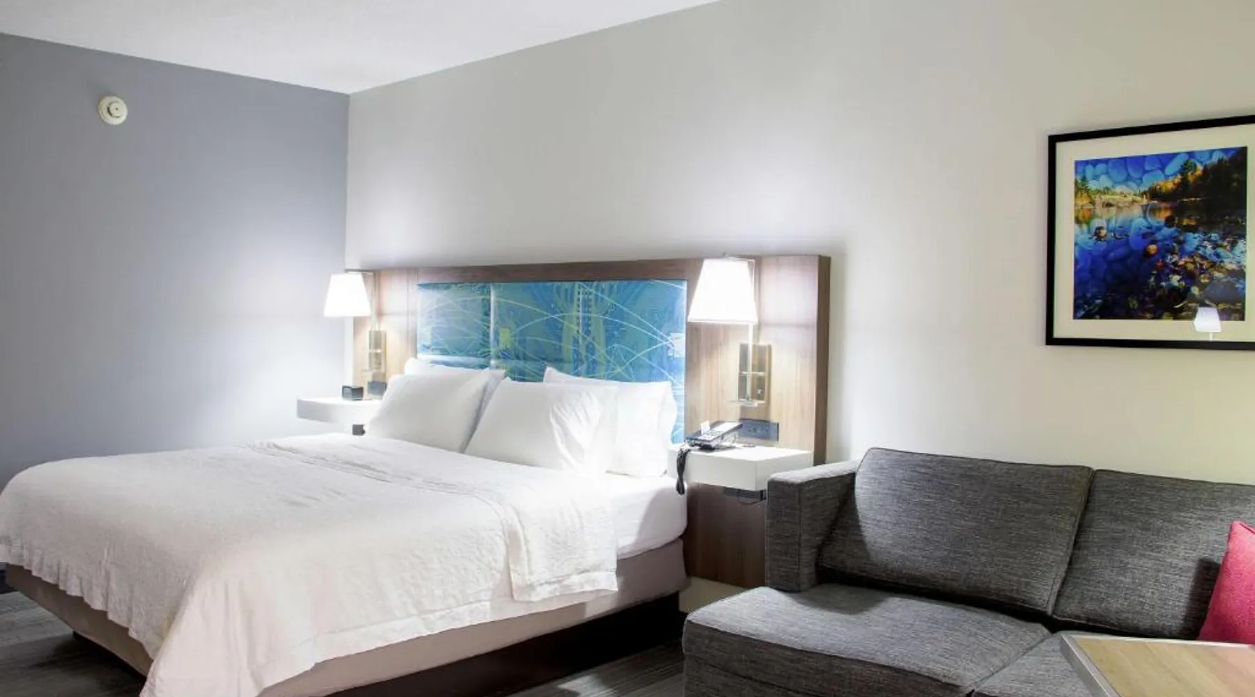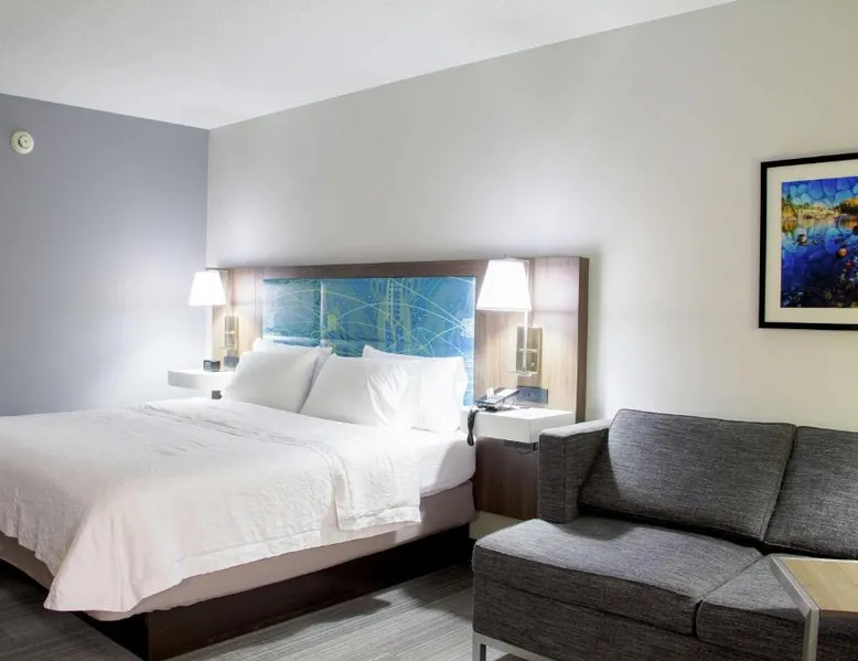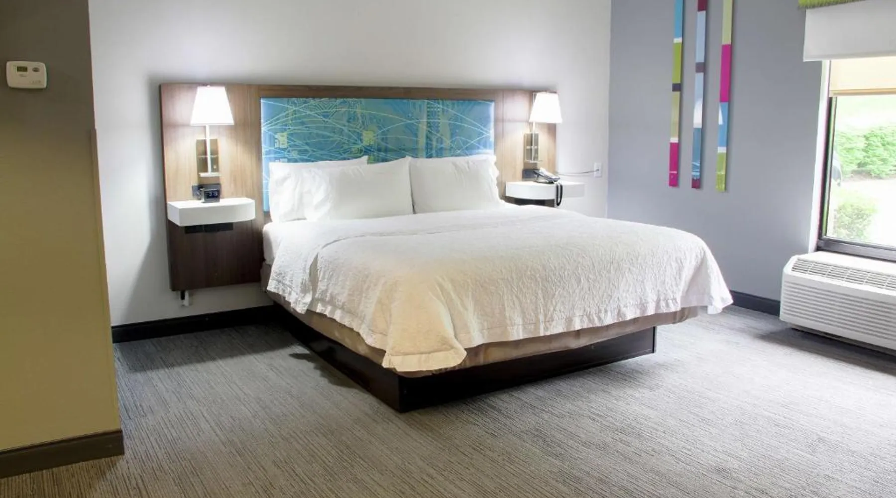 Comfortable Accommodations: Hampton Inn Danville in Danville offers comfortable rooms with air-conditioning, free WiFi, and modern amenities. Each room includes a tea and coffee maker, refrigerator, microwave, and TV. Exceptional Facilities: Guests can enjoy a fitness center, indoor swimming pool, and a business area. Additional facilities include a elevator, 24-hour front desk, daily housekeeping, and free on-site parking. Delicious Breakfast: A continental, American, or buffet breakfast is served each morning, featuring fresh pastries, cheese, fruits, and juice. The outdoor seating area and picnic area provide relaxing spaces. Convenient Location: Located 39 mi from Blue Grass Airport, the hotel is highly rated for its attentive staff, excellent breakfast, and immaculate room cleanliness. The spacious double room features air conditioning, a tea and coffee maker, a game console, video games and a flat-screen TV. The unit has 1 bed.