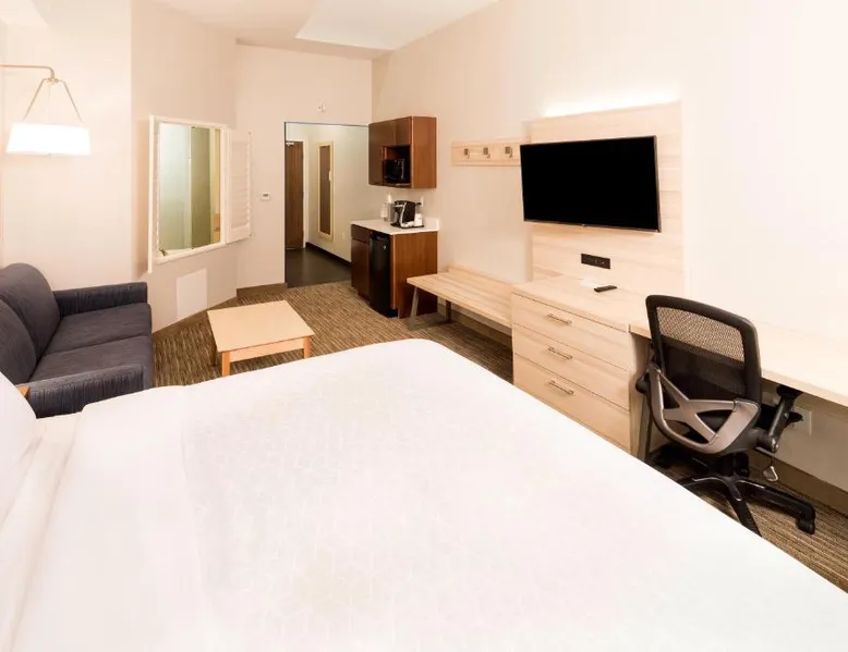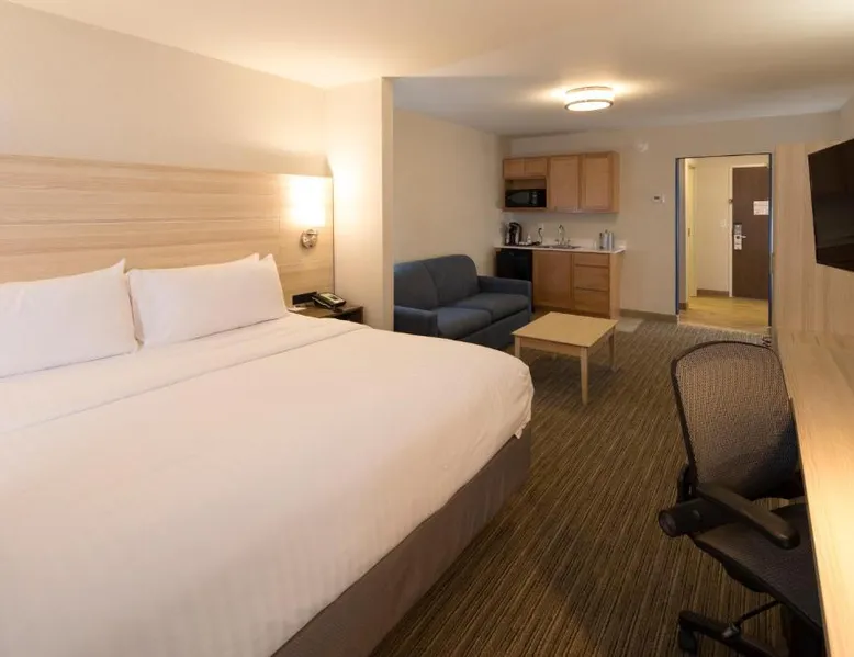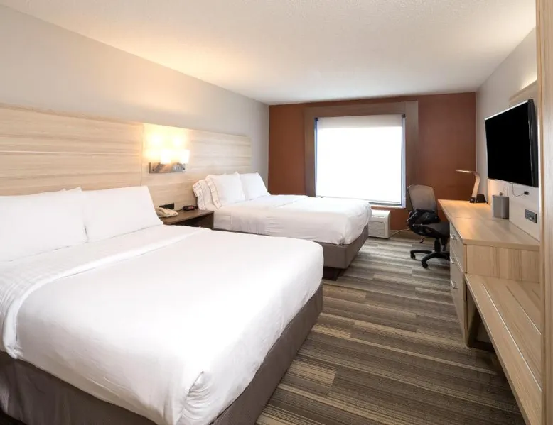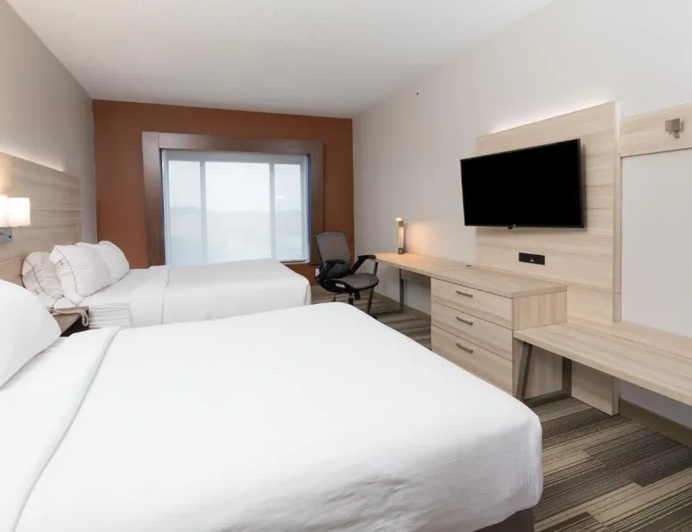 Comfortable Accommodations: Holiday Inn Express & Suites - Gaylord by IHG in Gaylord offers family rooms with air-conditioning, kitchenettes, private bathrooms, and free WiFi. Each room includes a work desk, sofa bed, and TV. Leisure Facilities: Guests can enjoy a fitness center, indoor swimming pool, and heated pool. Additional amenities include a minimarket, business area, and free on-site parking. Dining Options: A continental buffet breakfast is served daily. The property also provides a child-friendly buffet and express check-in and check-out services. Location and Attractions: Located 50 mi from Pellston Regional Airport and 22 mi from Monument Golf Course. Highly rated for breakfast, staff, and room cleanliness. The unit offers 2 beds.