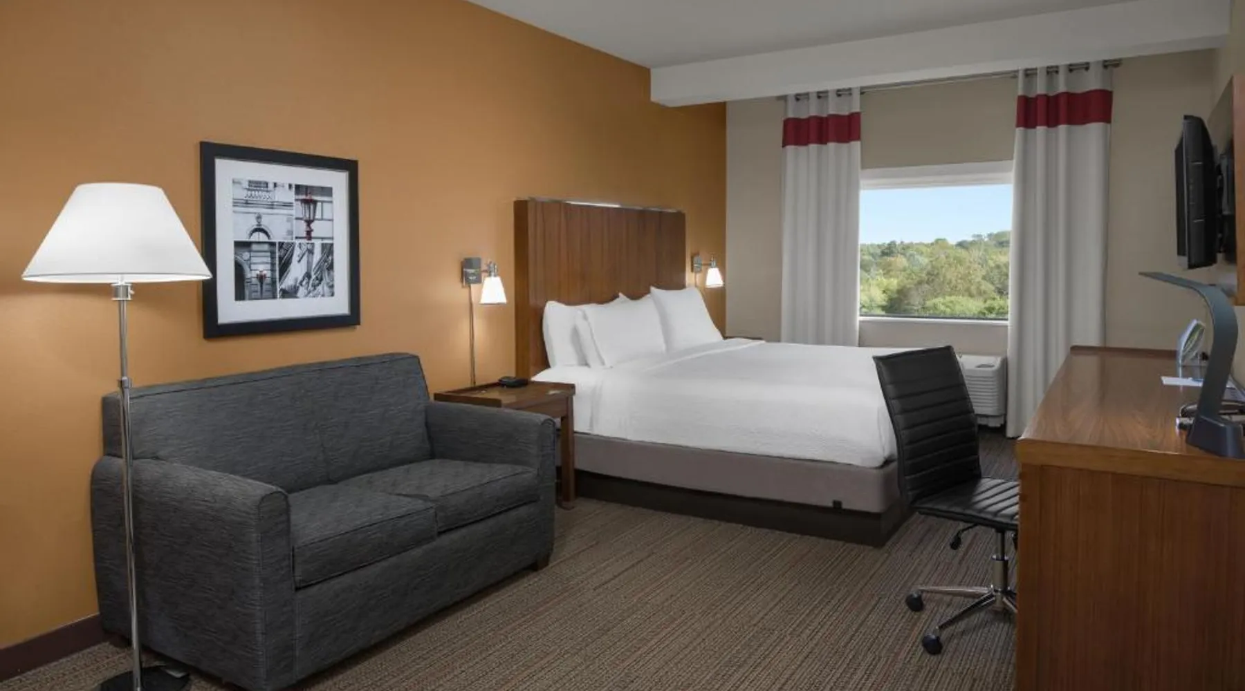 Comfortable Accommodations: Four Points by Sheraton Newark Christiana Wilmington in Newark offers family rooms with air-conditioning, private bathrooms, and free WiFi. Each room includes a coffee machine, refrigerator, and TV. Dining and Leisure: The modern restaurant serves American cuisine with vegetarian, vegan, gluten-free, and dairy-free options. Guests can enjoy a fitness center, free bicycles, and a bar. Convenient Location: Located 3.1 mi from New Castle Airport, the hotel is near attractions such as Old Dutch House (6.2 mi) and Delaware Museum of Natural History (14 mi). Guests appreciate the attentive staff and room cleanliness. The spacious suite has 1 bedroom and 1 bathroom with a bath and free toiletries. The suite features carpeted floors, a seating area with a flat-screen TV with satellite channels, air conditioning, a coffee machine, as well as a wardrobe. The unit has 2 beds.