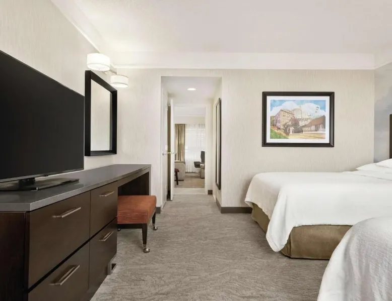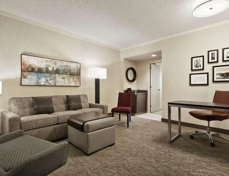With a central location in Deerfield, Illinois, this all-suite property offers easy access to Chicago attractions as well as luxurious services and convenient on-site facilities near shopping and dining venues. Embassy Suites Chicago is just 15 miles from Chicago O'Hare International Airport. The Chicago Botanical Garden is 5 miles away. The Ravinia Festival is a short 15 minute drive from the hotel. Take a quick train ride on the Metra into downtown for world-class shopping, dining and entertainment options. Featuring a flat-screen TV with pay-per-view-channels, this hearing-accessible suite also offers a microwave, fridge, and tea and coffee-making facilities. There is a sofa bed in the second room.