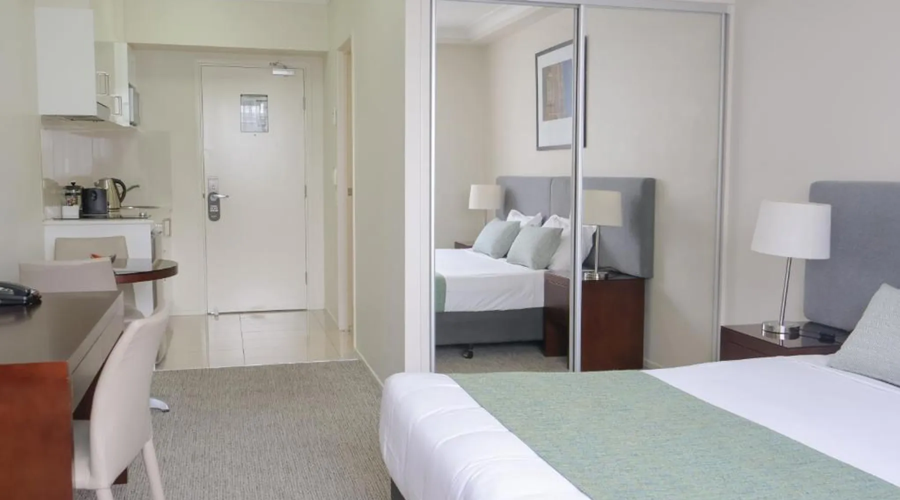 Located just 5 minutes’ drive from the Brisbane CBD and directly opposite the popular Breakfast Creek Hotel, Quest Breakfast Creek features an outdoor pool, fitness center and secure car parking. All apartments feature a full kitchen & balcony, while studios come equipped with kitchenette facilities. All rooms feature a flat screen TV, air-conditioning as well as free Wi-Fi. The property offers an extensive pantry service equipped with local produce and essential items, a complimentary laundry facility, as well as communal BBQ facilities. Quest Breakfast Creek is just 1.9 mi from Eagle Farm & Doomben Racecourses, 3.1 mi from the Brisbane International Cruise Terminal and only 6.2 mi from the Brisbane International & Domestic Airport. Boasting a private entrance, this air-conditioned apartment includes 1 living room, 2 separate bedrooms and 2 bathrooms with a walk-in shower and a bath. Guests will find a stovetop, a refrigerator, a dishwasher and kitchenware in the kitchen, and a washing machine and dryer. The apartment also features a barbecue. This wheelchair accessible apartment has a washing machine, a seating area with a flat-screen TV and a roll-in shower. The unit has 2 beds. Pet friendly on request only - additional fees apply.
