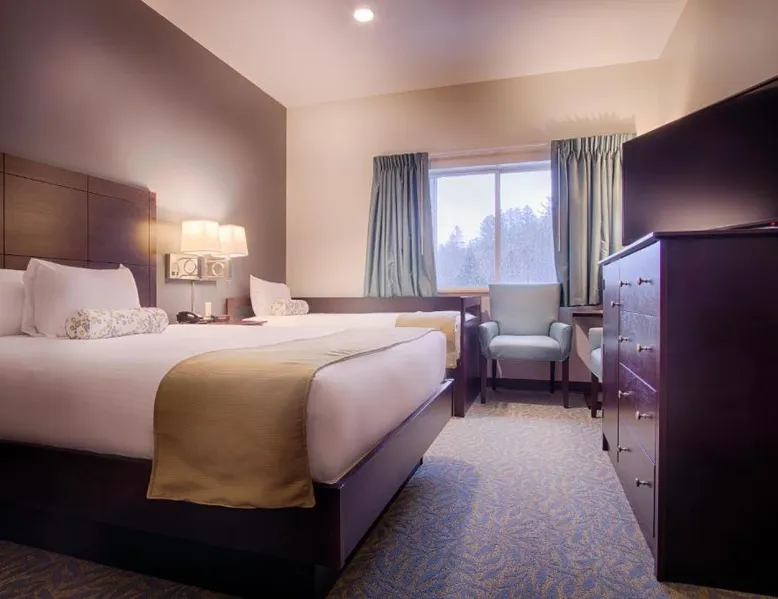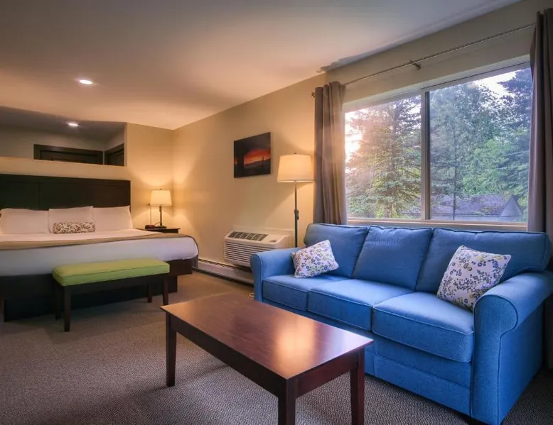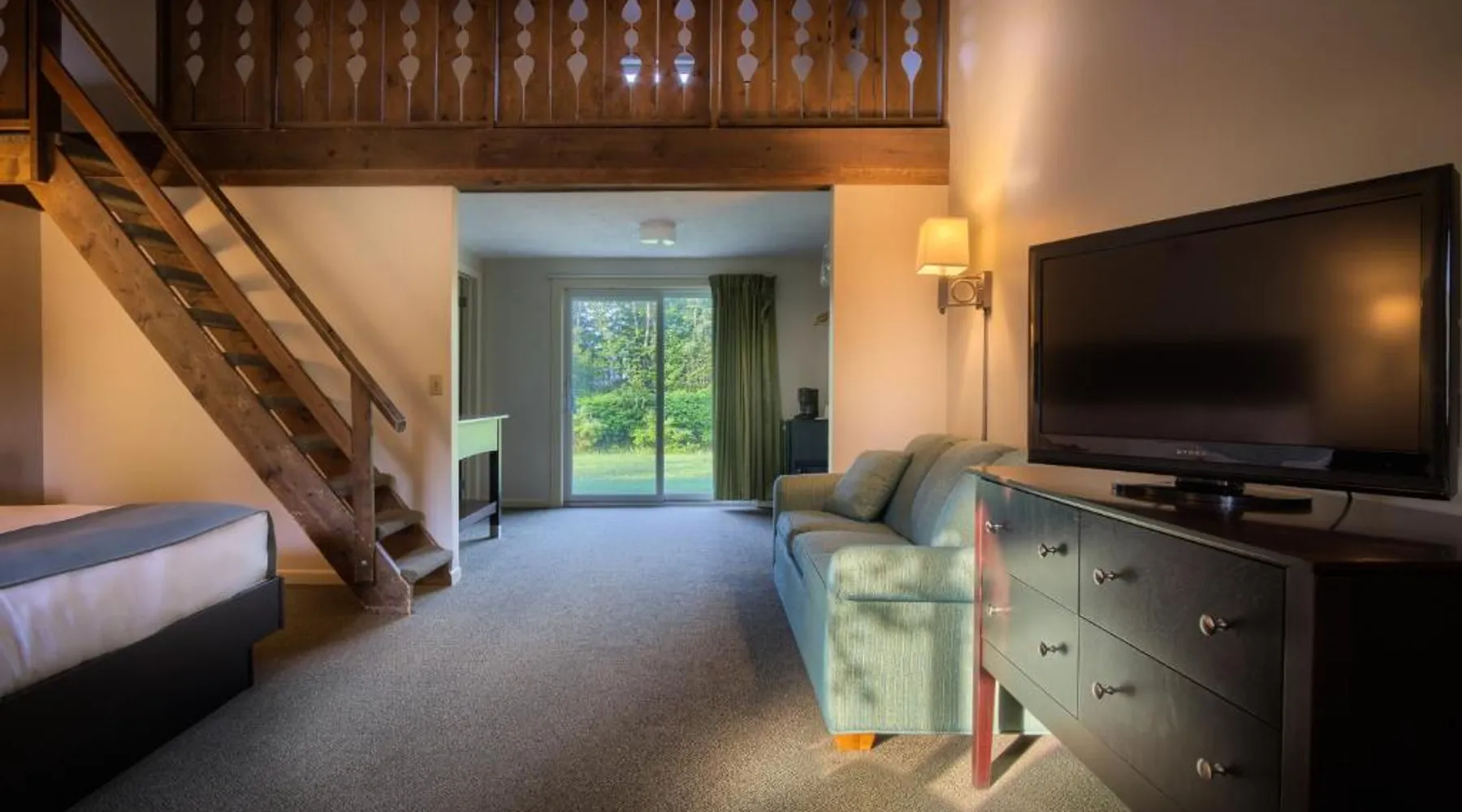 This hotel is next to the Little River, near Mount Mansfield in Stowe, Vermont. The hotel offers a glass-enclosed swimming pool. Sun & Ski Inn & Suites features nonsmoking guest rooms with mini-refrigerators and coffee makers. Cable TV and private bathrooms are also included in each room. The Stowe Recreation Path is next to the Sun & Ski Inn and offers biking and ski trails. The Stowe Country Club is also nearby. This bungalow provides a fireplace. This bungalow consists of 1 living room, 3 separate bedrooms and 2 bathrooms with a bath and free toiletries. The well-equipped kitchen has a stovetop, a refrigerator, kitchenware and an oven. The bungalow features carpeted floors, a seating area with a flat-screen TV with cable channels, air conditioning, soundproof walls, as well as a coffee machine. The unit offers 4 beds. NO PETS ALLOWED. This unit is located 1/2 mile from the hotel, with multiple levels of stairs to the condo level. The resort has its own laundry facility, pool and hot tub located in a separate building.