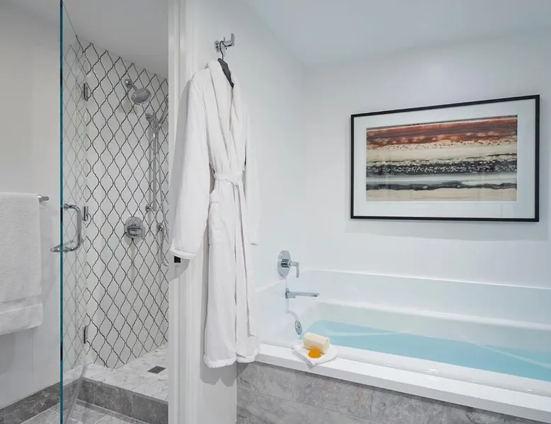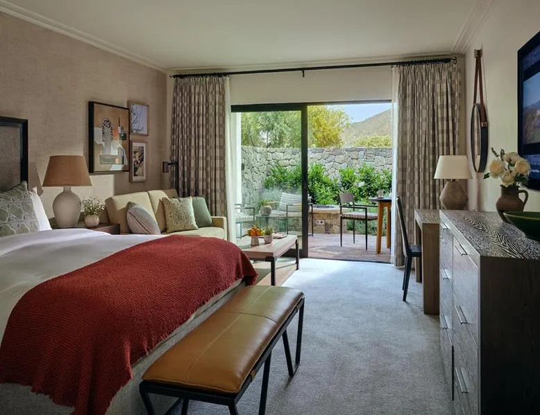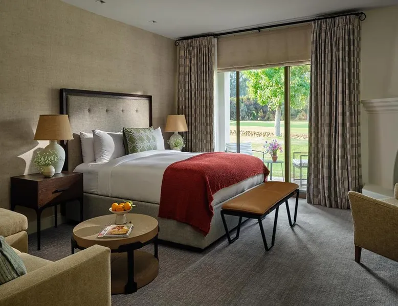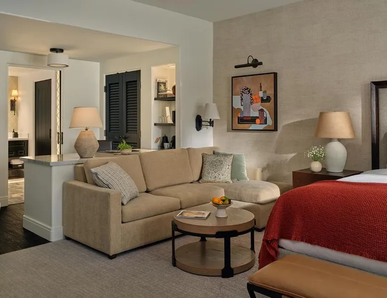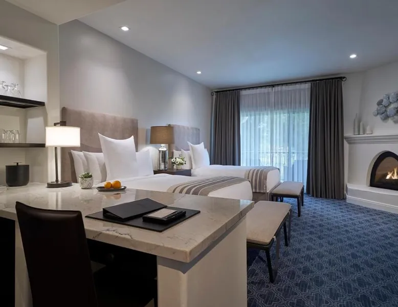 Surrounded by scenic hills and mountains, this historic and celebrated resort features a full health spa and a championship golf course. Five restaurants feature dishes made from locally grown ingredients. An iPad and a flat-screen TV are included in every room. Rooms at the Ojai Valley Inn are decorated in Spanish Colonial style and feature in-room coffee machines. Spa Ojai bathroom amenities, a flat-screen TV and a radio with iPod connection are also included. Some rooms offer a fireplace. Spa Ojai welcomes guests with warm, exotic rooms featuring a variety of massages and treatments. A long list of mind and body fitness classes is also available. In addition to the two pools at the spa, the resort offers a large, outdoor family swimming pool with food and beverage service. The Ojai tennis program can offer coaching advice or simply provide the facilities for some fun. Teen and children’s programs are also open in a variety of activities. The Inn at Ojai Valley is 7 miles from Lake Casitas and 17 miles from Pierpoint Bay. This suite features a bathrobe, mini-bar and cable TV. It also features a gas-burning fireplace with a seating area and a fully furnished balcony or patio. There is also a deep soaking tub.