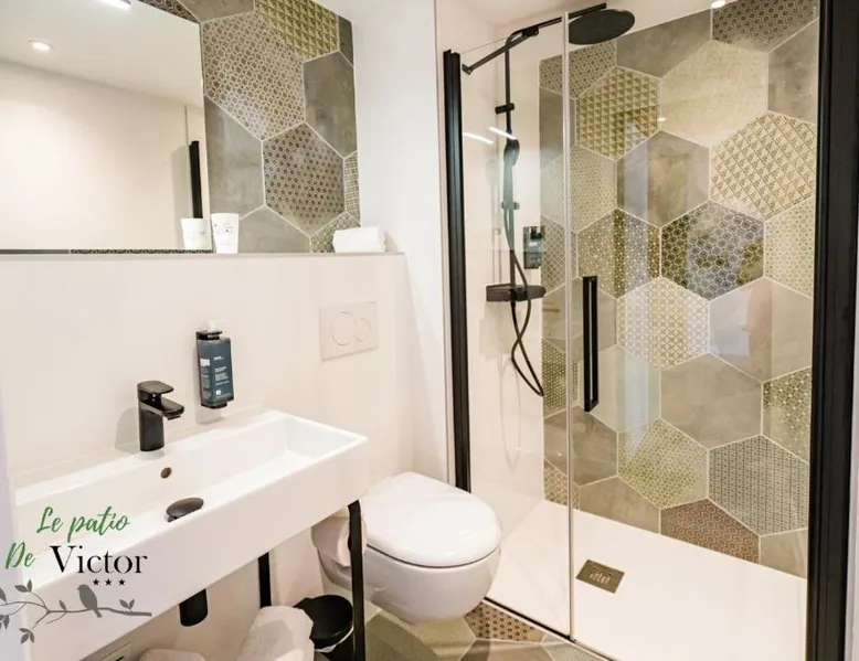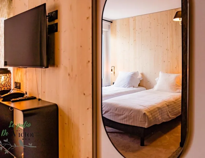 This hotel is located within a short walk from Lorient city center, 0.9 mi from the Cité de la Voile and 3.1 mi from Larmor Beach. Provided with free Wi-Fi internet access, guest rooms at Le Patio de Victor includes a TV and a shower. The property is a 15-minute walk from Lorient Train Station and a 10-minute walk from the ferries that lead to Ile d’Groix. The Palais de Congres is 2625 feet away. Individually decorated, these rooms come with a desk, TV and free Wi-Fi. The private bathroom is equipped with sink, shower and toilet.