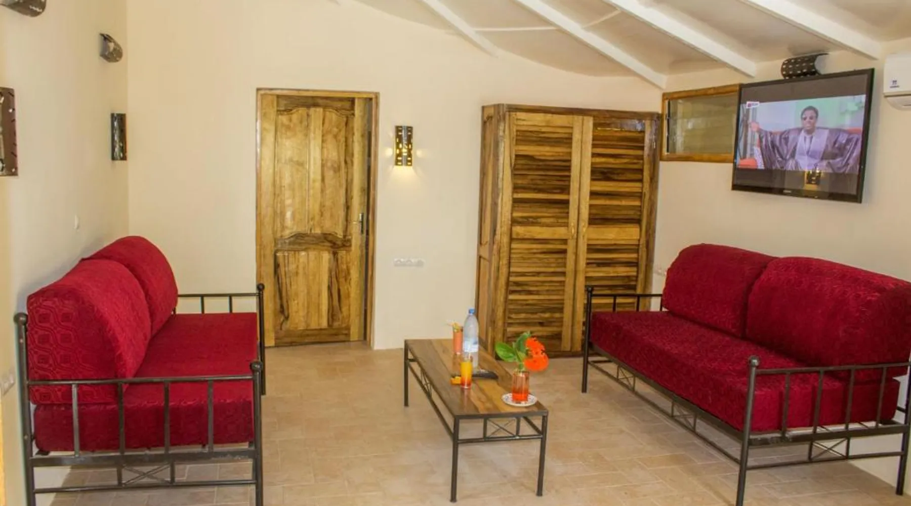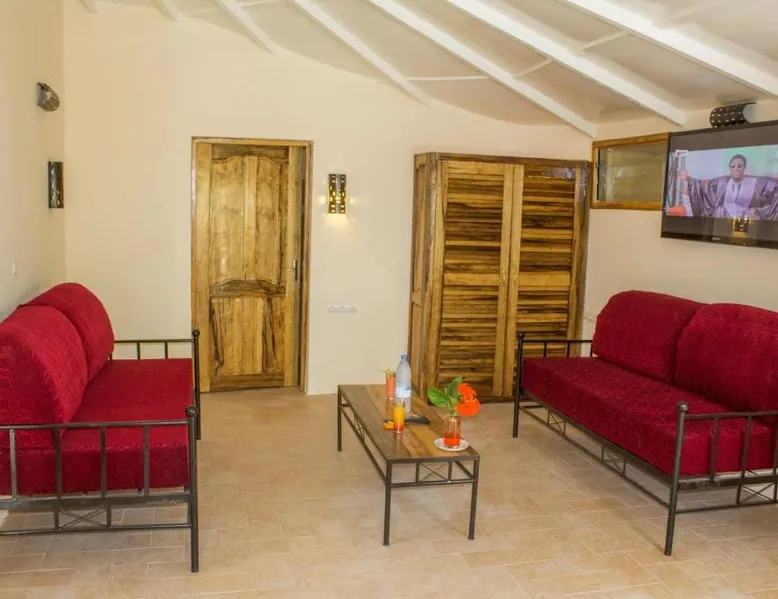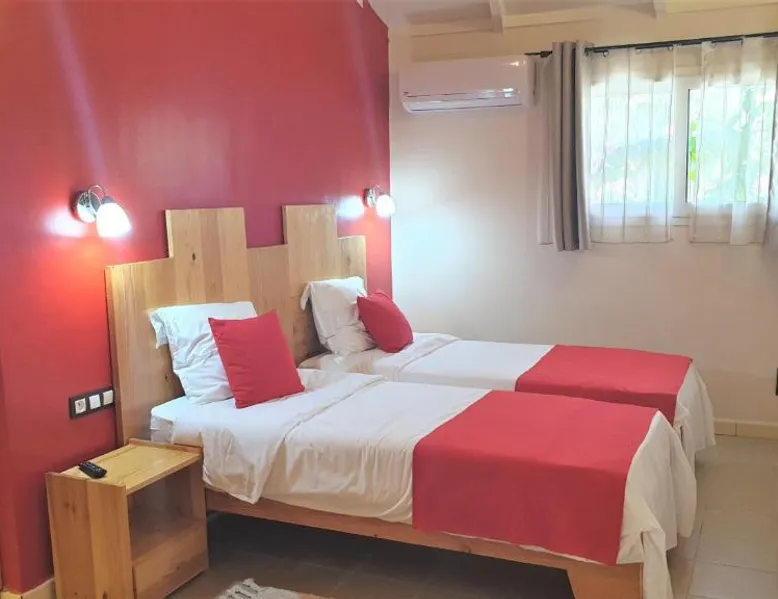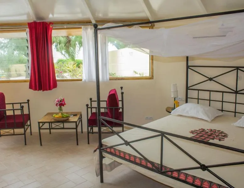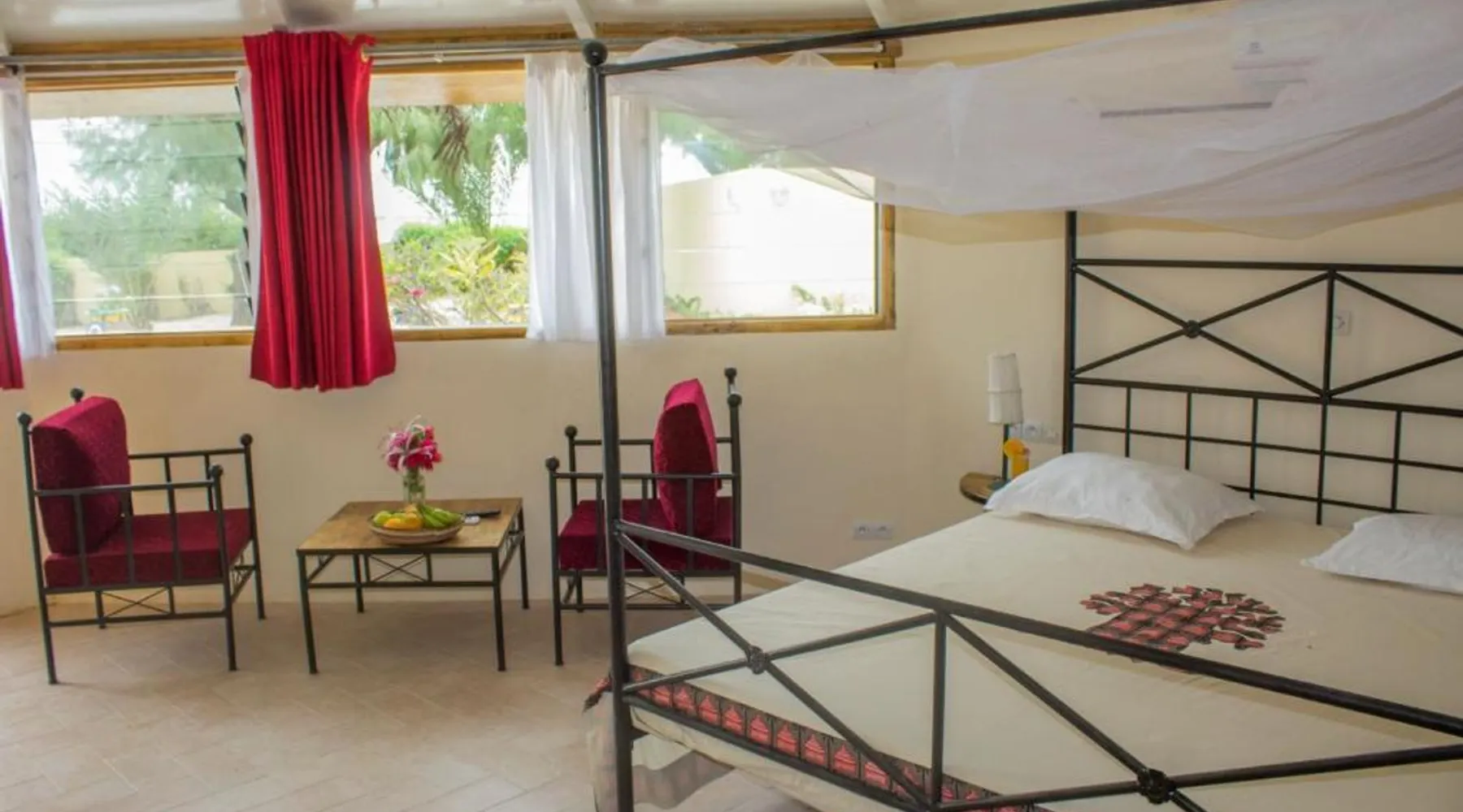 Located between Senegal River and Saint-Louis Beach, Diamarek Hotel offers an outdoor swimming pool, a 2.5-hectare garden and a tennis court. The center of Saint-Louis is a 10-minute drive away. All rooms are air-conditioned and the detached bungalows offer a private terrace, sea views and a seating area. The private bathrooms include a shower. A buffet breakfast is available each morning at Diamarek Hotel. Guests can sample local specialties in the on-site restaurant or enjoy a drink in the bar. Additional features include the organization of tour excursions and transfers, free Wi-Fi access throughout the hotel and free private parking on site. Saint-Louis International Airport is ideally located 8.7 mi away. Guests will have a special experience as the bungalow provides a pool with a view. This bungalow consists of 1 living room, 2 separate bedrooms and 2 bathrooms with a walk-in shower and free toiletries. This wheelchair accessible bungalow features air conditioning, a seating area with a flat-screen TV and a roll-in shower. The unit offers 3 beds.