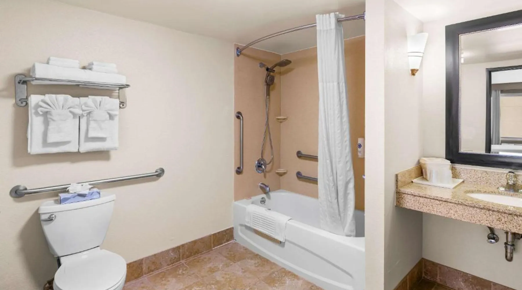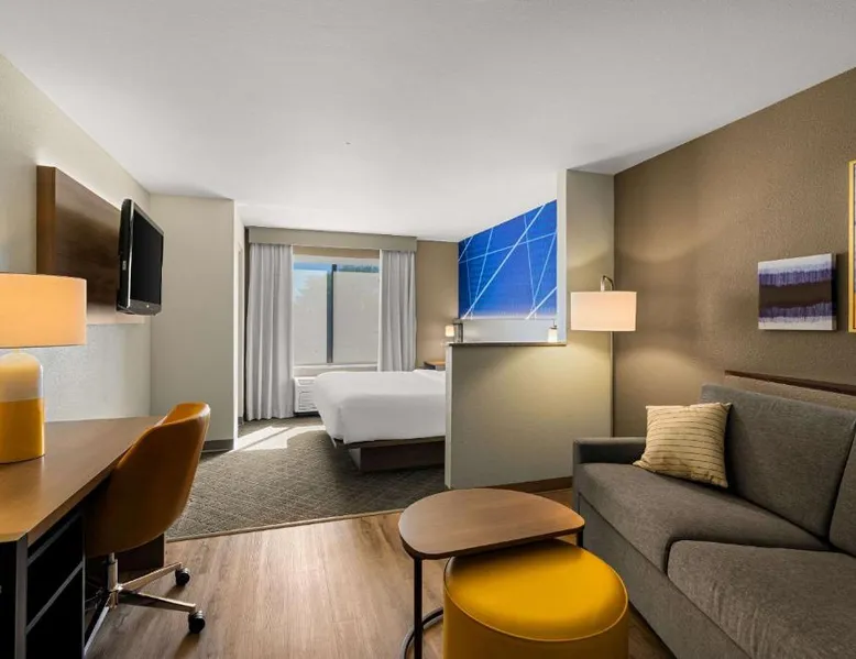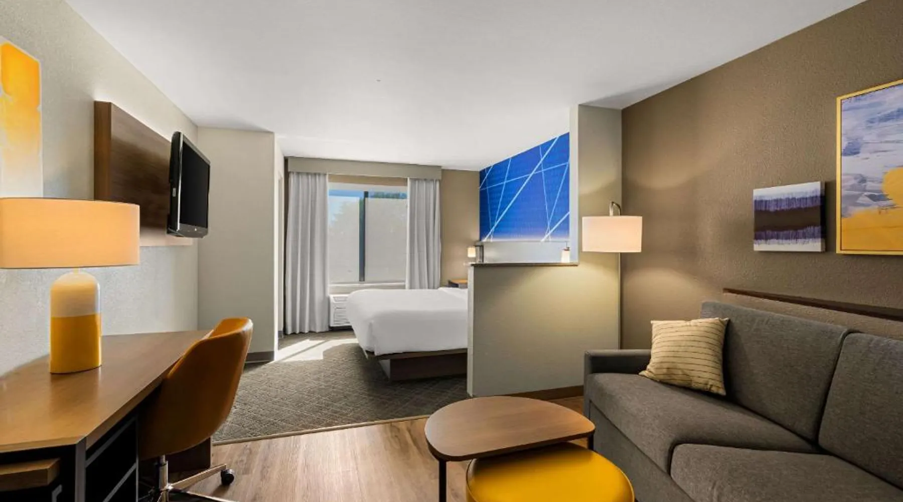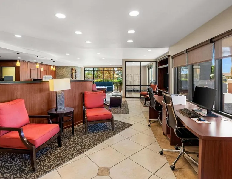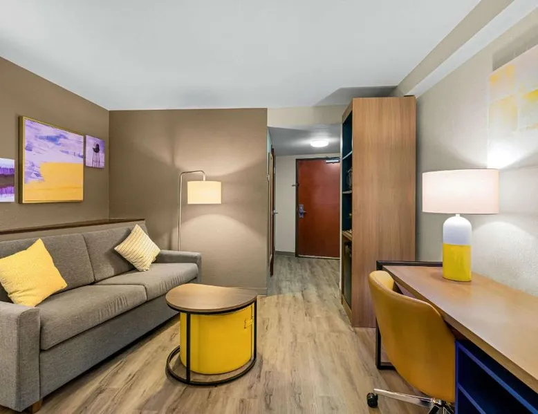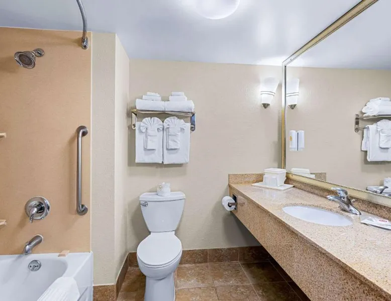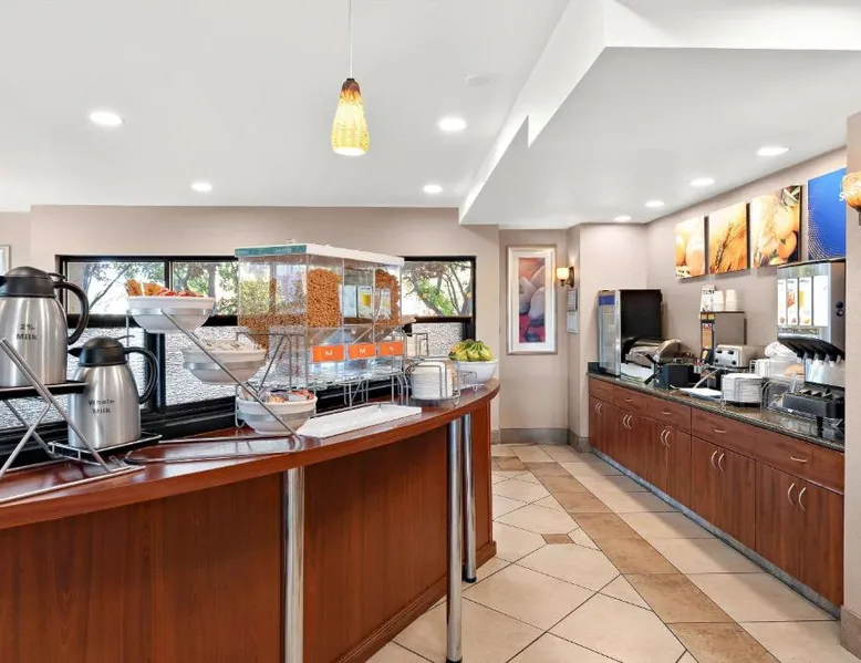 The Comfort Suites hotel is off of Interstate 80, across the street from the Vacaville Premium Outlets shopping complex. This hotel is minutes from the Creekwalk multipurpose venue, Lagoon Valley Park, the Vacaville Museum and Travis Air Force Base. The surrounding area features a variety of outdoor recreational activities like hiking, biking, swimming, boating, fishing and golf. There are several restaurants, cocktail lounges and shops nearby; some are within walking distance of the hotel. Guests at this hotel are invited to enjoy features and amenities like: Free wireless high-speed Internet access, indoor pool and hot tub and Exercise room. Your Morning Breakfast is full of hot options, making breakfast at the Comfort Suites the perfect way to start your day. Enjoy our free hot breakfast featuring eggs, meat, yogurt, fresh fruit, cereal and more, including your choice of hot waffle flavors. If you're leaving early, a Your Suite Success Grab & Go bag is available for the two hours prior to breakfast. Business travelers to this California hotel can appreciate the many conveniences afforded in our business center, including access to copy and fax services. All guest suites come equipped with microwaves, refrigerators, coffee makers, curved shower rods, hairdryers, flat-screen TVs, irons, ironing boards and cable TV. Keep your electronic devices charged with the recharge device including AC and USB outlets provided in all guest rooms. Ask about our rooms with whirlpool tubs. For added convenience, we have a sundry shop, coin-operated laundry facilities and valet cleaning services. Plenty of parking is available for cars, trucks and buses. This suite features a spa bath. The suite offers a tea and coffee maker, a seating area, heating and a TV with cable channels.