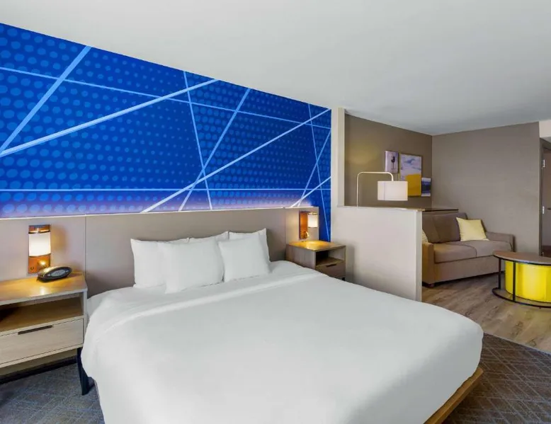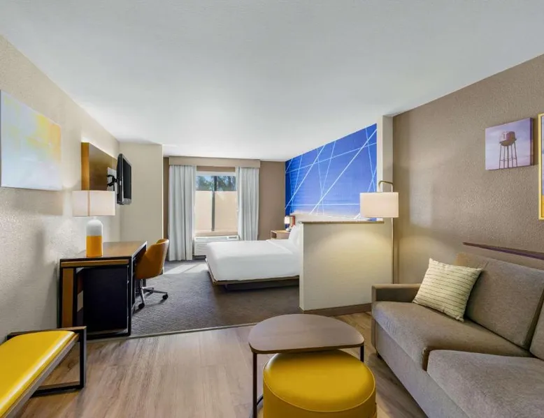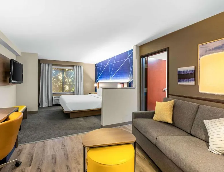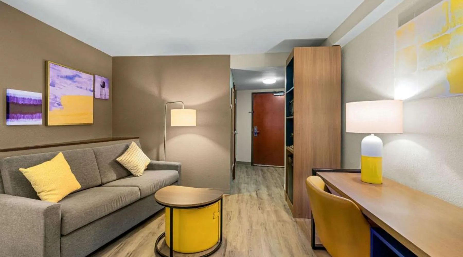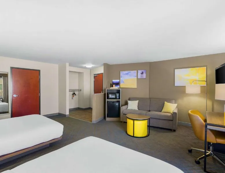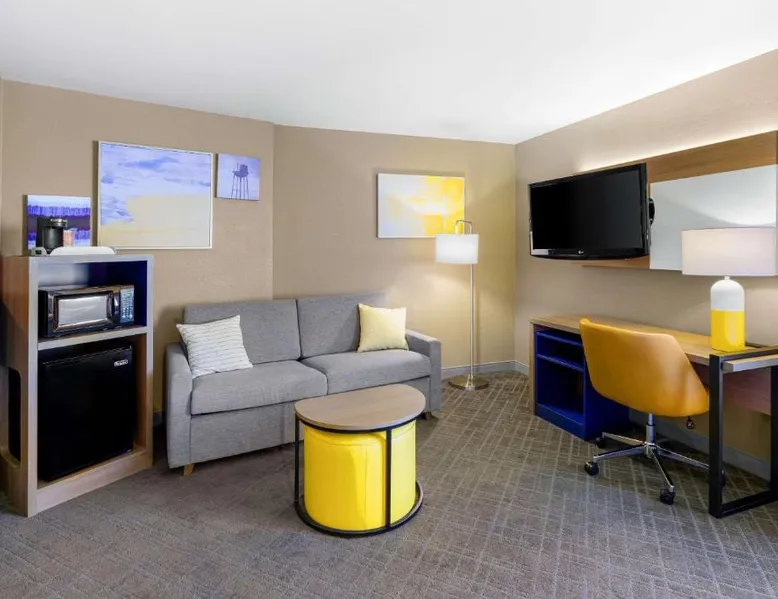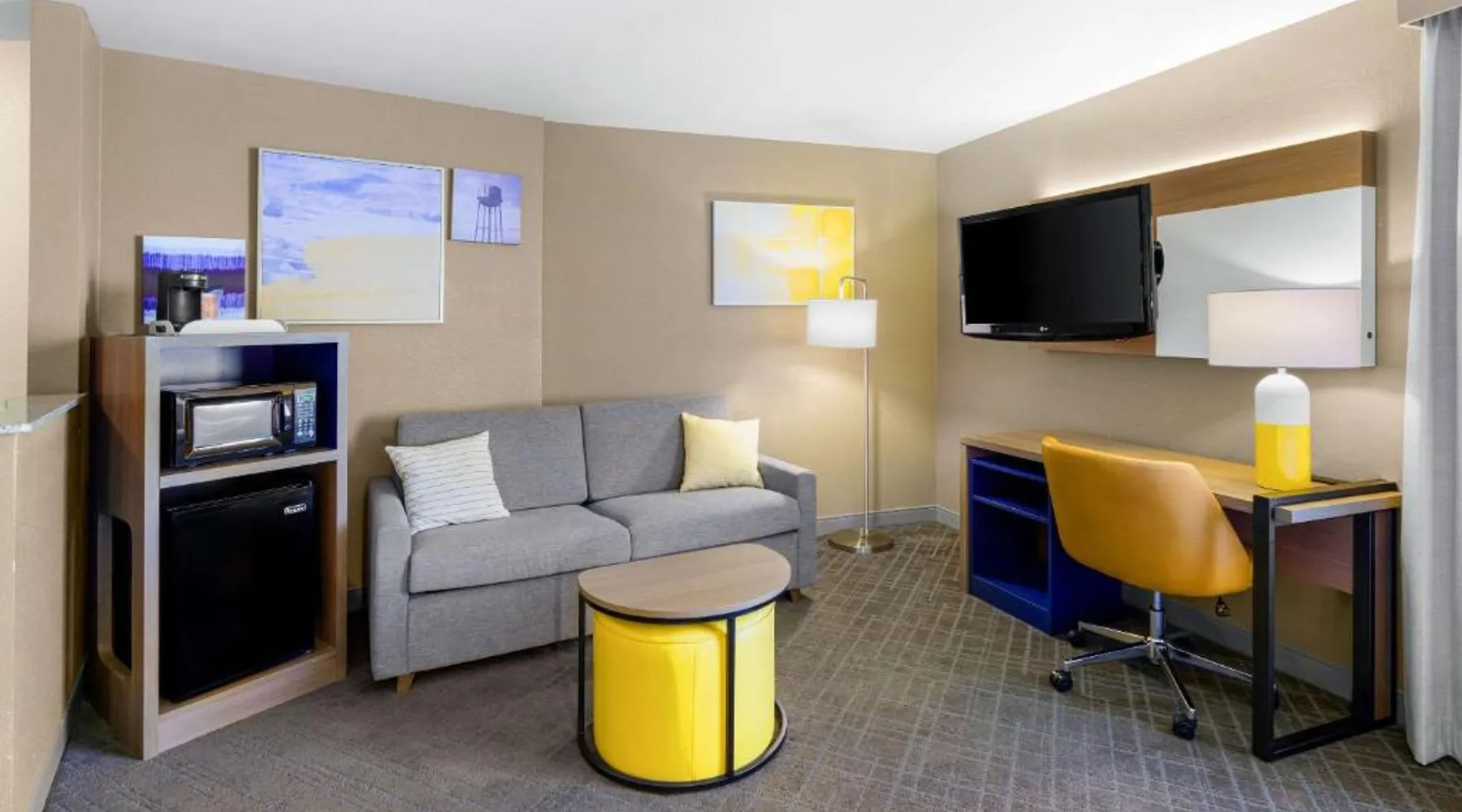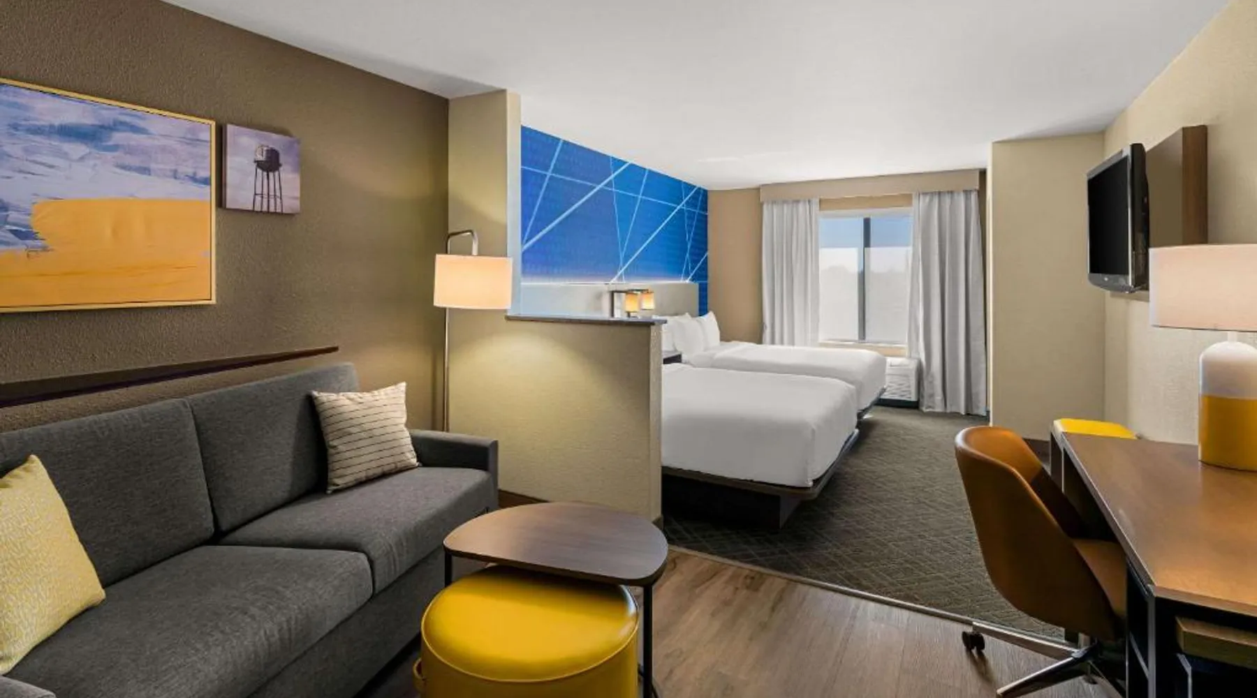 The Comfort Suites hotel is off of Interstate 80, across the street from the Vacaville Premium Outlets shopping complex. This hotel is minutes from the Creekwalk multipurpose venue, Lagoon Valley Park, the Vacaville Museum and Travis Air Force Base. The surrounding area features a variety of outdoor recreational activities like hiking, biking, swimming, boating, fishing and golf. There are several restaurants, cocktail lounges and shops nearby; some are within walking distance of the hotel. Guests at this hotel are invited to enjoy features and amenities like: Free wireless high-speed Internet access, indoor pool and hot tub and Exercise room. Your Morning Breakfast is full of hot options, making breakfast at the Comfort Suites the perfect way to start your day. Enjoy our free hot breakfast featuring eggs, meat, yogurt, fresh fruit, cereal and more, including your choice of hot waffle flavors. If you're leaving early, a Your Suite Success Grab & Go bag is available for the two hours prior to breakfast. Business travelers to this California hotel can appreciate the many conveniences afforded in our business center, including access to copy and fax services. All guest suites come equipped with microwaves, refrigerators, coffee makers, curved shower rods, hairdryers, flat-screen TVs, irons, ironing boards and cable TV. Keep your electronic devices charged with the recharge device including AC and USB outlets provided in all guest rooms. Ask about our rooms with whirlpool tubs. For added convenience, we have a sundry shop, coin-operated laundry facilities and valet cleaning services. Plenty of parking is available for cars, trucks and buses. This suite features a spa bath. The suite offers a tea and coffee maker, a seating area, heating and a TV with cable channels.
