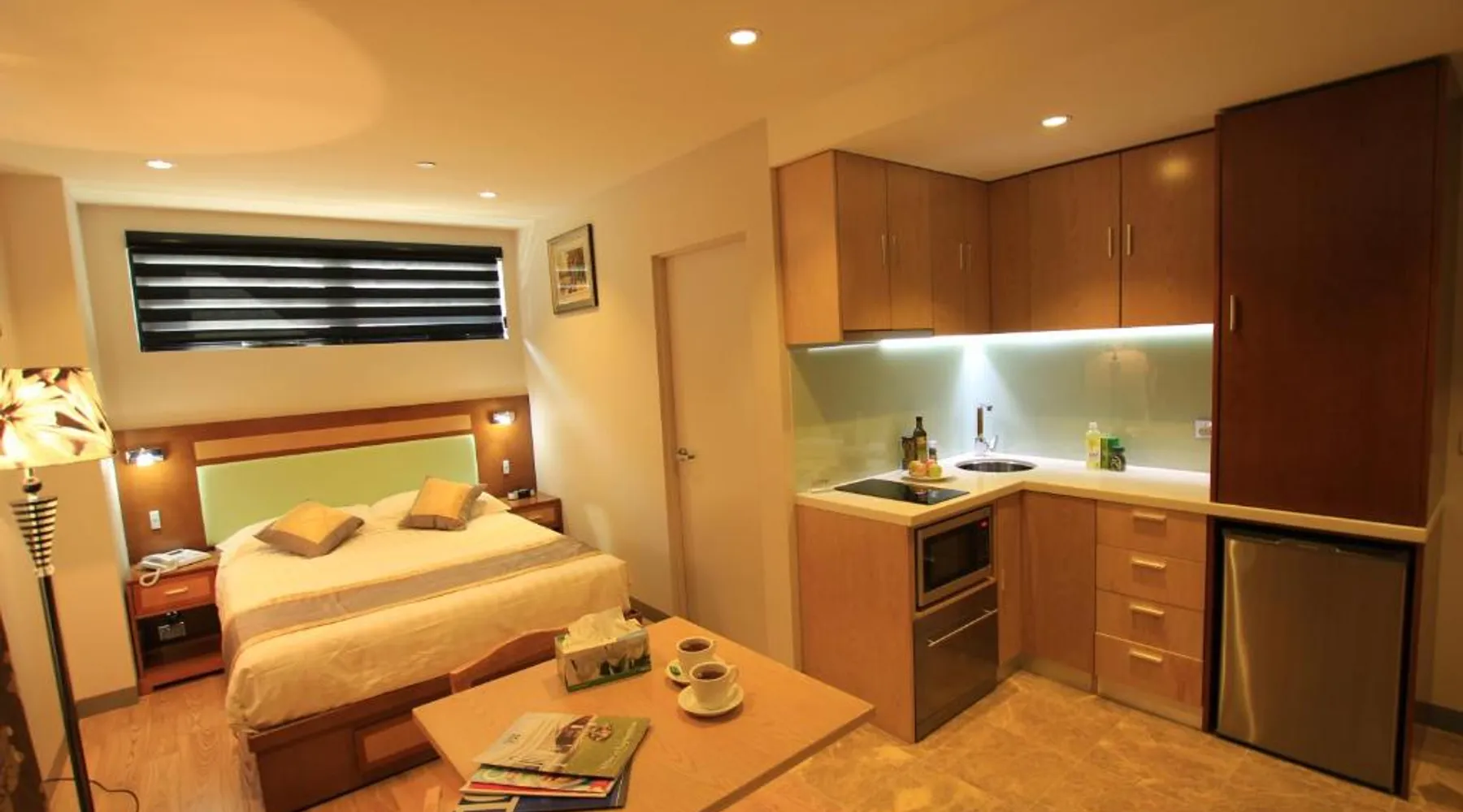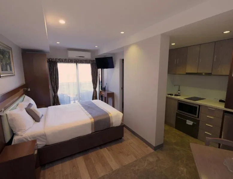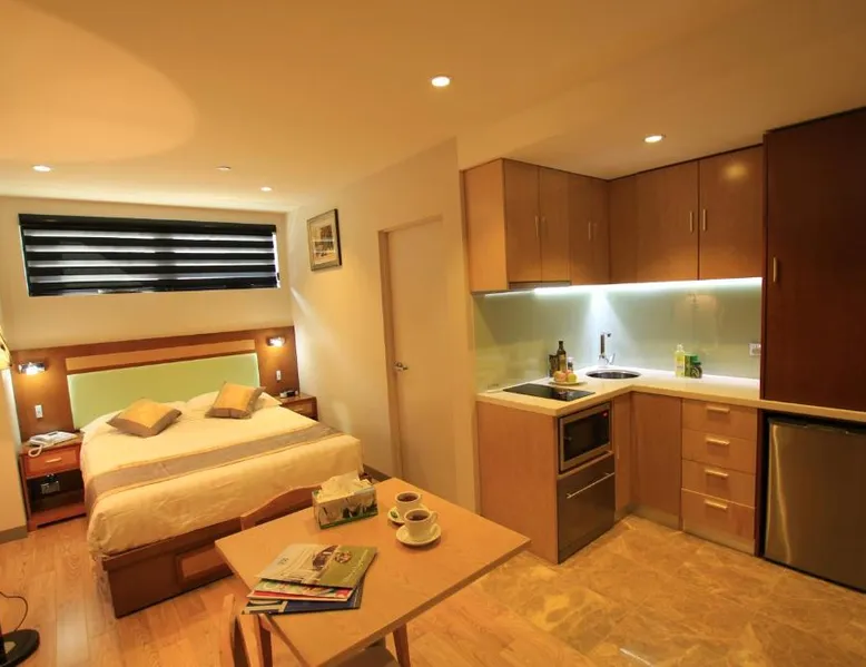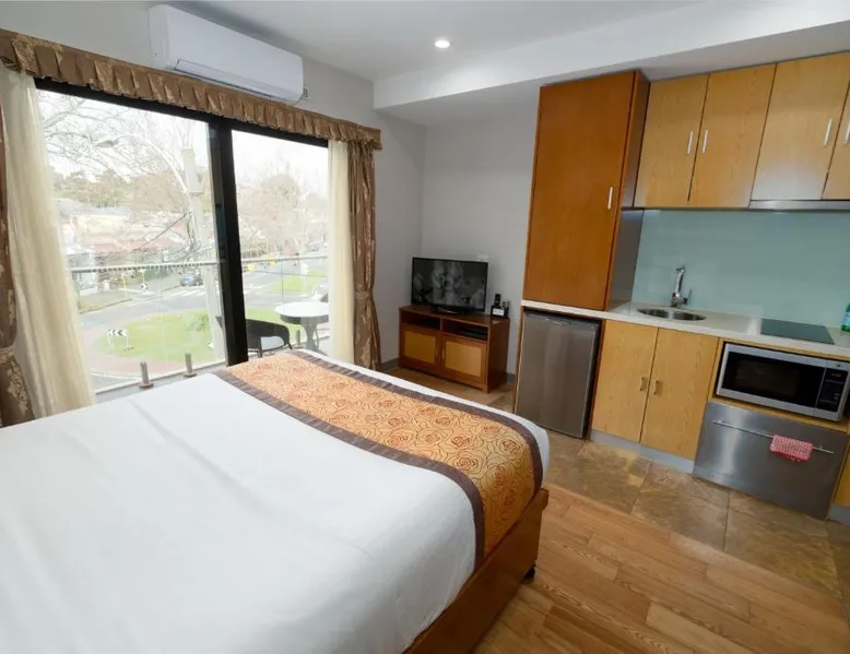 Comfortable Accommodations: Melrose Apartments in Melbourne offers a 4-star aparthotel experience with free WiFi and a terrace. Each apartment features air-conditioning, a kitchenette, balcony, and a private bathroom. Convenient Facilities: Guests benefit from a elevator, laundry service, family rooms, and luggage storage. Free off-site parking is available, and the reception staff speak English. Prime Location: Located 5 mi from Essendon Fields Airport, the aparthotel is a 17-minute walk from Melbourne Zoo. Nearby attractions include Melbourne City Conference Center (2.1 mi) and Melbourne Museum (2.7 mi). This modern studio features a balcony and a kitchenette with a stovetop, dishwasher, microwave and fridge. It offers a dining and lounge area with a TV.