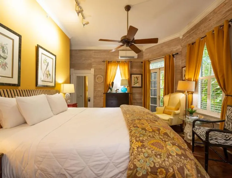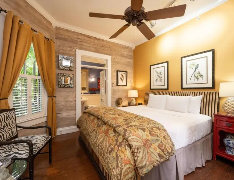 Prime Location: The Mermaid & The Alligator in Key West offers a convenient location with South Beach less than 0.6 mi away and Ernest Hemingway Home and Museum an 8-minute walk. Key West International Airport is 1.9 mi from the hotel. Exceptional Facilities: Guests enjoy a sun terrace, garden, and a year-round outdoor swimming pool. Free WiFi is available throughout the property. Additional amenities include a lounge, hot tub, and outdoor seating area. Comfortable Accommodations: Rooms feature air-conditioning, private bathrooms, balconies with garden views, and modern amenities such as flat-screen TVs and work desks. Guests appreciate the room comfort and attentive staff. Nearby Attractions: Nearby attractions include Duval Street (2297 feet), Southernmost Point (13-minute walk), and Key West Aquarium (1.2 mi). Water sports are available in the surrounding area. Featuring free toiletries and bathrobes, this double room includes a private bathroom with a shower and a hairdryer. The unit has air conditioning, garden views, a patio and wine/champagne is available for guests. The unit has 1 bed.