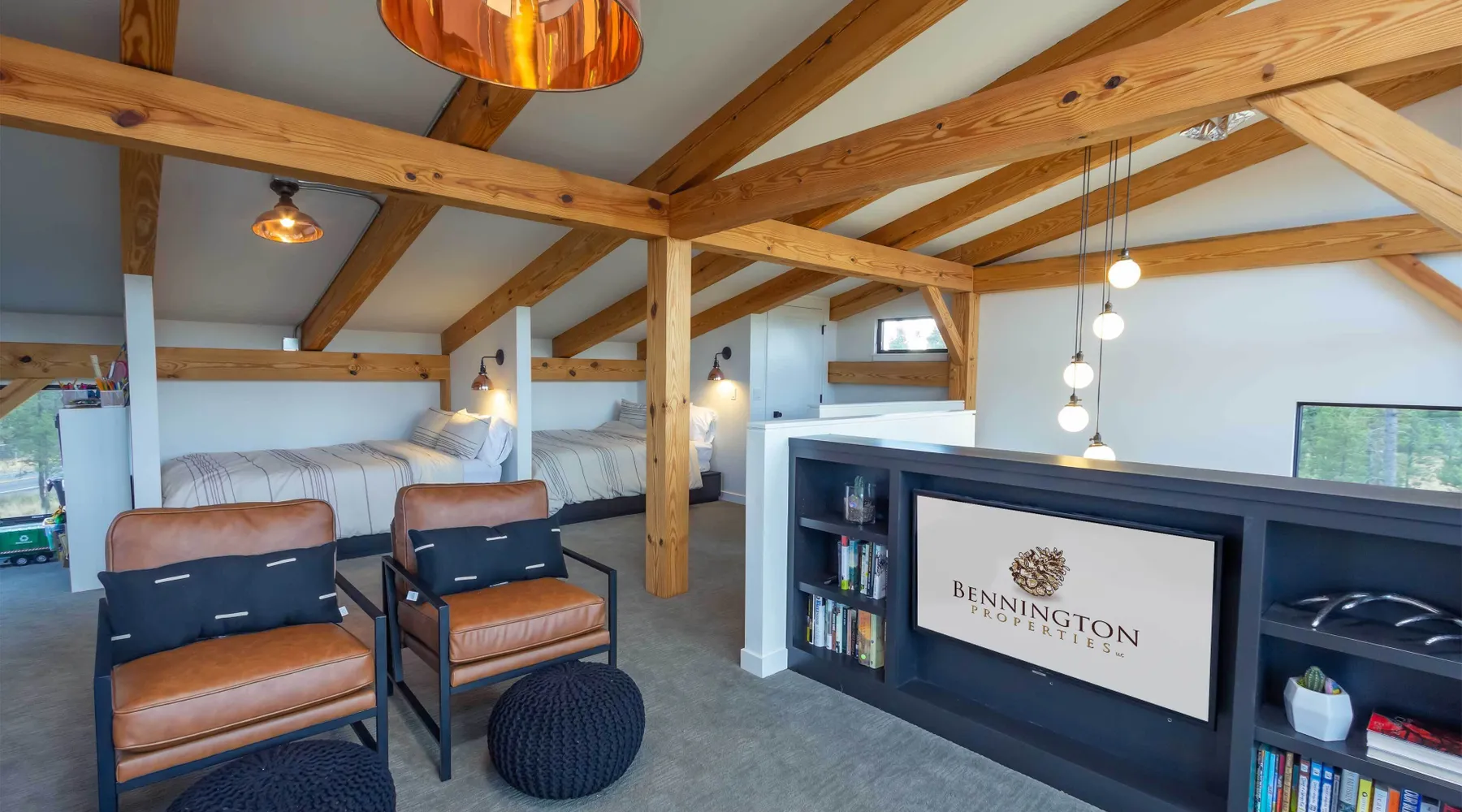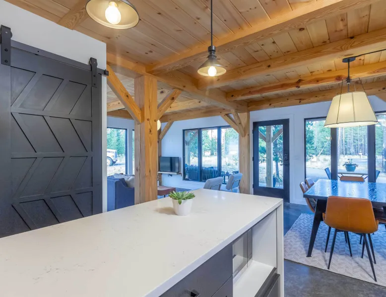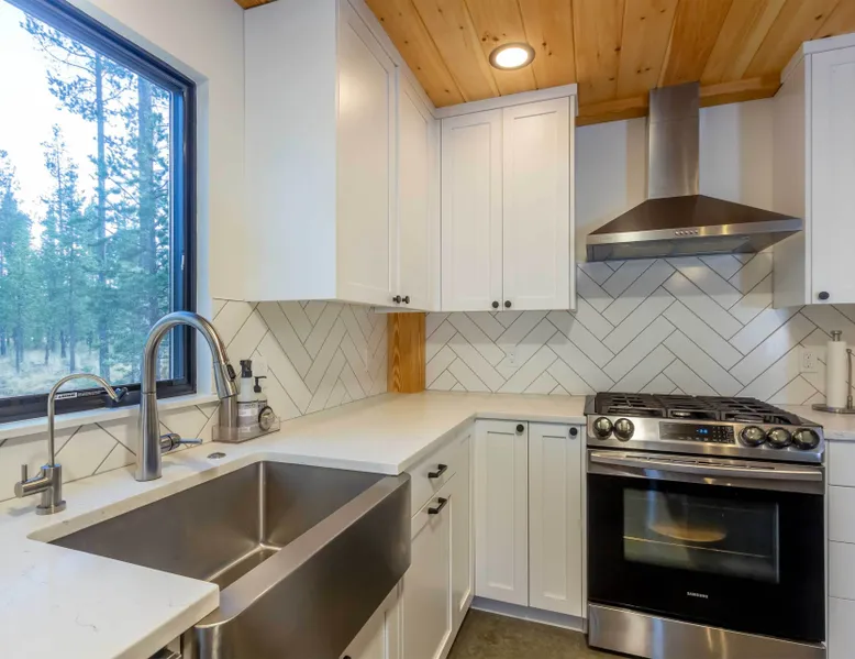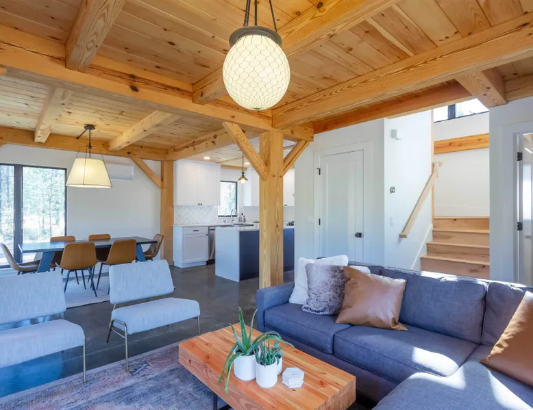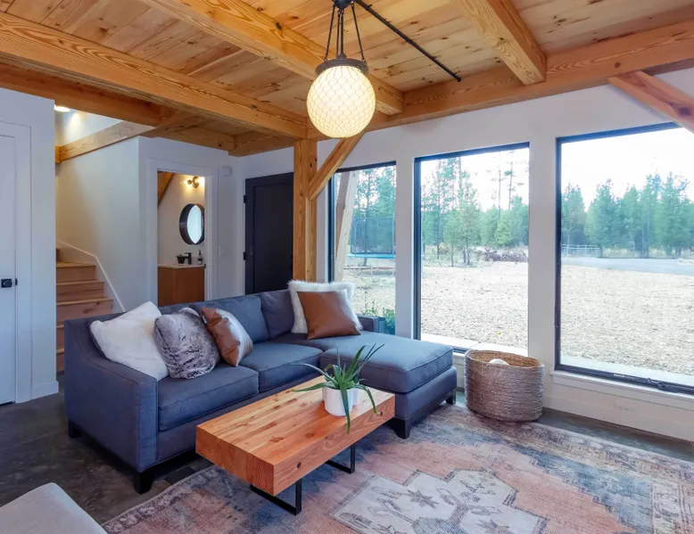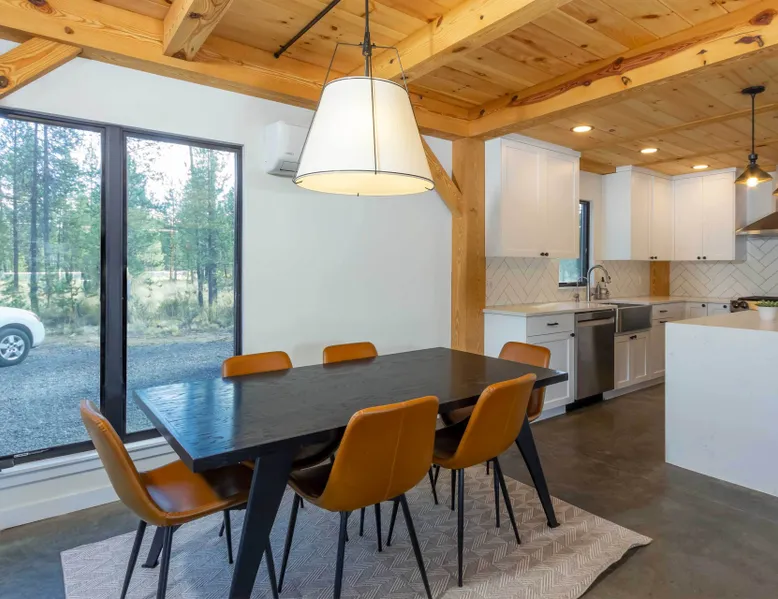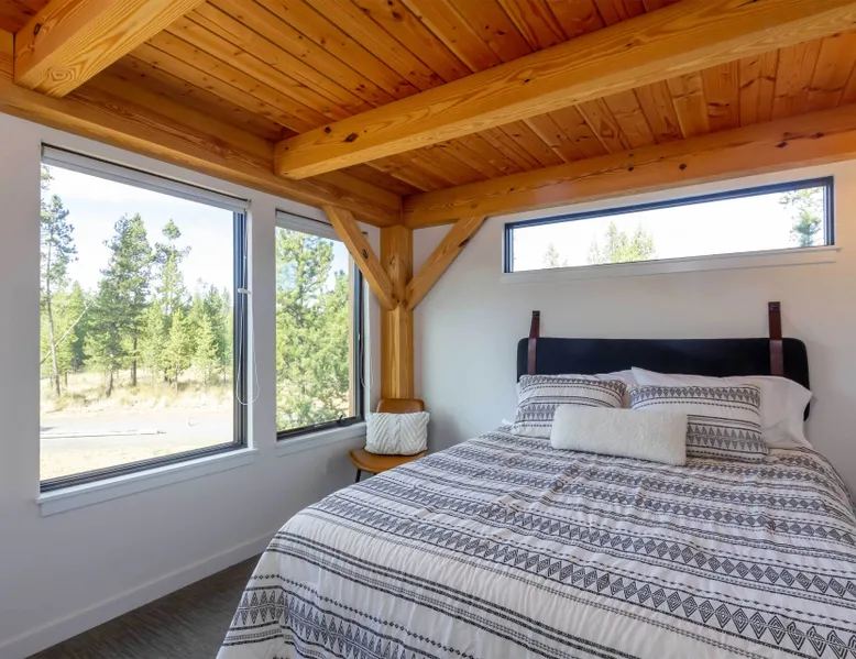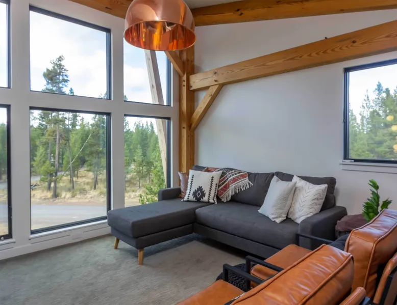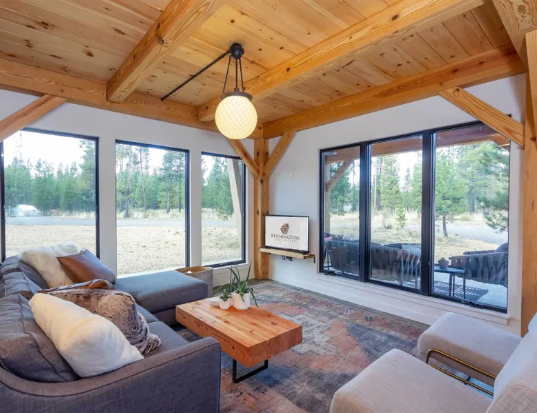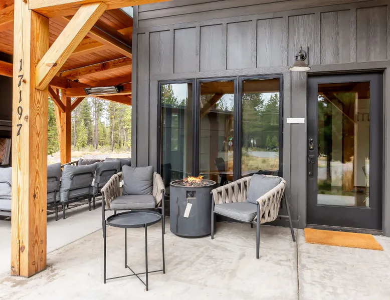 Welcome to 17197 Covina Road, winner of the COBA Tour of Homes "Best Architectural Design" award Step inside a masterpiece of contemporary architecture—an award-winning 2-bedroom home that seamlessly blends form and function. Designed to impress, this residence is a testament to innovation, featuring sleek lines, open-concept living, and an effortless connection to its natural surroundings. The spacious primary suite offers a serene retreat with a private attached bathroom. The second bedroom offers lots of natural light with ample windows sharing the amazing view that is the beauty of Sunriver. The guest bathroom features a shower/tub combo and custom vanity. Every detail has been meticulously curated, from the high-end finishes to the sustainable materials that enhance both style and efficiency. The heart of the home is the chef’s kitchen, outfitted with top-tier appliances, custom cabinetry, and a seamless flow into the expansive living area, where stunning wood planked ceilings and tons of windos, create an airy ambiance. Step outside to a patio oasis, ideal for entertaining or quiet reflection. 🏆 Winner! Best Architectural Design by the COBA Tour of Homes Relax in the brand new outdoor space with an outdoor TV, hot tub, and gas fireplace-your perfect outdoor retreat. 🏆 Winner! Best Architectural Design by the COBA Tour of Homes Each level is furnished with a mini split A/C to keep you comfortable year round. Downhill and nordic skiing, snowshoeing, and sledding, are all only about 20 minutes from your doorstep. In the summer, enjoy floating the Deschutes River, fishing, or playing a round of golf at one Central Oregon’s premier courses AGE RESTRICTIONS: Guests must be 23 years or older to rent Bennington homes and the person reserving must occupy the home the whole reservation.