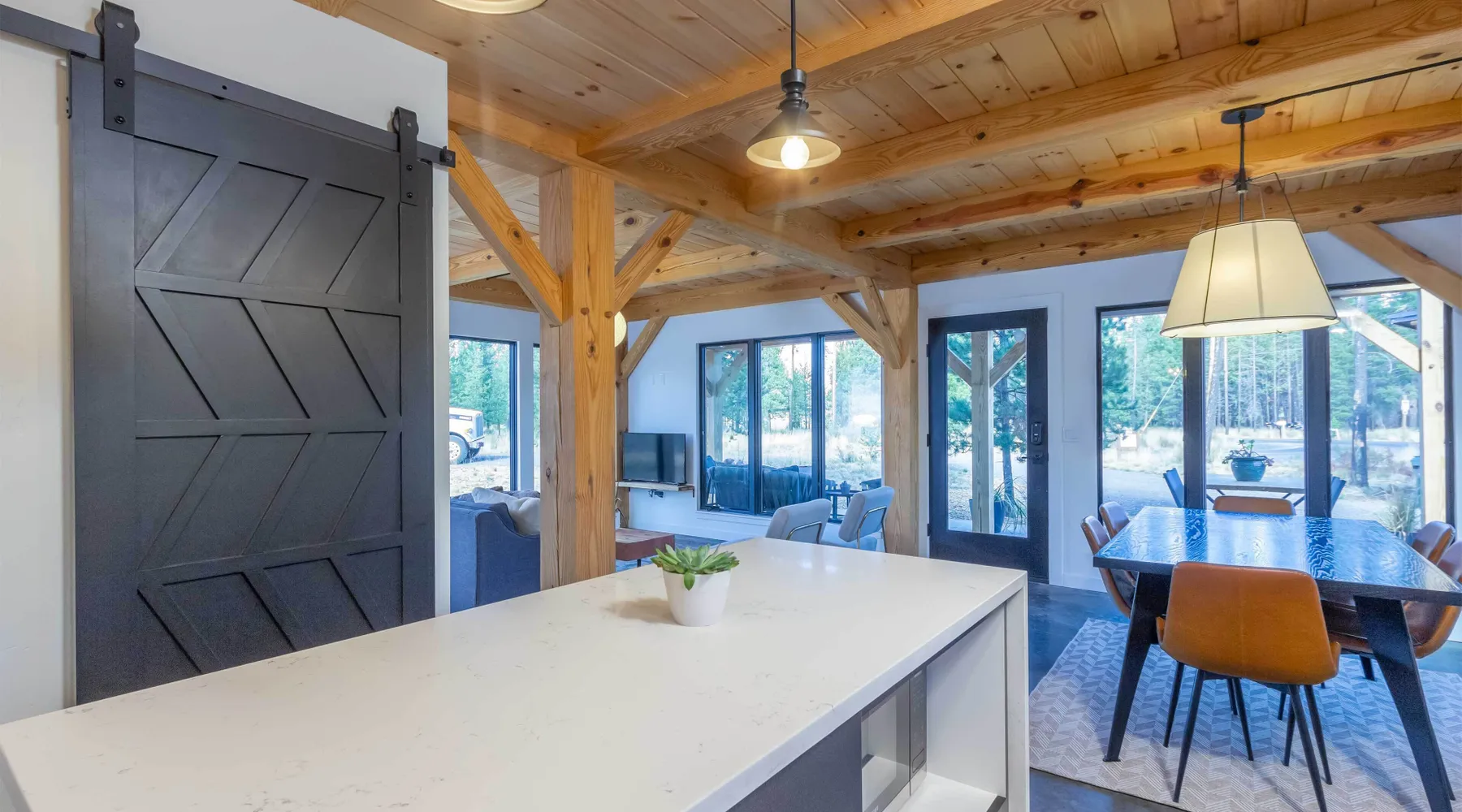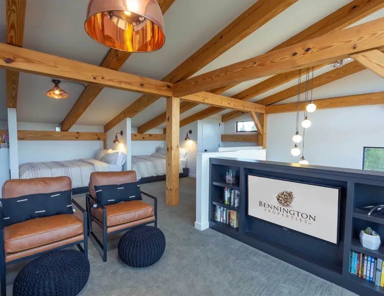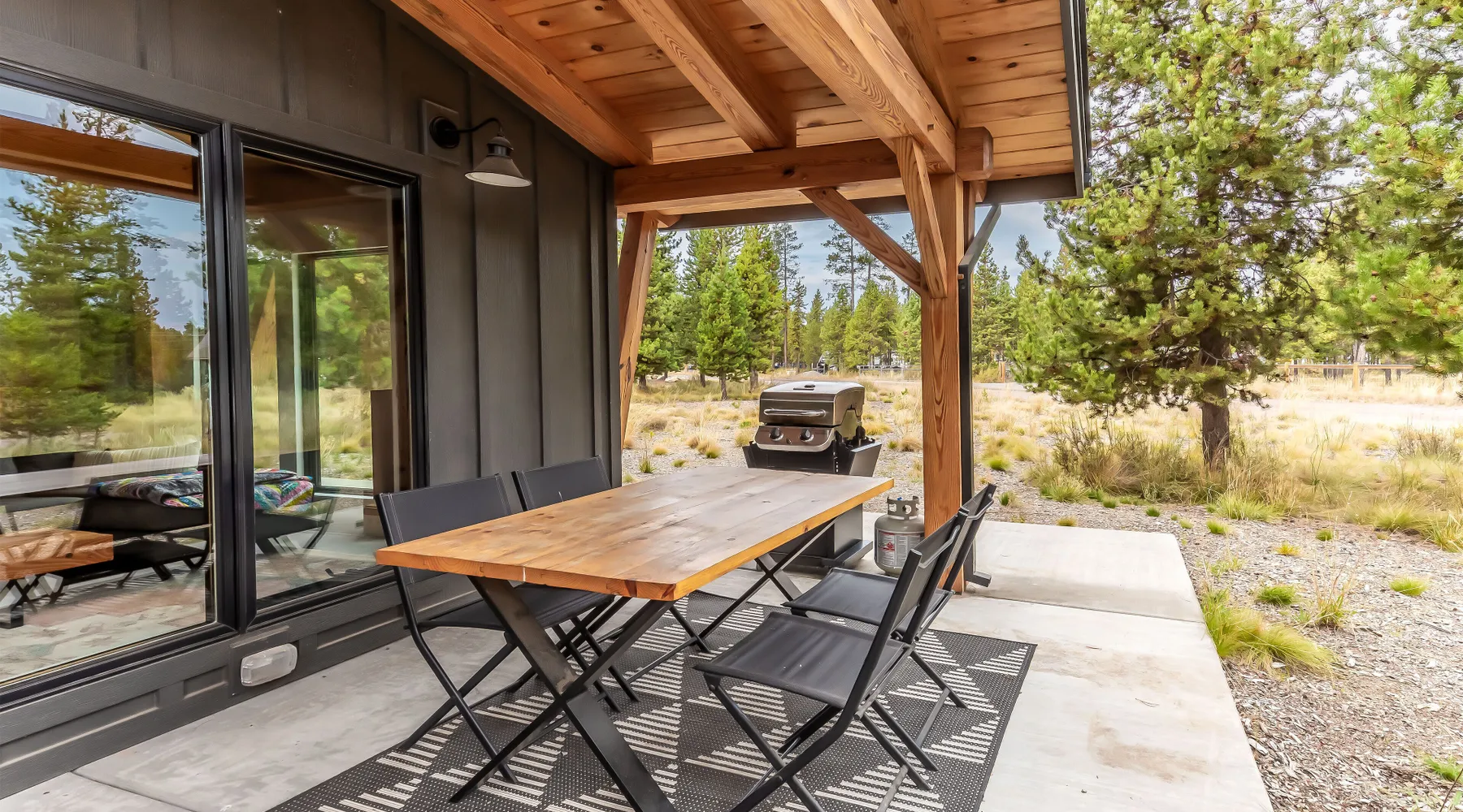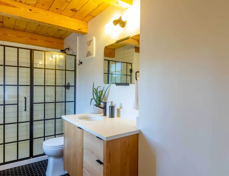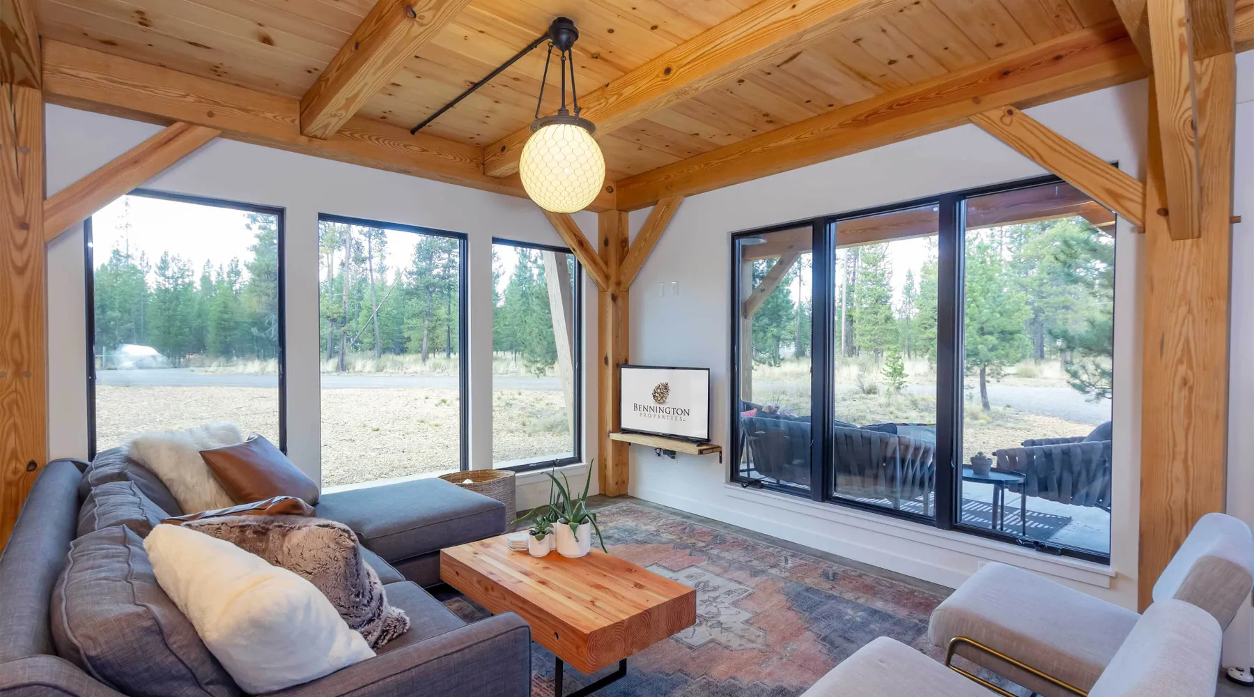 Welcome to 17197 Covina Road, winner of the COBA Tour of Homes "Best Architectural Design" award Step inside a masterpiece of contemporary architecture—an award-winning 2-bedroom home that seamlessly blends form and function. Designed to impress, this residence is a testament to innovation, featuring sleek lines, open-concept living, and an effortless connection to its natural surroundings. The spacious primary suite offers a serene retreat with a private attached bathroom. The second bedroom offers lots of natural light with ample windows sharing the amazing view that is the beauty of Sunriver. The guest bathroom features a shower/tub combo and custom vanity. Every detail has been meticulously curated, from the high-end finishes to the sustainable materials that enhance both style and efficiency. The heart of the home is the chef’s kitchen, outfitted with top-tier appliances, custom cabinetry, and a seamless flow into the expansive living area, where stunning wood planked ceilings and tons of windos, create an airy ambiance. Step outside to a patio oasis, ideal for entertaining or quiet reflection. 🏆 Winner! Best Architectural Design by the COBA Tour of Homes Relax in the brand new outdoor space with an outdoor TV, hot tub, and gas fireplace-your perfect outdoor retreat. 🏆 Winner! Best Architectural Design by the COBA Tour of Homes Each level is furnished with a mini split A/C to keep you comfortable year round. Downhill and nordic skiing, snowshoeing, and sledding, are all only about 20 minutes from your doorstep. In the summer, enjoy floating the Deschutes River, fishing, or playing a round of golf at one Central Oregon’s premier courses AGE RESTRICTIONS: Guests must be 23 years or older to rent Bennington homes and the person reserving must occupy the home the whole reservation.