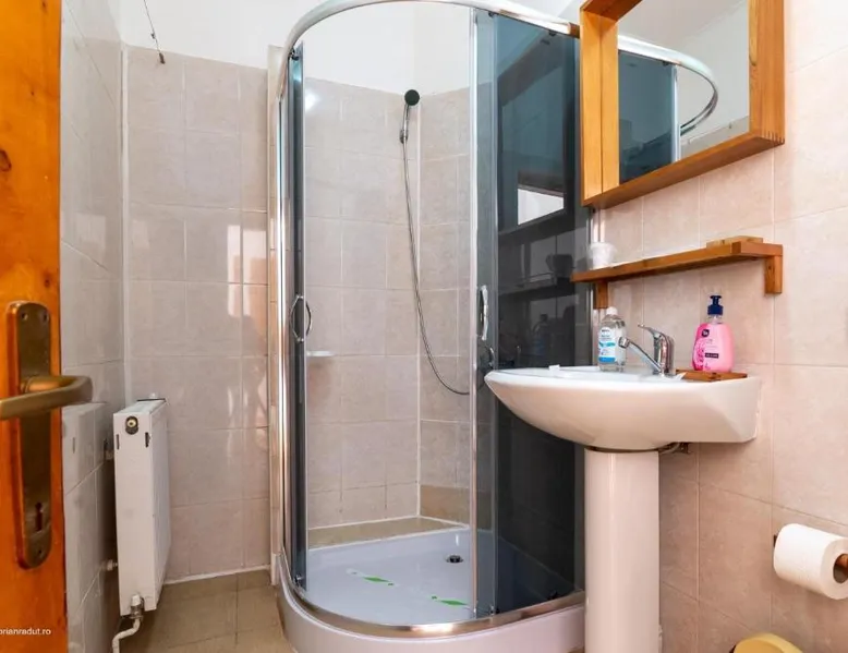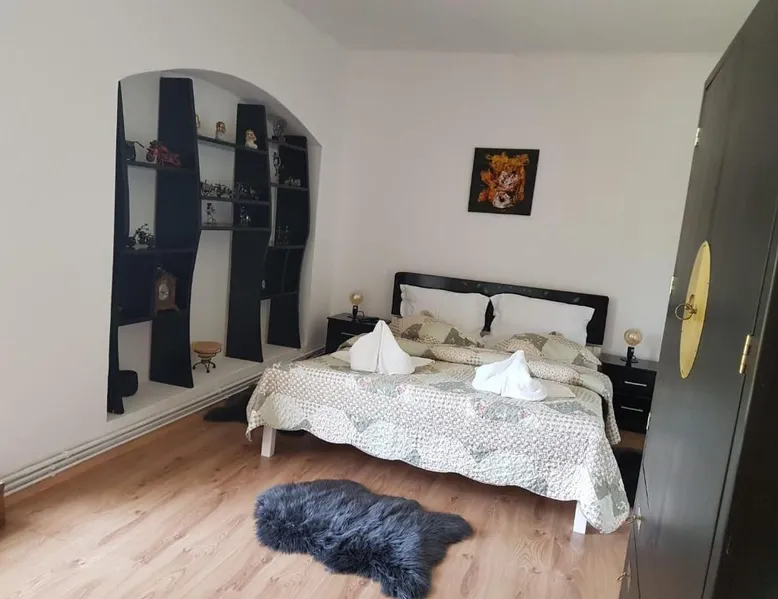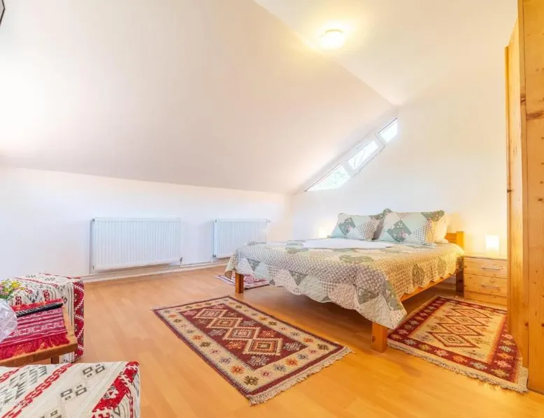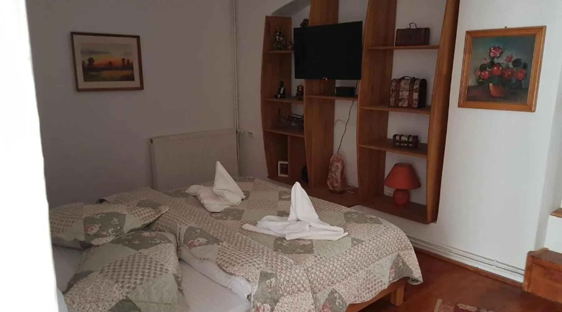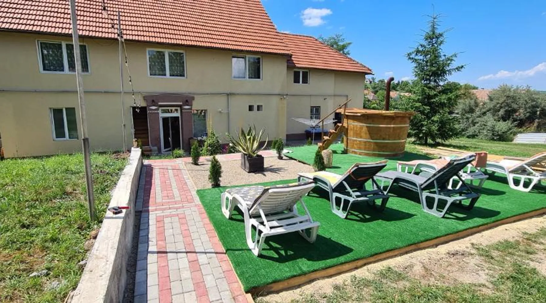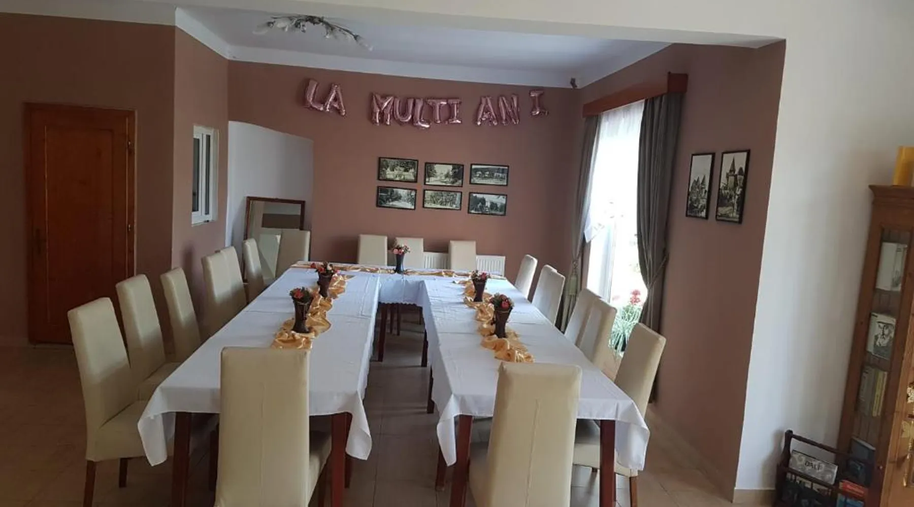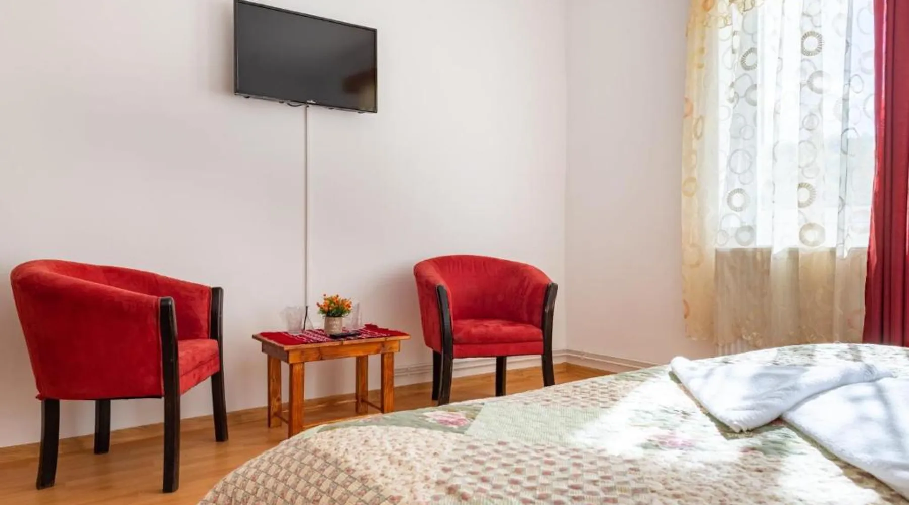 Comfortable Accommodations: Pensiunea Baron Bazna in Bazna offers family rooms with private bathrooms, kitchen facilities, and free WiFi. Each room includes a terrace or balcony with garden or lake views. Leisure and Amenities: Guests can relax on the sun terrace or in the garden. The property features a lounge, indoor and outdoor play areas, and barbecue facilities. Free on-site private parking is available. Convenient Location: Located 33 mi from Târgu Mureş Airport, the guest house is near attractions such as Valea Viilor Fortified Church (18 mi) and Biertan Fortified Church (25 mi). Hiking opportunities are nearby. Guests will find a stovetop, a refrigerator, kitchenware and an oven in the kitchen. The family room also provides guests with a barbecue. The family room provides a washing machine, a private entrance, a terrace with lake views as well as a private bathroom featuring a shower. The unit offers 2 beds.
