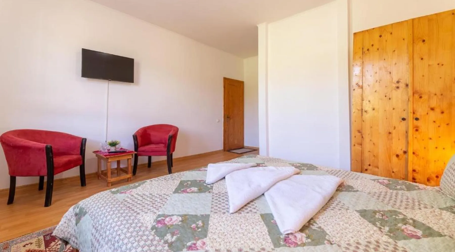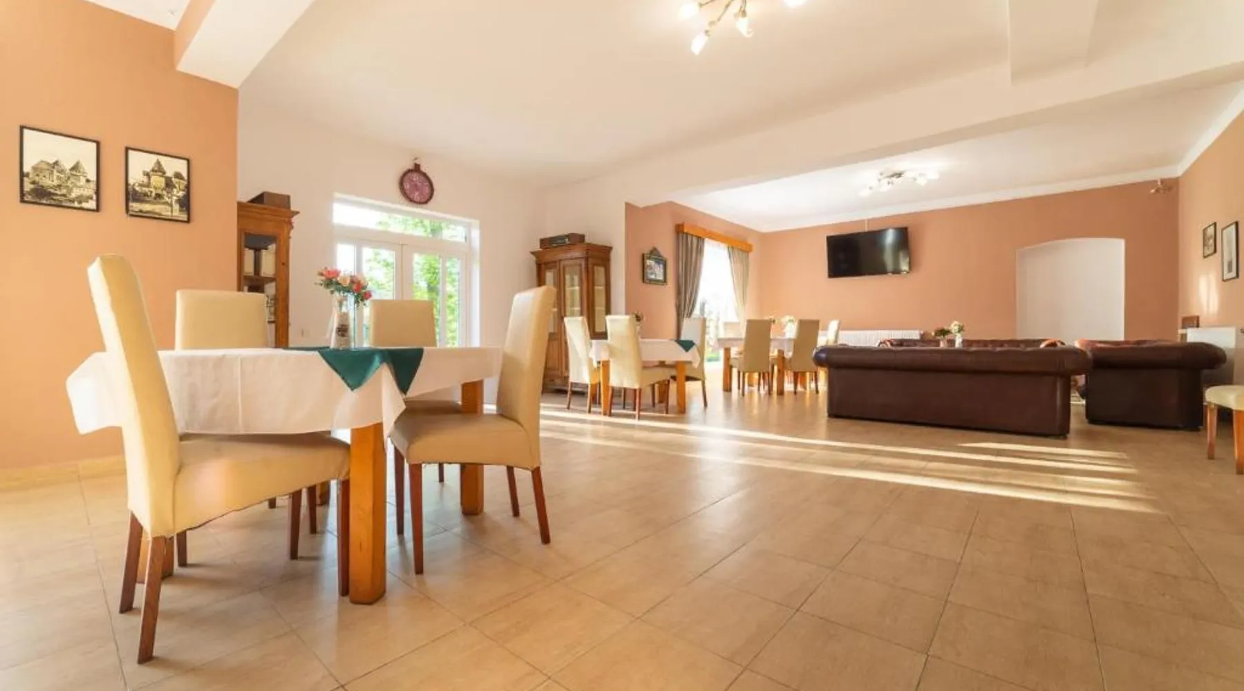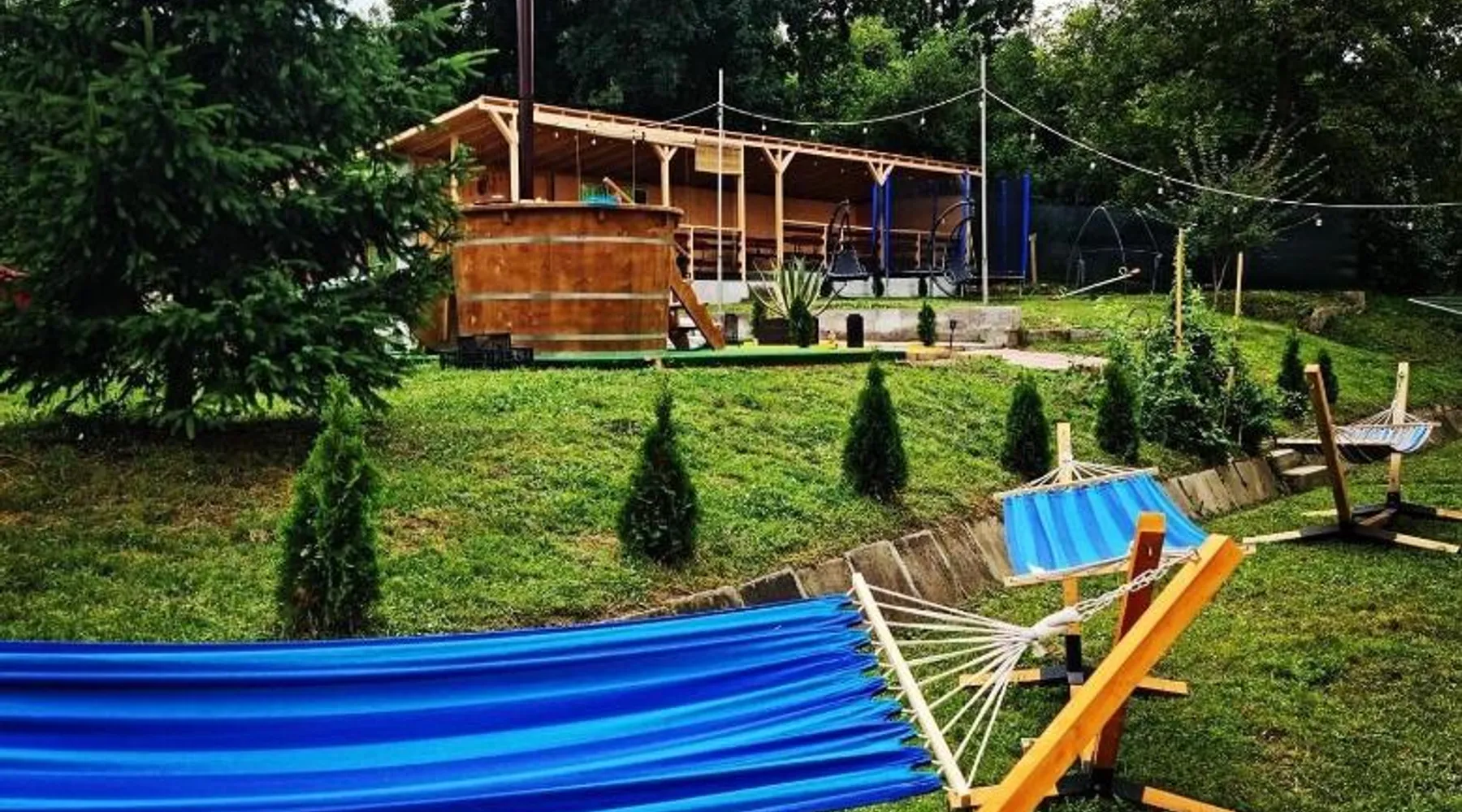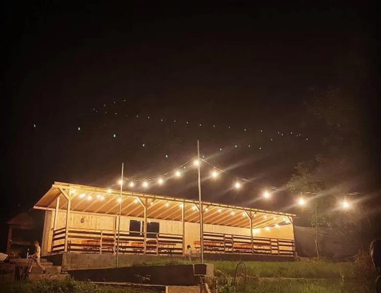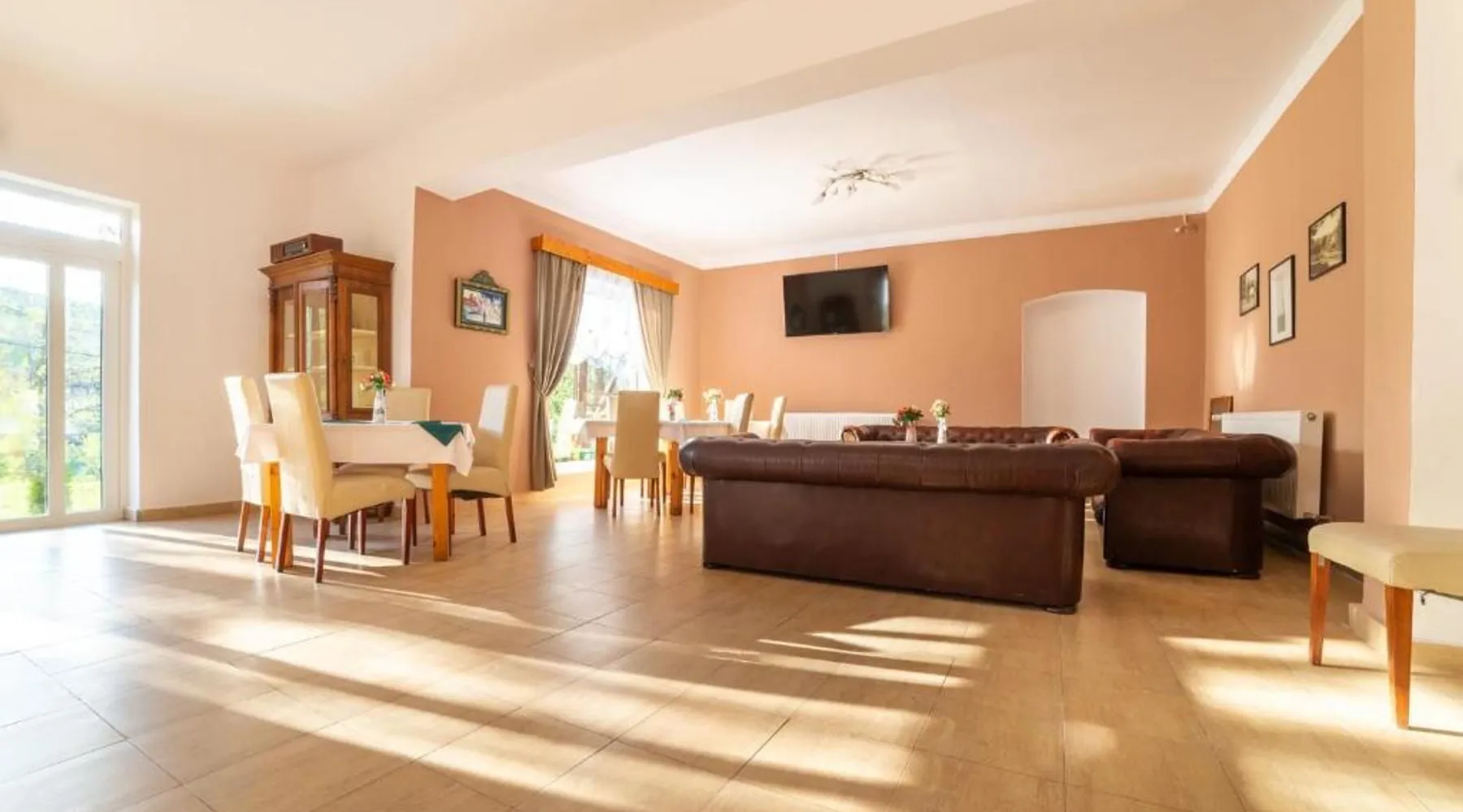 Comfortable Accommodations: Pensiunea Baron Bazna in Bazna offers family rooms with private bathrooms, kitchen facilities, and free WiFi. Each room includes a terrace or balcony with garden or lake views. Leisure and Amenities: Guests can relax on the sun terrace or in the garden. The property features a lounge, indoor and outdoor play areas, and barbecue facilities. Free on-site private parking is available. Convenient Location: Located 33 mi from Târgu Mureş Airport, the guest house is near attractions such as Valea Viilor Fortified Church (18 mi) and Biertan Fortified Church (25 mi). Hiking opportunities are nearby. Guests will find a stovetop, a refrigerator, kitchenware and an oven in the kitchen. The family room also provides guests with a barbecue. The family room provides a washing machine, a private entrance, a terrace with lake views as well as a private bathroom featuring a shower. The unit offers 2 beds.