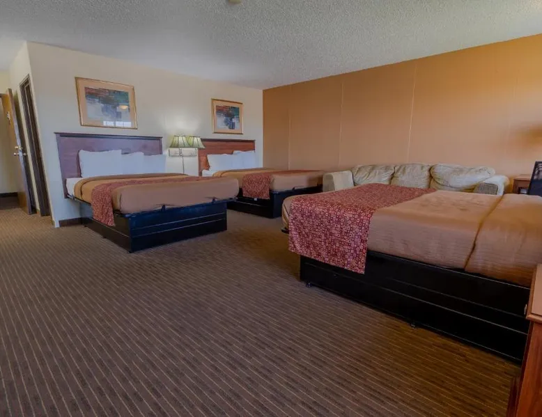 Featuring a sauna and hot tub, this Mitchell, South Dakota hotel is 1.2 mi from the world’s only Corn Palace. Free Wi-Fi access is available. Cable TV and a seating area are provided in every room at Thunderbird Loge. Complete with a microwave, the dining area also includes a refrigerator and a coffee machine. Launderette facilities are offered at Lodge Thunderbird, along with a 24-hour front desk. Other facilities offered include meeting facilities. The property offers free parking. A daily continental breakfast with donuts, cereal, coffee, and more is served at this property. A prehistoric Indian Village is 2.5 mi away. The Dakota Discovery Museum can be reached in 4 minutes’ drive. Cable TV is included in this room, along with a microwave and fridge.