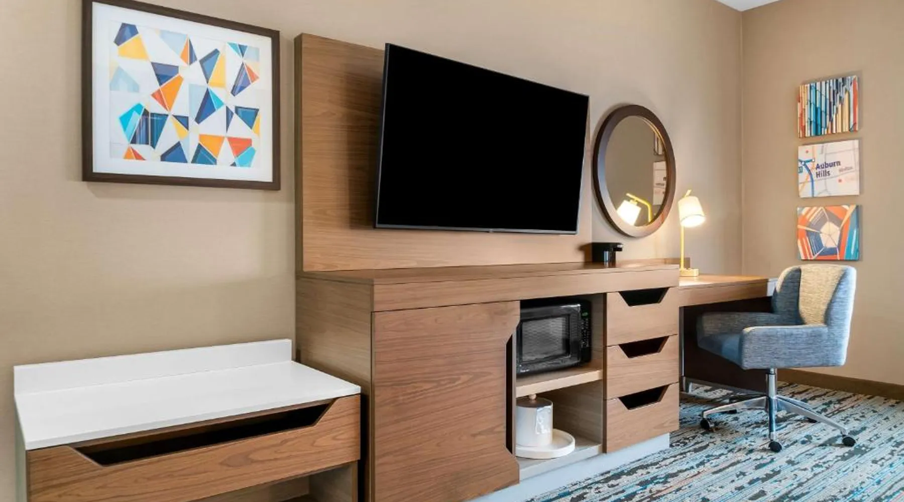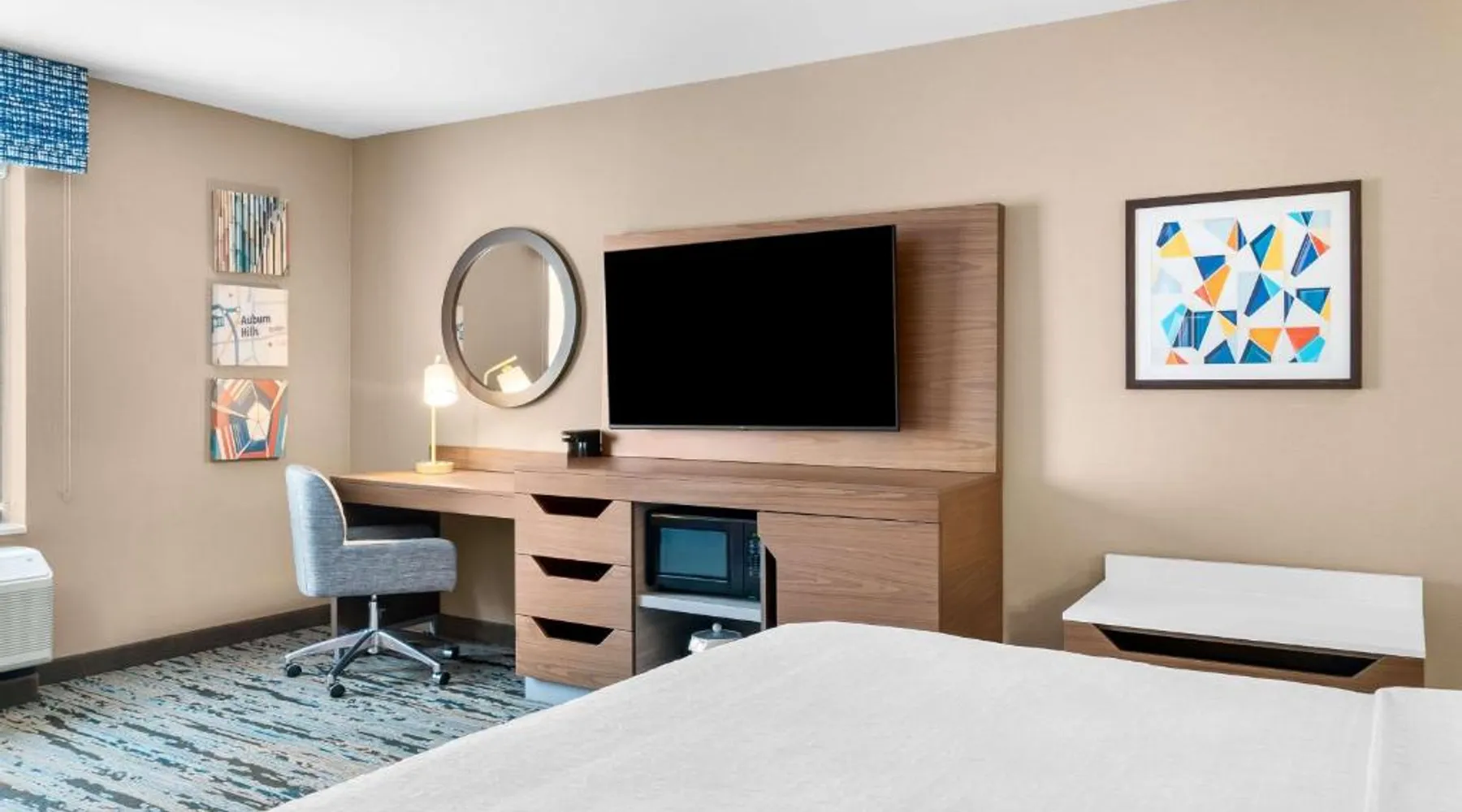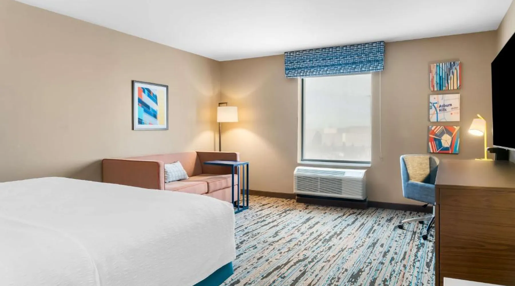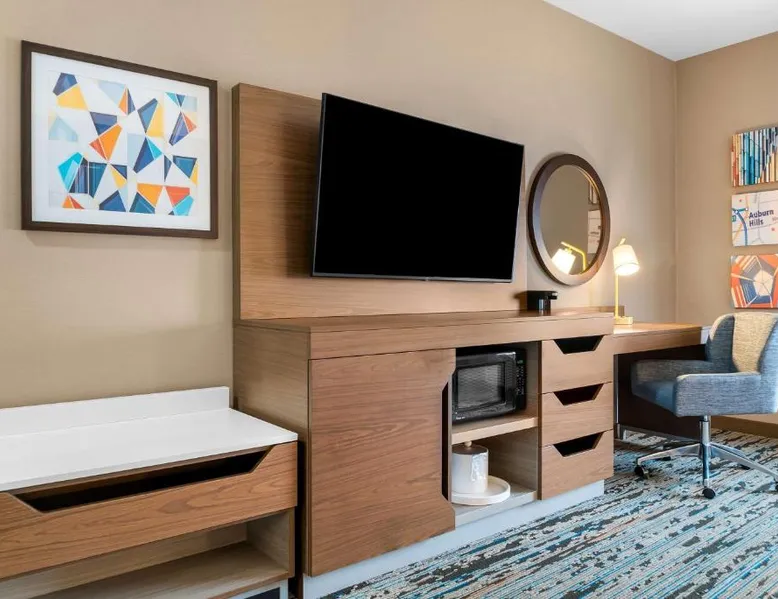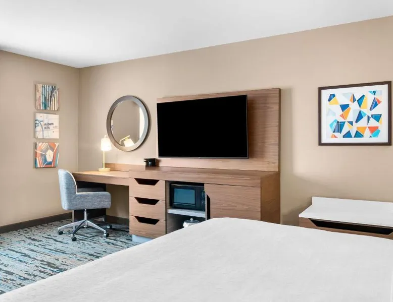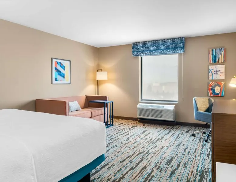 This hotel offers free local transportation services, an indoor pool and fitness center. 5 miles from Waterford Oaks Waterpark, its rooms offer a 42-inch flat-screen cable TV with in-room movies. A microwave, fridge and coffee-making facilities are provided in the contemporary rooms at Hampton Inn Detroit/Auburn Hills-North. There is free Wi-Fi along with a desk. Rooms with a sofa bed are available. Guests can enjoy a daily breakfast buffet during their stay. Hampton Inn Auburn Hills also offers free copies of USA Today and a business center. Off Interstate 75, this hotel is a 10 minute walk from Great Lakes Crossing Outlets Mall. The Palace of Auburn Hills, home of the Detroit Pistons basketball team, is 4 miles away. This quadruple room provides a tea and coffee maker and a flat-screen TV. The unit offers 2 beds.